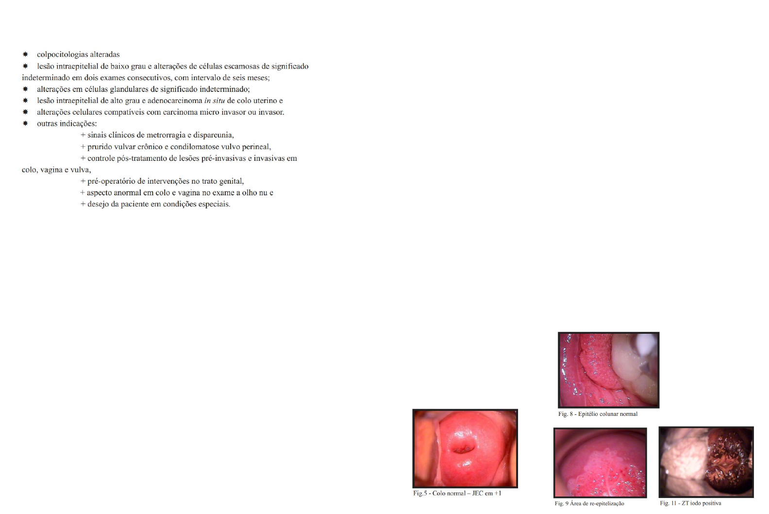 COLPOSCOPIA - INDICAÇÕES COLPOSCOPIA Recomendações ● Sem relações sexuais por pelo menos 2 dias ● Evitar medicamentos na região, cremes e absorventes internos ● Evitar duchas vaginais ● Recomendado não estar menstruada ● Não esteja fazendo uso de antibiótico COLPOSCOPIA - TÉCNICA 1. Coloca-se o espéculo 2. Limpeza do excesso de secreção com gaze e soro 3. Aplica solução de ácido acético de 3 a 5% observando os fundos de saco e paredes vaginais e o colo - a duração e intensidade do branqueamento aumentam com a gravidade/grau de atipia 4. Solução de schiller no colo e vagina e identificar possíveis áreas iodo negativas (amareladas) 5. Avaliação da vulva, períneo e ânus ACHADOS NORMAIS ➔ Epitélio escamoso original ➔ Epitélio colunar ➔ Zona de transformação ACHADOS ANORMAIS ➔ Epitélio acetobranco plano ➔ Epitélio acetobranco denso ➔ Mosaico fino ACHADOS ANORMAIS ➔ Mosaico grosseiro ➔ Pontilhado fino ➔ Pontilhado grosseiro ACHADOS ANORMAIS ACHADOS ANORMAIS ACHADOS ANORMAIS ALTERAÇÕES SUGESTIVAS DE CÂNCER COLPOSCOPIA INSATISFATÓRIA MISCELÂNEA VULVOSCOPIA - INDICAÇÕES VULVOSCOPIA