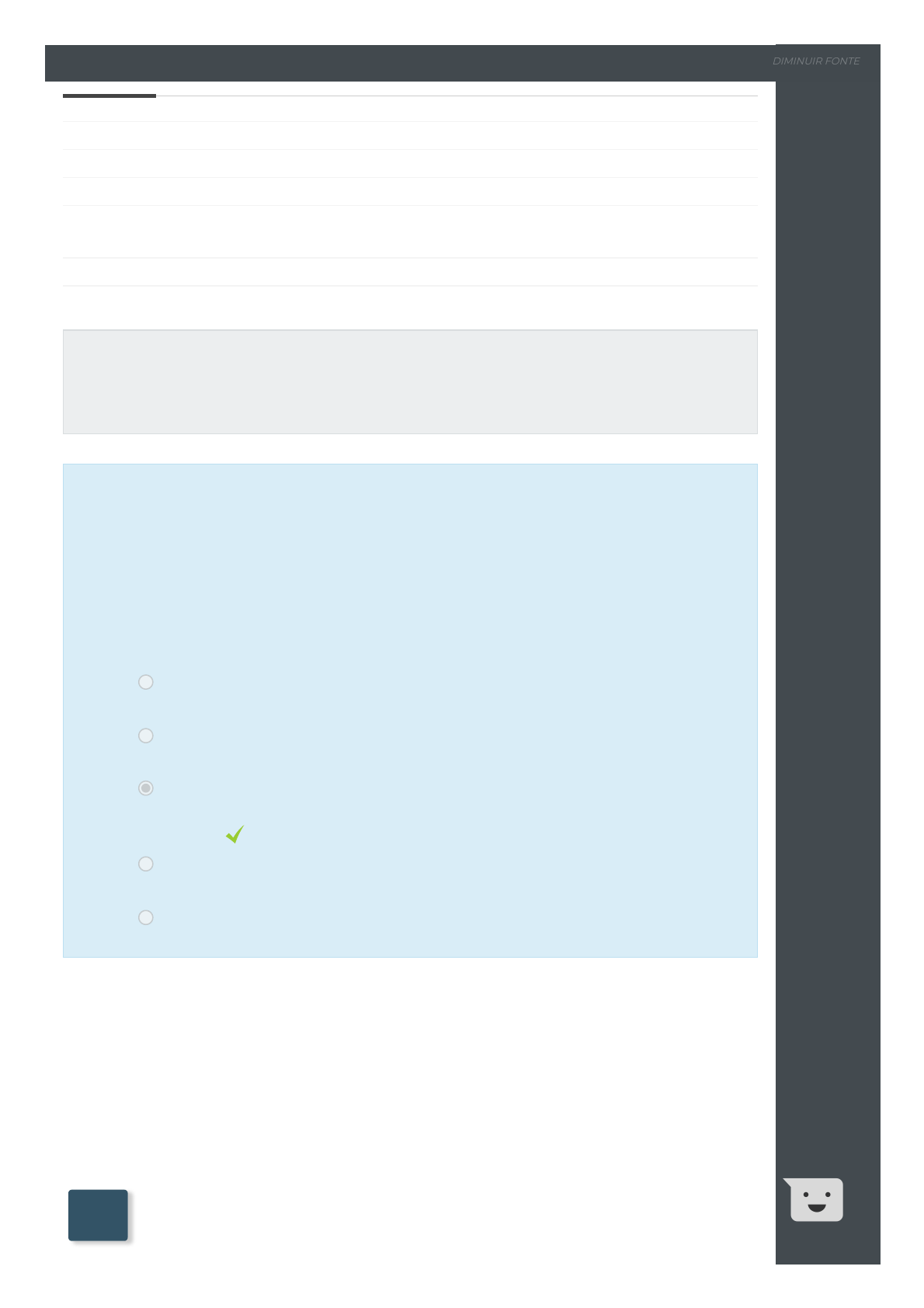 27/08/2021 U1S2 - Atividade Diagnóstica https://www.avaeduc.com.br/mod/quiz/review.php?attempt=686617 2/4 a. As empresas seguradoras, por se sujeitarem à fiscalização da SUSEP, não possuem regime próprio de insolvência. b. As Entidades de Previdência Complementar devem ser submetidas ao procedimento falimentar. c. Os empresários irregulares, ou seja, os que não estão regularizados no Registro de Empresas, possuem legitimidade passiva para o pedido de falência. d. As sociedades de economia mista, ainda que atuem no direito privado, não possuem legitimidade passiva para o procedimento de falência. e. As instituições Financeiras, se sujeitam, a princípio, à lei de Falência. Iniciado em sexta, 27 ago 2021, 15:39 Estado Finalizada Concluída em sexta, 27 ago 2021, 15:41 Tempo empregado 1 minuto 49 segundos Notas 3,00/3,00 Avaliar 10,00 de um máximo de 10,00(100%) Questão 1 Correto Atingiu 1,00 de 1,00 “ A falência é o procedimento de liquidação patrimonial forçada do devedor que se encontra juridicamente insolvente. Embora essa insolvência jurídica exista em relação a todos os tipos de devedores, nosso legislador houve por bem deixar a falência apenas para os devedores empresários, sejam eles empresários individuais, sejam sociedades empresárias.” Sobre a legitimidade para o processo de falência, marque a alternativa CORRETA: Escolha uma: U1S2 - Atividade Diagnóstica [ 1 ] IR PARA O CONTEÚDO [ 2 ] IR PARA O MENU SOBRE A ACESSIBILIDADE ALTO-CONTRASTE AUMENTAR FONTE DIMINUIR FONTE https://www.avaeduc.com.br/mod/page/view.php?id=1 https://www.avaeduc.com.br/mod/page/view.php?id=1 27/08/2021 U1S2 - Atividade Diagnóstica https://www.avaeduc.com.br/mod/quiz/review.php?attempt=686617 3/4 a. 5 – 1 – 2 – 3 – 4 b. 5 – 2 – 1 – 3 – 4 c. 4 – 1 – 2 – 3 – 5 d. 4 – 2 – 1 – 3 – 5 e. 5 – 2 – 1 – 4 – 3 Questão 2 Correto Atingiu 1,00 de 1,00 De acordo com as afirmativas realize as associações com os Princípios abaixo. 1 - Deve haver o emprego mínimo de atividades judiciais com os melhores resultados de atuação jurídica; 2 - Devem ser evitadas delongas operacionais, administrativas e processuais em nome do interesse em ser concluído o processo falimentar o quanto antes, para preservar os bens ou atividades 3 - Devem ser assegurados a todos os credores igualdade de tratamento e de direitos na execução concursal 4 - A atividade desempenhada possui relevância para manutenção da fonte produtora, de geração de empregos, capacidade contributiva para o fisco 5 - Para avaliação de pleitos de recuperação judicial, deve ser considerado o interesse coletivo na manutenção das atividades, em detrimento do interesse individual do empresário Princípio da Preservação da Empresa; Princípio da Celeridade; Princípio da Economia Processual; Princípio da par condicio creditorum; Princípio da função social da empresa A partir das associações realizadas, marque a alternativa que representa corretamente os conceitos dos Princípios Concursais. Escolha uma: [ 1 ] IR PARA O CONTEÚDO [ 2 ] IR PARA O MENU SOBRE A ACESSIBILIDADE ALTO-CONTRASTE AUMENTAR FONTE DIMINUIR FONTE https://www.avaeduc.com.br/mod/page/view.php?id=1 https://www.avaeduc.com.br/mod/page/view.php?id=1 27/08/2021 U1S2 - Atividade Diagnóstica https://www.avaeduc.com.br/mod/quiz/review.php?attempt=686617 4/4 a. Estão corretos os enunciados I e III. b. Estão corretos os enunciados II, III e IV. c. Os enunciados I, II, III e IV estão corretos. d. Estão corretos os enunciados II e III. e. Está correto apenas o enunciado I. Questão 3 Correto Atingiu 1,00 de 1,00 I- A redução de intervenção do Ministério Público no procedimento de Falência é significado do princípio da par condicio creditorum; II- O princípio da preservação da empresa tem por objetivo preservar o interesse coletivo sobre o interesse individual do empresário. III- Os princípios de Celeridade e da Economia Processual tem por objetivo agilizar o procedimento com o menor número de atos processuais. IV- O princípio da par condicio creditorum tem por objetivo proteger o direito de credores que se encontrem na mesma situação, do ponto de vista de classificação de créditos. A partir dos enunciados, marque a alternativa CORRETA: Escolha uma: [ 1 ] IR PARA O CONTEÚDO [ 2 ] IR PARA O MENU SOBRE A ACESSIBILIDADE ALTO-CONTRASTE AUMENTAR FONTE DIMINUIR FONTE https://www.avaeduc.com.br/mod/page/view.php?id=1