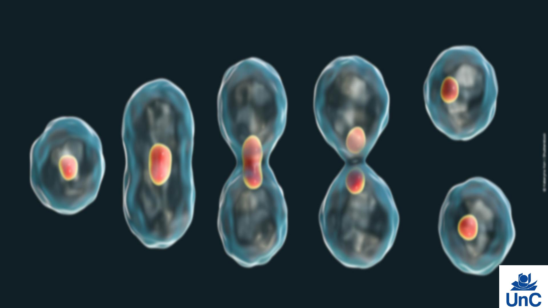 Alunas:Ana Julhia medeiros e Andressa Andrade. 1° fase de farmácia Ciclo celular • é o nome dado às diversas modificações que ocorrem em uma célula, desde o seu surgimento até a sua divisão em duas células-filhas. A interfase e a mitose constituem as principais fases do ciclo celular. Interfase • A interfase é uma das principais fases do ciclo celular e ocorre em três etapas: G1, S e G2. Pode-se dizer que é o estágio de preparação da célula para a divisão, pois ocorre seu crescimento e a duplicação do DNA Fase G1 • Durante a fase G1, também chamada de primeira fase de intervalo, a célula cresce e torna-se fisicamente maior, copia organelas, e fabrica os componentes moleculares que precisará nas etapas posteriores. Fase S • Na fase S, a célula sintetiza uma cópia completa do DNA em seu núcleo. Ela também duplica uma estrutura organizadora de microtúbulos chamada de centrossomo. Os centrossomos ajudam a separar o DNA durante a fase M. Fase G2 • Durante a segunda fase de intervalo, ou fase G2, a célula cresce mais, produz proteínas e organelas, e começa a reorganizar seu conteúdo em preparação para a mitose. A fase G2 ,termina com o início da mitose. Processos reprodutivos celular: Mitose O que é? • A mitose, também chamada de cariocinese, consiste no processo de divisão celular, em que a célula-mãe fera duas células-filha geneticamente idênticas com 46 cromossomos cada uma; • Os seres eucariontes, entre eles o ser humano, realizam mitose de forma contínua, desde o nascimento até a morte; • Esse processo acontece dentro das células somáticas, ou seja, aquelas responsáveis pela formação de tecidos e órgãos nos organismos multicelulares A Mitose é importante para: • O crescimento e regeneração de tecidos; • A cicatrização; • A formação de gametas em vegetais; • As divisões do zigoto durante o desenvolvimento embrionário. A mitose consiste em quatro fases básicas: prófase, metáfase, anáfase, telófase. Prófase Primeira etapa da mitose; • Durante essa fase, os cromossomos ficam visíveis em virtude de sua condensação; • A membrana nuclear desorganiza-se; • Os centríolos, que se duplicaram na interfase, migram para o polo da célula. Inicialmente aparecem fibras em torno dessas organelas que constituem o áster; depois, entre um centríolo e outro formam-se as fibras do fuso; • O nucléolo desaparece e o seu material é distribuído pela célula. https://www.biologianet.com/biologia-celular/nucleo-celular.htm Metáfase • Nessa etapa, os cromossomos condensam-se em seu grau máximo. Em virtude dessa característica, essa fase é a melhor para a análise dos cromossomos; • Cromossomos ligam-se às fibras do fuso e são alinhados na região mediana da célula, formando a placa metafásica ou placa equatorial. • Colchicina: substância que para a divisão celular na metáfase Anáfase • Ocorre o rompimento dos centrômeros e as cromátides migram para os polos da célula em virtude do encurtamento das fibras do fuso. Quando as cromátides migram juntas para o mesmo polo, ocorre um processo chamado de não disjunção cromossômica, fazendo com que uma célula fique com mais cromossomos que outra; Telófase • Fase final da mitose; • Ocorre o desaparecimento das fibras do fuso; • Os cromossomos descondensam-se; • Ocorre o reaparecimento do nucléolo e do envoltório nuclear (cariocinese); • No final dessa fase, observa-se a divisão do citoplasma (citocinese) e a distribuição das organelas entre as células-filhas. Nas células animais, a citocinese acontece por estrangulamento em razão do aparecimento de um anel de actina e miosina na região equatorial da célula. Por se iniciar na periferia da célula, essa citocinese é chamada de centrípeta. https://www.biologianet.com/biologia-celular/organelas-celulares.htm • No final dessa fase, observa-se a divisão do citoplasma (citocinese) e a distribuição das organelas entre as células- filhas. Nas células animais, a citocinese acontece por estrangulamento em razão do aparecimento de um anel de actina e miosina na região equatorial da célula. Por se iniciar na periferia da célula, essa citocinese é chamada de centrípeta. https://www.biologianet.com/biologia-celular/organelas-celulares.htm Qual a relação da mitose com o câncer? • Devido à fidelidade do processo de mitose em gerar células-filhas idênticas à célula- mãe, é que as células cancerosas se propagam pelo corpo do indivíduo. Uma célula cancerosa vai dar origem a outras duas células cancerosas e assim sucessivamente. Além disso, as células normais multiplicam-se até certo ponto e logo param de executar seu trabalho. Já as células cancerosas, continuam a se dividir indefinidamente. Essas células cancerosas penetram os tecidos, formando tumores ou neoplasmas malignos. Qual a relação da mitose com o envelhecimento? • O envelhecimento também pode ser explicado a partir da mitose. À medida com que envelhecemos, as nossas células vão perdendo a capacidade de se dividir. Assim, elas envelhecem e, por conseguinte, morrem.