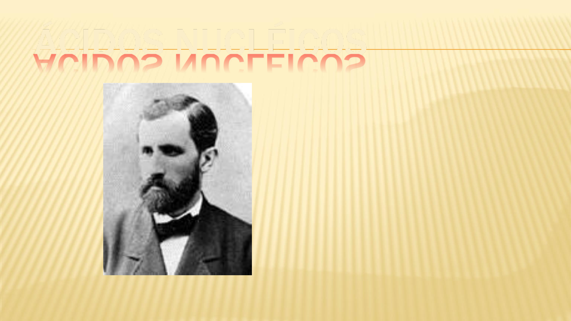 ÁCIDOS NUCLÉICOS Los ácidos nucleicos fueron descubiertos por Freidrich Miescher en 1869 La información genética o genoma, está contenida en unas moléculas llamadas ácidos nucleicos. Existen dos tipos de ácidos nucleicos: ADN y ARN. El ADN guarda la información genética en todos los organismos celulares, el ARN es necesario para que se exprese la información contenida en el ADN COMPOSICIÓN QUÍMICA Y ESTRUCTURA DE LOS ÁCIDOS NUCLEICOS Los ácidos nucléicos resultan de la polimerización de monómeros complejos denominados nucleótidos. Un nucleótido está formado por la unión de un grupo fosfato al carbono 5’ de una pentosa. A su vez la pentosa lleva unida al carbono 1’ una base nitrogenada. Estructura del nucleótido monofosfato de adenosina (AMP) NUCLEÓTIDO Aquellas bases formadas por dos anillos se denominan bases púricas (derivadas de la purina). Dentro de este grupo encontramos: Adenina (A), y Guanina (G). Si poseen un solo ciclo, se denominan bases pirimidínicas (derivadas de la pirimidina), como por ejemplo la Timina (T), Citosina (C), Uracilo (U). BASES NITROGENADAS ACIDO ORTOFOSFÓRICO AZÚCARES DE RNA Y DNA
