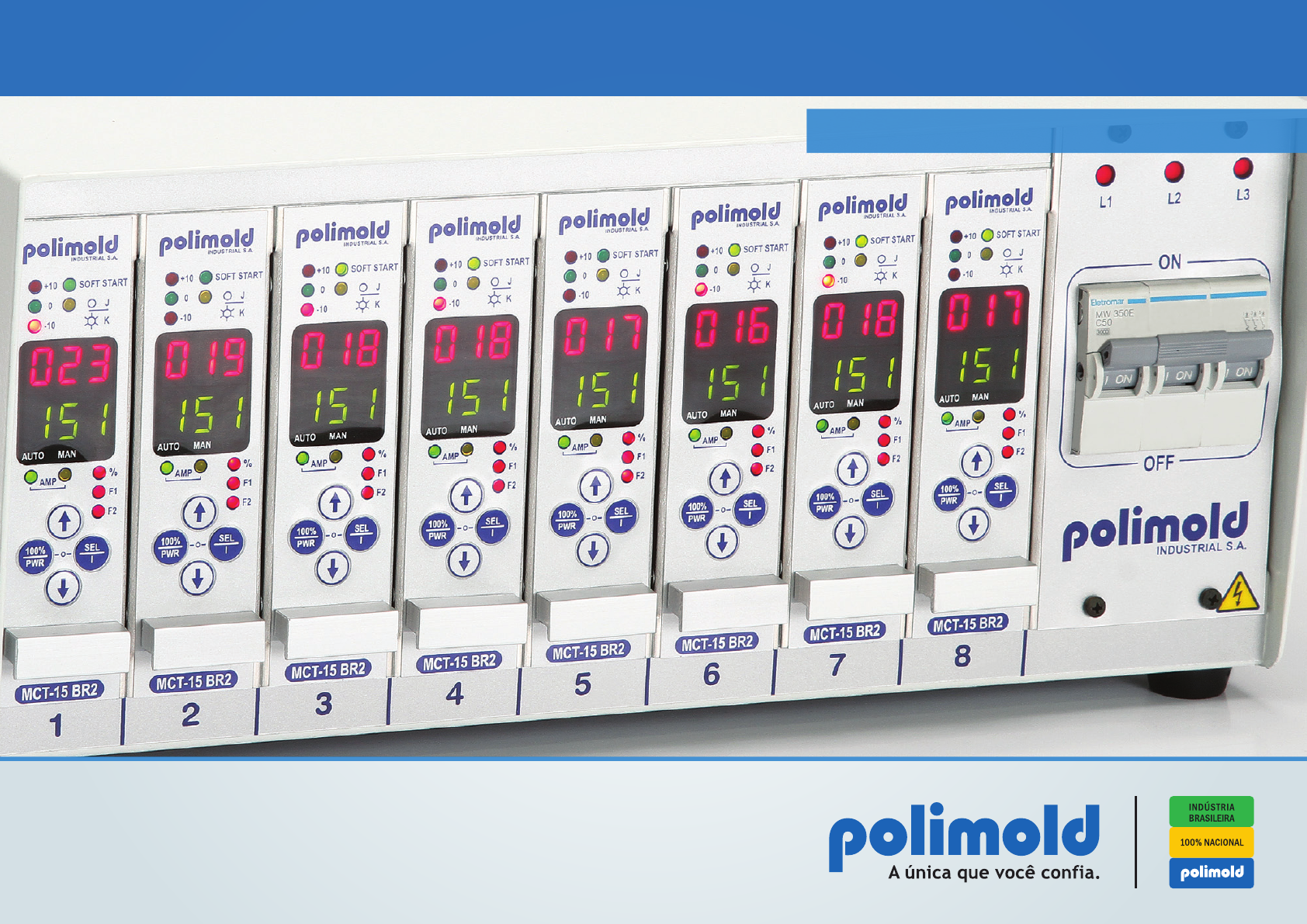 CONTROLADOR DE TEMPERATURA POLIMOLD MS (MINI SMART) COMPACTO, SEGURO E INTELIGENTE. w w w .a ge nc ia ca nn a. co m .b r A Po lim ol d se re se rv a no d ire ito d e al te ra r a s e sp ec ifi ca çõ es d os e qu ip am en to s s em a vi so p ré vi o. CONTROLADOR DE TEMPERATURA POLIMOLD MS (MINI SMART) Obs.: Conectores de energia serão fornecidos conforme a necessidade do cliente. * Para configurações especiais e maior número de zonas de controle, entre em contato com a Polimold. Entre em contato e saiba mais sobre o novo Controlador de Temperatura Polimold. 11 4358-7300 vendas@polimold.com.br COMPACTO Menor, mais leve, com componentes eletrônicos modernos e muito mais recursos. MODULAR Sistema modular que facilita a manutenção e gera rapidez na substituição. INTELIGENTE Agora o primeiro módulo pode gerenciar os demais, facilitando o envio de informações, como: ligar, booster, stand by, set point e OFF. CONTROLE TOTAL Com um simples toque é possível controlar a corrente elétrica de cada zona de temperatura. Número de Zonas de Controle Código Cabo de Energia Voltagem Acessório Módulo Individual (sem gabinete) MCT15MS - - - Até 5 zonas de temperatura CTMS5Z 3 ou 6 metros* 220V ou 380V (Monofásico ou Trifásico) - Até 8 zonas de temperatura CTMS8Z Rack com rodízio. Até 12 zonas de temperatura CTMS12Z SEGURO Novo sistema de alarme no visor caso a temperatura sofra alguma alteração de ± 20° C do que foi pré- programado. FÁCIL Rápido e eficiente. Agora, a configuração é feita diretamente no painel, sem a necessidade de desmontagem do módulo. O novo Controlador Polimold MS é do tamanho ideal: Compacto, leve e com muito mais tecnologia! 60% menor que os Controladores Convencionais Dimensão de um Controlador Convencional