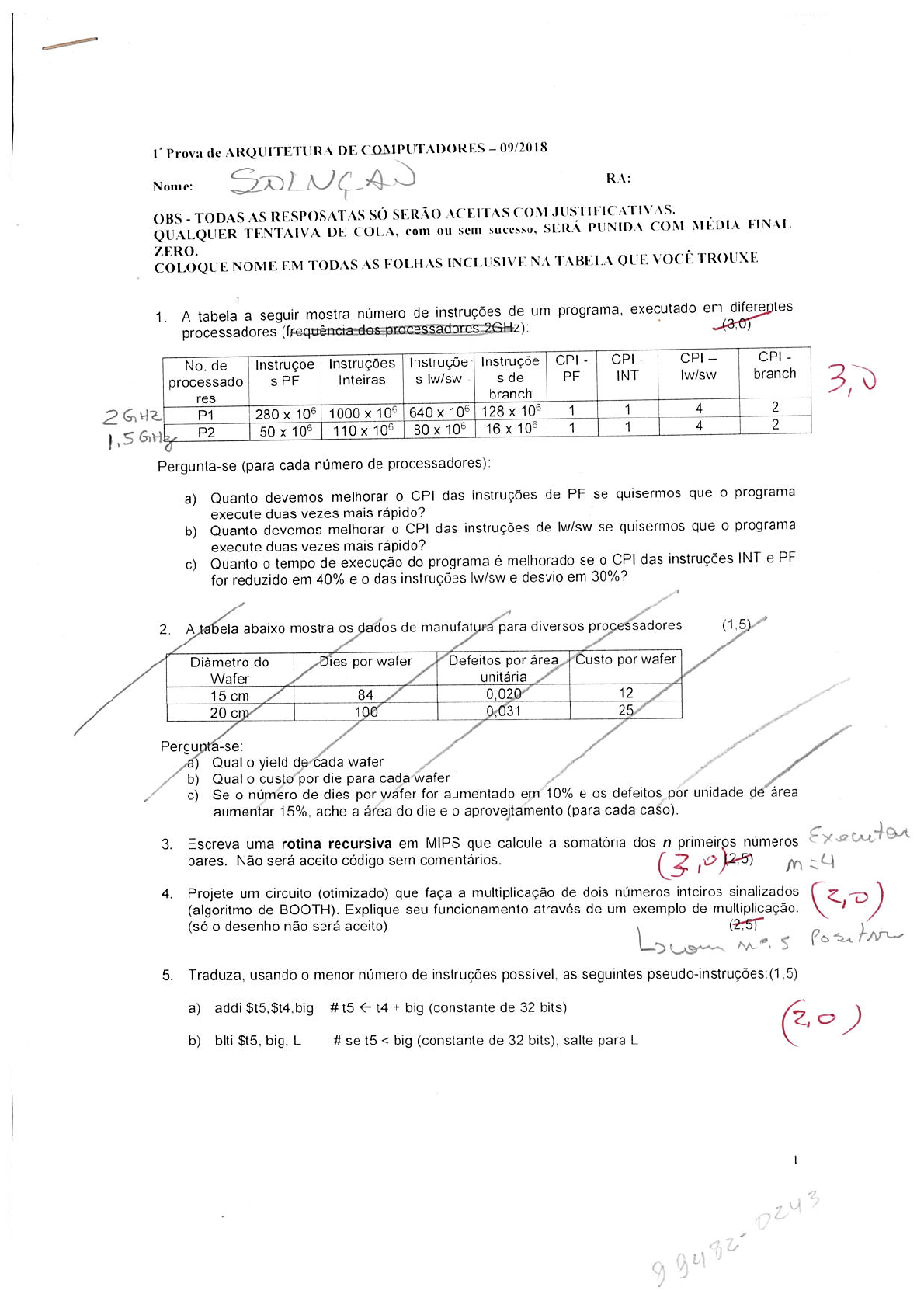 Prova 1 - Arquitetura de Computadores - Resolvida