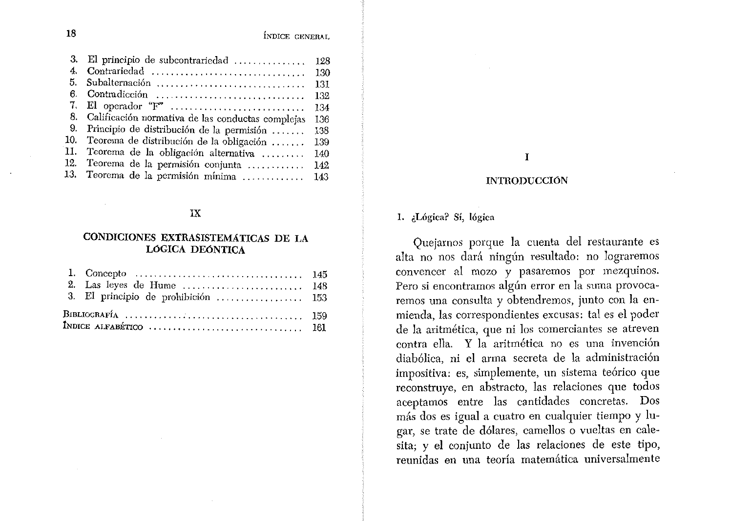 18 ÍNDICE GENERAL 3. E l principio de subcontrariedad 1 2 8 4. Contrariedad 1 3 0 5. Subalternación 1 3 1 6. Contradicción 1 3 2 7. E l operador "E ' 1 3 4 8. Calificación normativa de las conductas complejas 136 9. Principio de distribución de la permisión 1 3 8 10. Teorema de distribución de la obligación 1 3 9 11. Teorema de la obligación alternativa 1 4 0 12. Teorema de la permisión conjunta 1 4 2 13. Teorema de la permisión mínima 1 4 3 IX CONDICIONES EXTRASISTEMÁTICAS DE LA LÓGICA DEÓNTICA 1. Concepto 1 4 5 2. L a s leyes de Hume 1 4 8 3. E l principio de prohibición 1 5 3 BIBLIOGRAFÍA 1 5 9 INDICE ALFABÉTICO 1 6 1 INTRODUCCIÓN 1. ¿Lógica? Sí, lógica Quejamos porque la cuenta del restaurante es alta no nos dará ningún resultado: no lograremos convencer al mozo y pasaremos por mezquinos. Pero si encontramos algún error en la suma provoca- remos una consulta y obtendremos, junto con la en- mienda, las correspondientes excusas: tal es el poder de la aritmética, que ni los comerciantes se atreven contra ella. Y la aritmética no es una invención diabólica, ni el arma secreta de la administración impositiva: es, simplemente, un sistema teórico que reconstruye, en abstracto, las relaciones que todos aceptamos entre las cantidades concretas. Dos más dos es igual a cuatro en cualquier tiempo y lu- gar, se trate de dólares, camellos o vueltas en cale- sita; y el conjunto de las relaciones de este tipo, reunidas en una teoría matemática universalmente 2 0 L Ó G I C A , P R O P O S I C I Ó N y N O R M A admitida, nos permite verificar formalmente l a exactitud de cualquier cálculo. Lo mismo ocurre con la lógica. S i alguien nos endilga un largo discurso sobre un tema que igno- rarnos, nos será difícil formarnos una idea sobre la verdad o la falsedad de cada una de sus afirmacio- nes; pero si entre ellas hay dos que resulten contra- dictorias entre sí, no necesitaremos averiguar más para saber que en esa cháchara hay algo que no funciona bien. A l razonar de este modo habremos utilizado un sistema teórico —la lógica— que reco- pila, generaliza, abstrae y reconstruye en fórmulas las relaciones aceptables entre las proposiciones, aun con total prescindencia de su contenido: es decir, de modo completamente formal. En 6tras palabras, la lógica es un sistema que —entre otras cosas— permite verificar la corrección de los razonamientos. ,Qué es esto de la come-. ción de los razonamientos? L o entenderemos mejor a través de algunos ejemplos, Ejemplo 1: Toda música se compone de sonidos. El tango es música, Por lo tanto, el tango se com- pone de sonidos. Ejemplo 2: Como el cielo es azul y las nubes son blancas, me siento alegre y optimista. Ejemplo. 3: Como todas las cucarachas tienen alas y yo soy una cucaracha, yo tengo alas. A primera vista los dos primeros ejemplos pa- recen muy "razonables", en tanto el tercero parece INTRODUCCIÓN 21 ridículo. Pero si nos quedamos con esta impresión no iremos muy lejos en nuestra capacidad de racio- cinio y seremos fácilmente engañados por una retó- rica falaz. Examinemos los ejemplos uno por uno, con más cuidado. El ejemplo 1 propone dos premisas y una con- clusión. Y cualquiera que lo lea advertirá que la conclusión es una consecuencia necesaria de las pre- misas. E n efecto, podemos no saber gran cosa de música, y podemos ignorar por completo la existen- cia del tango; pero si nos informan que la música se compone de sonidos y que el tango es una forma de música, en esos datos se encuentra contenido, implícitamente, el resultado que aquel razonamien to hace explícito: que el tango se compone de so- nidos. El ejemplo 2 también contiene dos premisas y una conclusión, pero ésta no se desprende necesa- riamente de aquéllas. Puede ocurrir, por cierto, que una persona de talante contemplativo se sienta impulsada a un irresistible optimismo por la mera comprobación del color del cielo y de las nubes; pero también sucede que a veces uno tiene un dolor de muelas, y entonces el cielo y las nubes carecen de toda eficacia como talismanes de buen humor. Y aquí aparece —entonces— un importante dato sobre la lógica: una deducción válida no es la que eventualmente lleva a un resultado verdadero, sino la que necesariamente lleva a un resultado verda- dero siempre que las premisas también lo sean. 2 2 u s c ; l e A , P R O P O S I C I Ó N Y N O R M A Esto podrá comprenderse mejor a partir del ejemplo 3 que, contra lo que podría suponerse a primera vista, es absolutamente válido, No, por cierto, porque quienes esto escriben hayan sufrido alguna metamorfosis kafkiana y se dediquen a revo- lotear por las cocinas, sino porque la conclusión se desprende necesariamente de las premisas. E n efecto, si fuera verdad que todas las cucarachas tie- nen alas, y sí fuera exacto que yo pertenezco a tan poco apreciada especie, entonces también sería cier- to que tengo alas. Nótese que no existe otra posi- bilidad lógica: si yo no tengo alas no puedo ser una cucaracha (porque hemos supuesto que todas las cucarachas las tienen); y si no tengo .alas y a pesar de eso sigo siendo una cucaracha, entonces no pue- de ser verdad la hipótesis general sobre el vuelo cu- carachil. D e modo que el ejemplo 3 es una deduc- ción correcta, a pesar de que tanto sus premisas como su conclusión son obviamente falsas. Claro está que aquí puede surgir una reflexión escéptica: si la lógica aprueba un razonamiento se- gún el cual todas las cucarachas tienen alas y yo soy una cucaracha alada, también podría aprobar que los chanchos escriben poemas, y que la infla- ción no existe, y que la lima es una bola de queso Gruyère. Entonces ¿para qué sirve la lógica, si no permite distinguir lo verdadero de lo falso? Esto vale tanto como preguntar para qué sirve la televi- sión, si los programas son tan malos. S i el espec- táculo no nos gusta, haremos bien en apagar el re- INTRODUCCIÓN 23 ceptor, pues no ob
