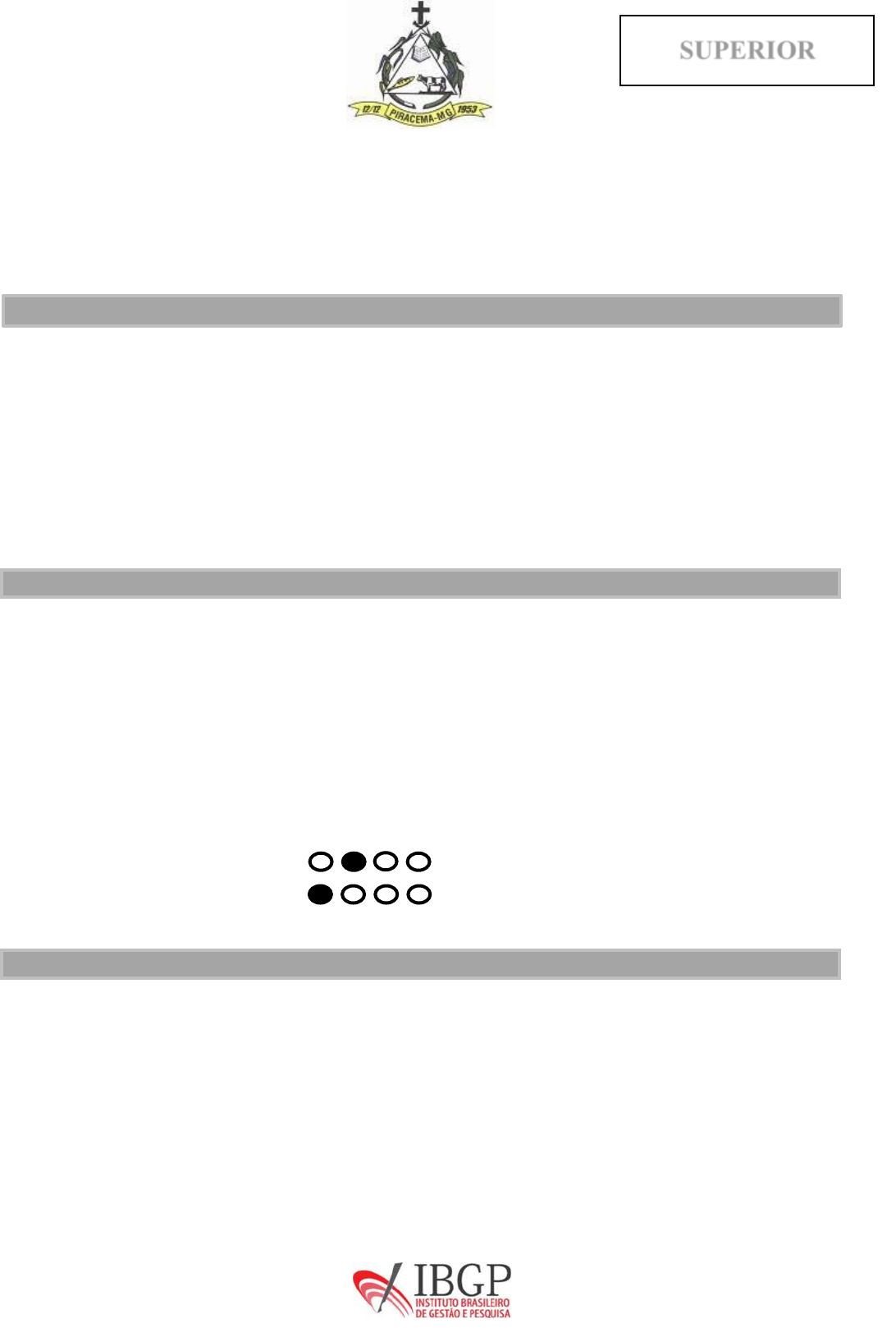 1 CONCURSO PÚBLICO PREFEITURA MUNICIPAL DE PIRACEMA EDITAL Nº 01/2019 CARGOS: 507 – PROFESSOR PII INSTRUÇÕES DA PROVA Quando for permitido abrir o caderno, confira se este caderno contém, ao todo, 40 (quarenta) questões de Múltipla Escolha, cada uma constituída de 4 (quatro) alternativas de respostas, todas perfeitamente legíveis, bem como se a impressão, a paginação e a numeração das questões estão corretas. A Prova de Múltipla Escolha está assim distribuída: 15 (quinze) questões de Português, 05 (cinco) questões de Noções de Informática, 05 (cinco) questões de Raciocínio Lógico, 05 (cinco) questões de Legislação e 10 (dez) questões de Conhecimentos Específicos. Caso os dados estejam incorretos, ou incompletos, ou tenham qualquer imperfeição, favor informar tal ocorrência ao fiscal. NÃO SERÃO ACEITAS RECLAMAÇÕES POSTERIORES. Use, como rascunho, a Folha de Respostas reproduzida no início desse caderno. ATENÇÃO Verifique se seus dados estão corretos na Folha de Respostas, caso não estejam informe ao fiscal imediatamente. Nas Folhas de Respostas, assinale a alternativa que julgar correta para cada questão usando caneta esferográfica de tinta preta ou azul. Mais de uma letra assinalada implicará na anulação da questão. Não deixe nenhuma questão sem resposta. Qualquer rasura no preenchimento anulará a questão. A Folha de Respostas da Prova Objetiva de Múltipla Escolha NÃO deve ser dobrada, amassada, rasurada, manchada ou conter qualquer registro fora dos locais destinados às respostas. O modo correto de assinalar a alternativa na Folha de Respostas da Prova Objetiva é cobrindo, fortemente, o espaço a ela correspondente, conforme o modelo abaixo: FOLHA DE RESPOSTA SEM ASSINATURA NÃO TEM VALIDADE. ORIENTAÇÕES DO PROCESSO A duração da Prova será de 03h30min (três horas e trinta minutos), incluído a distribuição da prova, o tempo para leitura das instruções e preenchimento da folha de respostas da prova, sendo responsabilidade do candidato observar o horário estabelecido. (Subitem 10.1.7.). Período de Sigilo – o candidato somente poderá se retirar definitivamente da sala de prova após transcorrido o tempo de 01 (uma) hora de seu início, mediante a entrega obrigatória da sua Folha de Respostas e do seu Caderno de Questões devidamente preenchidos e assinados, ao fiscal de sala. (Subitem 10.1.18.). Os candidatos poderão ausentar-se da sala, para utilização de sanitários ou para beber água, após o tempo de 01 (uma) hora de seu início até o prazo de 15 (quinze) minutos antes do seu término. (Subitem 10.1.20.). Os três últimos candidatos presentes na sala somente poderão deixar o local de prova juntos. (Subitem 10.1.20.). O Caderno de Questões e o gabarito oficial da Prova Objetiva de Múltipla Escolha serão disponibilizados no endereço eletrônico www.ibgpconcursos.com.br, no dia 10/11/2019, a partir das 20hs. 1 2 SUPERIOR 2 A B C D A B C D A B C D A B C D A B C D A B C D A B C D A B C D A B C D A B C D A B C D A B C D A B C D A B C D A B C D A B C D A B C D A B C D A B C D A B C D A B C D A B C D A B C D A B C D A B C D A B C D A B C D A B C D A B C D A B C D A B C D A B C D A B C D A B C D A B C D A B C D A B C D A B C D A B C D A B C D FOLHA DE RESPOSTAS (RASCUNHO) 01 21 02 22 03 23 04 24 05 25 06 26 07 27 08 28 09 29 10 30 11 31 12 32 13 33 14 34 15 35 16 36 17 37 18 38 19 39 20 40 Ao transferir suas marcações para a folha de respostas oficial, observe as instruções registradas na capa da prova. Se houver alguma anotação nesse rascunho de folha de respostas, distintas da opção de resposta escolhida, o candidato não poderá levá-la. Use caneta esferográfica azul ou preta. O Caderno de Questões e o gabarito oficial da Prova Objetiva de Múltipla Escolha serão disponibilizados no endereço eletrônico www.ibgpconcursos.com.br, no dia 10/11/2019, a partir das 20hs. 3 PORTUGUÊS As questões de 01 a 08 dizem respeito ao Texto. Leia-o atentamente antes de respondê-las. (Texto) QUESTÃO 1 Assinale a alternativa que apresenta CORRETAMENTE a função morfológica da partícula “que” empregada no título do Texto: A) Pronome relativo. B) Conjunção integrante. C) Conjunção optativa. D) Preposição. QUESTÃO 2 Assinale a alternativa em que a alteração sugerida de substituição do termo não acarreta erro gramatical ou que corrige erro existente no Texto: A) Substituição da vírgula presente imediatamente após o termo “assim” (linha 6) por ponto e vírgula. B) Substituição de “por dirigir” (linha 4) por “por dirigirem”. C) Substituição de “à” (linha 18) por “a”. D) Substituição de “bêbado” (linha 17) por “sóbrio”. QUESTÃO 3 Assinale a alternativa que apresenta CORRETAMENTE uma palavra retirada do Texto acentuada pela seguinte regra: “Acentuam-se as palavras paroxítonas terminadas em ditongo.” A) “memória” (linha 3). B) “altíssima” (linha 5). C) “três” (linha 12). D) “inglês” (linha 16). QUESTÃO 4 Para o trecho: “Ele sofria com alguns dos sintomas ruins da embriaguez: mente turva, irritação, tristeza e lacunas de memória.” (linhas 1 a 3), é CORRETO afirmar que nele não há termo algum classificado gramaticalmente como: A) Pronome. B) Preposição. C) Artigo indefinido. D) Adjetivo. 4 QUESTÃO 5 Assinale a alternativa que apresenta CORRETAMENTE a regra pela qual a vírgula foi empregada no trecho a seguir. “Ele sofria com alguns dos sintomas ruins da embriaguez: mente turva, irritação, tristeza e lacunas de memória.” (linhas 1 a 3) A) Emprega-se a vírgula para separar os elementos mencionados numa relação. B) Emprega-se a vírgula para isolar o vocativo. C) Emprega-se a vírgula para isolar o aposto explicativo. D) Emprega-se a vírgula para isolar palavras adversativas. QUESTÃO 6 Sobre a concordância do Texto, assinale a alternativa CORRETA: A) Há erro de concordância no parágrafo iniciado e termina