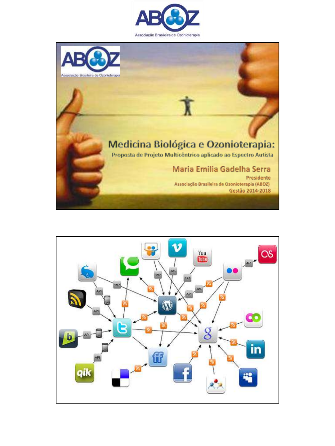21o. Curso de Ozonioterapia 9/24/2016 Autor: Maria Emilia Gadelha Serra 1 21o. Curso de Ozonioterapia 9/24/2016 Autor: Maria Emilia Gadelha Serra 2 Esta iniciativa surgiu a partir do fato observado por várias mães de crianças autistas após ciclos de insuflação retal da mistura gasosa oxigênio-ozônio e aplicação auricular: as crianças iniciaram a fala e melhoraram a socialização, algumas de forma surpreendentemente rápida. 21o. Curso de Ozonioterapia 9/24/2016 Autor: Maria Emilia Gadelha Serra 3 “Quero dar meu depoimento a respeito da ozonioterapia. Estou encantada com os resultados. Após longa conversa com minha amiga L.M., e apos ler vários artigos a respeito, resolvemos investir nesse método. Estamos usando há cerca de 1 mês, quase todos os dias (às vezes a rotina de terapias e Escola atrapalham). Estamos fazendo pela via retal e auricular (pelo ouvido há duas semanas, aproximadamente) com sonda retal e estetoscópiomodificado, respectivamente. Resultados: meu filho está mais calmo, atenção e foco estão melhores, Ele passou a assistir filmes comigo, social está normal, passou a responder perguntas do tipo "Por que...?", os ticks nas mãos diminuiram (com ozonioterapia através do ouvido), a voz está mais normal e não rouca, cognitivo perfeito. Ainda temos bastante o que melhorar. O atec dele estava 14 e caiu 2 pontos para 12 esta semana com o uso do ozônio por essas duas vias. Estamos usando também mimosa pudica, leucovorin e Valtrex. Paramos a quelação AC nestes dois últimos fim de semana para eu poder descansar um pouco.” “Olá, pessoal Aqui somos 3 mães que há quase um ano descobriram os benefícios da terapia com ozônio em nossas crianças com autismo. Estamos viabilizando esta conferência afim de que possamos disseminar tão importante tratamento a nossos filhos. Os benefícios têm sido grandes : disbiose controlada, intestino regulado, clostridium zerado, diminuição da hiperatividade e aumento da atenção. Este será um evento sobre Ozonioterapia dos poucos em que pais, que não sejam da área de saúde, poderão participar, pois pensamos que nós pais é que somos força para nossos filhos e nossa longa marcha. Se você não pode comparecer ou fazer on line, busque estudar o assunto e interessar seus médicos,pois é certo que seus filhos serão beneficiados. Abraços e boa luta!” https://www.facebook.com/leticiamothe 21o. Curso de Ozonioterapia 9/24/2016 Autor: Maria Emilia Gadelha Serra 4 https://www.youtube.com/watch?v=ZRUiJXrl8Yg 21o. Curso de Ozonioterapia 9/24/2016 Autor: Maria Emilia Gadelha Serra 5 21o. Curso de Ozonioterapia 9/24/2016 Autor: Maria Emilia Gadelha Serra 6 21o. Curso de Ozonioterapia 9/24/2016 Autor: Maria Emilia Gadelha Serra 7 21o. Curso de Ozonioterapia 9/24/2016 Autor: Maria Emilia Gadelha Serra 8 21o. Curso de Ozonioterapia 9/24/2016 Autor: Maria Emilia Gadelha Serra 9 21o. Curso de Ozonioterapia 9/24/2016 Autor: Maria Emilia Gadelha Serra 10 21o. Curso de Ozonioterapia 9/24/2016 Autor: Maria Emilia Gadelha Serra 11 21o. Curso de Ozonioterapia 9/24/2016 Autor: Maria Emilia Gadelha Serra 12 nOOOcAUT Núcleo de Ozonioterapia de Combate ao Autismo nOOOcAUT = núcleo de OOOzonioterapia de combate ao AUTismo 21o. Curso de Ozonioterapia 9/24/2016 Autor: Maria Emilia Gadelha Serra 13 nOOOcAUT • Núcleo de Ozonioterapia de Combate ao Autismo 1) Ajudar os pais que querem ajudar seus filhos. 2) Ajudar os médicos a ajudarem as crianças autist as procuradas por eles 3) Produzir trabalhos científicos que comprovem o efeito terapêutico do ozônio no autismo. nOOOcAUT Núcleo de Ozonioterapia de Combate ao Autismo 1) Ajudar os pais que querem ajudar seus filhos. PAIS DE AUTISTAS: a) Ansiosos b) Comprometidos c) Amorosos Divulgação de um protocolo básico de ozônio retal aos pais (uso domiciliar) 21o. Curso de Ozonioterapia 9/24/2016 Autor: Maria Emilia Gadelha Serra 14 nOOOcAUT Núcleo de Ozonioterapia de Combate ao Autismo 2) Ajudar os médicos a ajudarem as crianças autistas procuradas por eles. Divulgação do tratamento biomédico para o autismo e orientação do que fazer com este tipo de paciente. Divulgação de um protocolo básico de ozônio retal aos médicos. nOOOcAUT Núcleo de Ozonioterapia de Combate ao Autismo 3) Produzir trabalho científico pioneiro que comprove o efeito terapêutico da Ozonioterapia no autismo. Estudo clínico para produção de trabalho científico de qualidade. 21o. Curso de Ozonioterapia 9/24/2016 Autor: Maria Emilia Gadelha Serra 15 Associação Pais Seleção/indicação das crianças que serão atendidas nos núcleos de Ozonioterapia • Principais Capitais. • Indicações profissionais. • Questionário Clínica/consultório (Serviço médico) Cadastramento, treinamento de equipe médica e profissionais de saúde com o selo de qualidade nOOOcAUT – Aboz com aplicação do protocolo específico para pacientes do espectro autista. Instituição de Ensino/ Pesquisa • Acompanhamento da Pesquisa. • Acompanhamento Pacientes ABOZ A ABOZ se encarregará de localizar os médicos em cada cidade e instituir os núcleos de Ozonioterapia. • Responsável por interligar todos os envolvidos do protocolo nOOOcAUT . • Treinamento, profissionais. • Realização da pesquisa. nOOOcAUT Núcleo de Ozonioterapia de Combate ao Autismo https://www.survio.com/survey/d/Y9P9N2N1B7P6Y1X2F 21o. Curso de Ozonioterapia 9/24/2016 Autor: Maria Emilia Gadelha Serra 16 Em linhas gerais, o projeto nOOOcAUT inclui a realização de: • preenchimento de questionário online https://www.survio.com/survey/d/Y9P9N2N1B7P6Y1X2F • ATEC • exames complementares (exames laboratoriais básicos de bioquímica incluindo dosagem de G6PD) • dosagem sérica de citoquinas inflamatórias • avaliação de stress oxidativo – MDA urinário • exame de fezes (Kyberkompact) • teste urinário de ácidos orgânicos bacterianos • alergia alimentar tardia mediada por IgG - IMUPRO 100 www.microecologia.