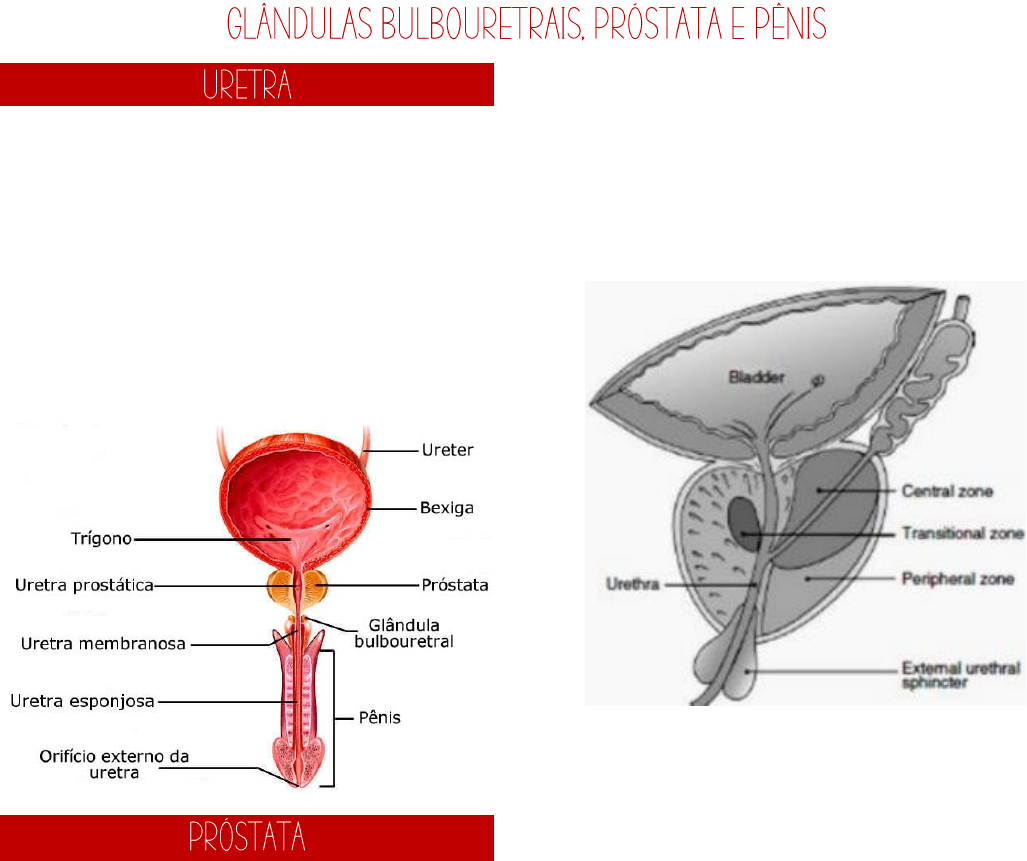 Sistema reprodutor masculino • É um ducto terminal para dois sistemas diferentes, tanto para o sistema genital, quanto para o sistema urinário. Portanto, passa sêmen e urina. • Dividida em 3 segmentos: ➢ Uretra prostática. ➢ Uretra membranosa. ➢ Uretra peniana/esponjosa. • É a maior glândula acessória. • Envolve a porção inicial da uretra, a uretra prostática. • Possui células especializadas em produzir secreções, que ficam armazenadas dentro de estruturas especificas. • A próstata é um conjunto de 30 a 50 glândulas tubuloalveolares ramificadas, que envolvem a uretra prostática. • Dividida em 3 zonas distintas: ➢ Zona central (25%): circunda o ducto ejaculatório. É resistente tanto ao carcinoma quanto a inflamação. ➢ Zona de transição (5%): circunda a uretra prostática. Comum de ocorrer hiperplasia prostática benigna, sendo comprimida e dificultando a micção. ➢ Zona periférica (70%): é o mais suscetível a inflamação e a maioria dos carcinomas. • Cada unidade secretora é chamada de ácino e todos os ductos desembocam direto na uretra. • Os ácinos são formados por um epitélio simples ou pseudoestratificado, sendo encontradas células basais e células secretoras. A diferença de epitélio é vista nas zonas – a zona central é composta por epitélio pseudoestratificado e a zona central por epitélio colunar simples. • Toda a próstata é envolvida por uma cápsula fibromuscular, que adentra em forma de septos para o interior, de maneira irregular. Esses septos formam o estroma fibromuscular. • A cápsula e o estroma são formados por um tecido fibrosos, que é o tecido conjuntivo denso, rico em fibras colágenas, mas também possui fibras elásticas e reticulares. Além do tecido conjuntivo, há células musculares lisas, misturadas no estroma. Nas lâminas, as fibras de colágeno aparecem de azul e as células musculares de vermelho. • No centro de alguns ácinos, encontramos acúmulo de secreção, chamadas de concreções prostáticas ou corpos amiláceos. Essas concreções correspondem a agregados de células epiteliais mortas e precipitação de material secretado. Depois de um tempo no lúmen, elas tendem a se calcificar, tornando-se estruturas esféricas e endurecidas, devido ao processo de calcificação. A quantidade aumenta com a idade. • Podem ser chamadas também de glândulas de Cowper. • São duas glândulas, localizadas na raiz do pênis, na região do diafragma urogenital. • São pequenas, com tamanho aproximado de uma ervilha. • Apresentam um ducto curto que desemboca na uretra peniana. • São glândulas tubuloalveolares, assim como a próstata. • Apresentam uma cápsula que envolve e adentra a região da glândula, formando o estroma. A cápsula e o estroma são formados por tecido conjuntivo denso, células musculares lisas e esqueléticas. • As estruturas glândulas são revestidas por epitélio colunar simples. dentro do epitélio, há células secretoras, que produzem uma secreção parecida com um muco, que não se cora por HE. • Essa secreção não participa da formação do sêmen, atua apenas como um lubrificante para a uretra. • Na região mais externa, temos a presença do revestimento externo, glande e prepúcio. • Na região interna, há 3 corpos cilíndricos, formados por tecido erétil. No centro do corpo esponjoso, passa a uretra. • O revestimento externo é formado por uma pele fina e abaixo dela há tecido conjuntivo frouxo vascularizado. Há ausência de tecido adiposo e apresenta camada de músculo liso. • A pele da glande é mais fina que das outras regiões e fica firmemente aderida ao tecido conjuntivo subjacente. Nessa região há presença de glândulas sebáceas. • O prepúcio se refere a uma dobra retrátil de pele, que contém tecido conjuntivo com muscular liso em seu interior. Ele envolve a glande e o processo de circuncisão é a retirada desse prepúcio. • Internamente, há os corpos de tecido erétil, sendo dois na região dorsal, chamados de corpos cavernosos e um na região ventral, chamado de corpo esponjoso. Os três corpos são envolvidos pela túnica albugínea, que é formada por tecido conjuntivo denso. Essa túnica muda de espera quando o pênis está flácido (2 mm de espessura) para quando está ereto (0,5mm de espessura). • O tecido erétil é formado por componentes, como os espaços vasculares, revestidos por endotélio e circundados por músculo liso e tecido conjuntivo intersticial, com muitas terminações nervosas e vasos sanguíneos e linfáticos. • A glande é uma dilatação da extremidade distal do corpo esponjoso. • A uretra apresenta diferença de revestimento epitelial, sendo a peniana revestida por epitélio pseudoestratificado, na glande por epitélio estratificado pavimentoso e glândulas secretoras de muco (glândulas de Littré).