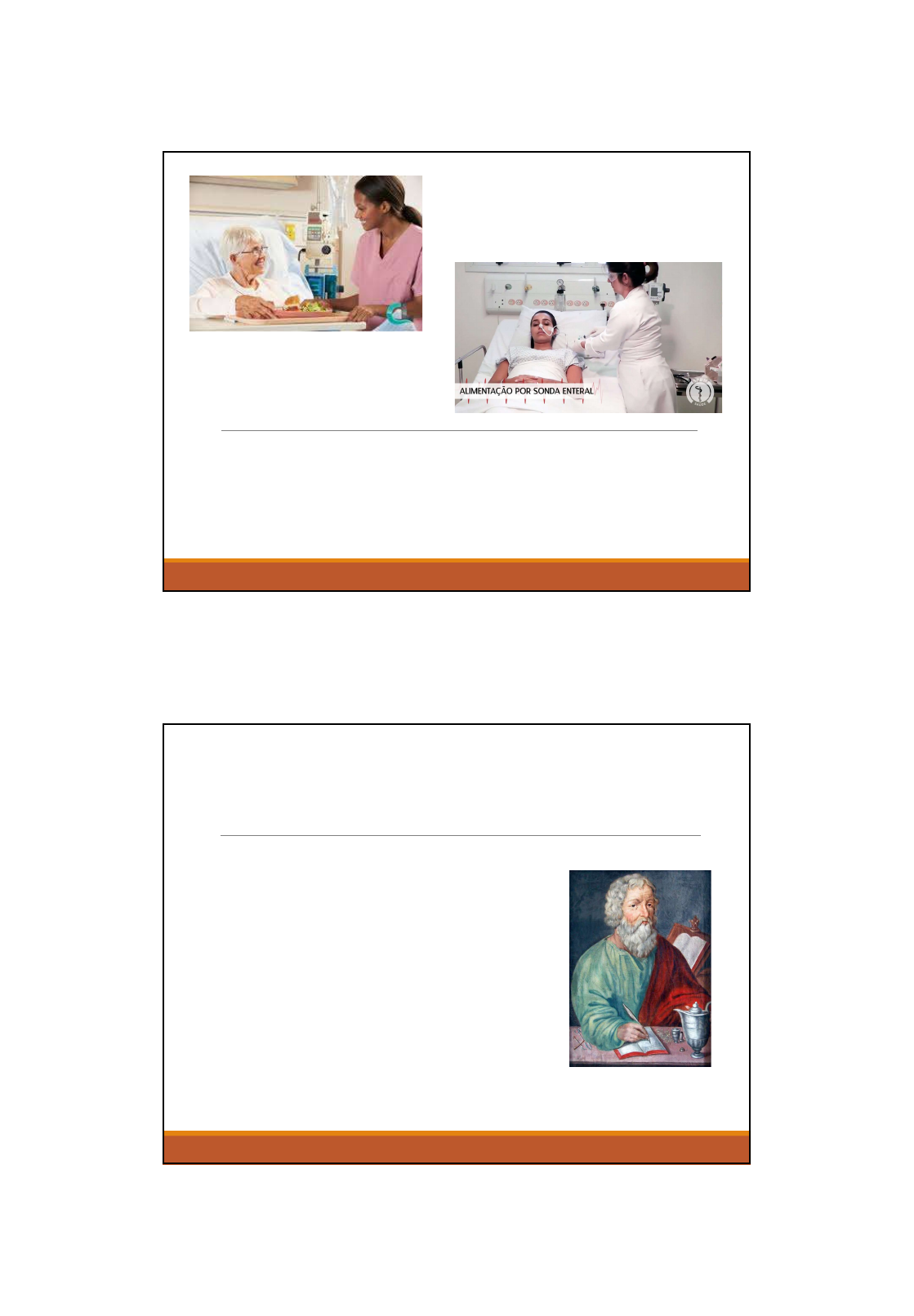 1 NUTRIÇÃO HOSPITALAR MELISSA CRISTINA ALVES N U T R I C I O N I S TA – U N I V E R S I D A D E PA U L I S TA ( U N I P ) P Ó S G R A D U A D A E M N U T R I Ç Ã O C L Í N I C A E E S P O RT I VA – U N I V E R S I D A D E D E M A R Í L I A ( U N I M A R ) Desde os tempos remotos a humanidade já utilizava os alimentos e ervas para fins medicinais, pois, ainda não existiam o que chamamos hoje de medicamentos. Hipócrates, foi considerado o Pai da Medicina, afirmou há mais de 2 mil anos: “Que teu remédio seja teu alimento e que teu alimento seja teu remédio”. Dietoterapia 2 Dietoterapia É a parte da ciência da nutrição que se dedica às dietas específicas para cada enfermidades (doença), a fim de ofertar ao organismo debilitado os nutrientes adequados, e favorecer a recuperação de sua saúde e de seu adequado estado nutricional. Dieta: consiste em uma mudança de hábitos alimentares onde o principal objetivo é fazer com que nos alimentemos corretamente e de acordo com a necessidade de cada um. Dietas hospitalares são divididas em 3: • Dietas de Rotina (Geral ou Livre, Branda, Leve, Pastosa, Líquida, Hídrica) • Dietas modificadas (Hipo, Hiper, A) • Dietas especiais (Para diabético, hipertenso, sem lactose, sem glúten) Dietas hospitalares 3 DIETAS DE ROTINAS São aquelas que não necessitam de restrições ou modificações em sua composição. Apenas sofrem modificações quanto a consistência, possibilitando melhor adaptação em períodos de maior dificuldade na aceitação alimentar ou em fases de transição relativamente curtas. São elas: • Geral ou Livre • Branda • Leve • Pastosa • Líquida • Hídrica DIETA GERAL ou LIVRE A dieta geral tem como objetivo manter o estado nutricional de pacientes hospitalizados que não necessitam de restrições específicas e que apresentam funções de mastigação e gastrintestinais preservadas. Possui uma consistência normal. O paciente pode receber qualquer tipo de alimento/preparação de acordo com sua tolerância alimentar e o que é disponível no hospital. 4 Exemplo de cardápio Geral Café da manhã Almoço Lanche da tarde Jantar Ceia Café com leite Pão francês com margarina Mamão Salada de alface e cenoura Bife cozido, couve flor arroz e feijão Suco de maracujá Gelatina Chá mate e Pão francês com geleia Melão Salada de alcelga e tomate Sobrecoxa de frango refogada Brócolis refogado Arroz e feijão Suco de laranja Flan de coco Chá de camomila Bolo DIETA GERAL ou LIVRE 5 DIETA BRANDA Para indivíduos que necessitam poupar o trabalho digestivo, dificuldade parcial na mastigação e/ou deglutição, apresentados através de problemas mecânicos em que haja a necessidade de abrandar os alimentos para uma melhor aceitação e utilização orgânica. Muito indicada em situações pós-cirurgicas e para idosos. A dieta branda pode também ser indicada em um período de transição para a evolução de uma dieta de menor consistência até uma de maior consistência. Dieta composta por alimentos muito bem cozidos e macios. A dieta Branda não pode ter alimentos de difícil digestão como: óleos, frituras, sementes, fibras, saladas cruas, frutas dura e casquinha de feijão. DIETA BRANDA 6 salada cozida e vegetais cozidos no forno, água, vapor e refogados carnes cozidas ou desfiadas frutas (sucos, assadas, ou bem maduras sem a casca – banana e mamão, pêra , maçã , pêssego); torradas, biscoitos (não-integrais), pão macio sopas/bolos simples/geléia; leite, queijo magros, iogurtes e margarina; Arroz macio caldo de leguminosas Preparações permitidas: Exemplo de cardápio (Branda) Café da manhã Almoço Lanche da tarde Jantar Ceia Leite com café Pão de leite mamão Salada de cenoura cozida Cubos e filé de frango refogado arroz e caldo feijão Suco de laranja coado Gelatina Chá erva cidreira Bolo de fubá Suco de acerola polpa Coado Salada de beterraba cozida Carne moída refogada Couve refogada Arroz e caldo de feijão Suco de tangerina coado Flan de baunilha Chá de camomila Biscoitos cream crackers 7 Dieta Leve Indivíduos com alterações acentuados na mastigação ou deglutição de alimentos sólidos; pode ser indicada também para determinados preparos de exames alguns pré e pós-operatório, nos quais a função do TGI esteja moderadamente comprometida. Indicada como dieta de transição para dietas de maior consistência. Consistência semilíquida dos alimentos oferecidos na forma de: Sopas ou cremes, composta de caldos espessos ou ralos, Carne ( moída ou desfiada), purês, frutas macias, vitaminas, mingau, bolacha. 8 Preparações permitidas: Chá mingau/vitamina/leite frutas macias ou cozidas e sucos; sopas em geral, com pedaços. sorvetes, gelatinas, pudins, cremes, flan; biscoitos, bolo simples (sempre acompanhados de líquido) purê de vegetais Dieta Leve Café da manhã Almoço Lanche da tarde Jantar Ceia leite bolo Banana madura Sopa de macarrão carne desfiada e legumes variados ( chuchu, cenoura , abobrinha) Suco de melão coado Vitamina de leite com mamão e maçã coado Creme de abóbora com frango desfiado Suco de abacaxi coado Flan de cacau Papa de leite com biscoito maisena Dieta Leve 9 DIETA PASTOSA A dieta pastosa é indicada para pacientes com dificuldades em mastigar ou engolir, ou após cirurgias no sistema digestório, pois diminui o esforço do trato gastrointestinal para digerir os alimentos. Os alimentos devem estar em forma de: purês, amassados, Papa, Cremes, Sólidos macios servidos ou imergidos em líquido. Pode também ser indicada em um período de transição para a evolução de uma dieta de menor consistência até uma de maior consistência. 10 DIETA PASTOSA Preparações permitidas: - Papa de pão ou papa de bolacha com leite e café. - Mingau de amido de milho, aveia ou Mucilon. - Frutas macias amassadas ou cozidas amassadas. - Vitamina de leite com frutas. - Iogurte cremoso. - Sopa de legumes, verduras e carne batida no liquid