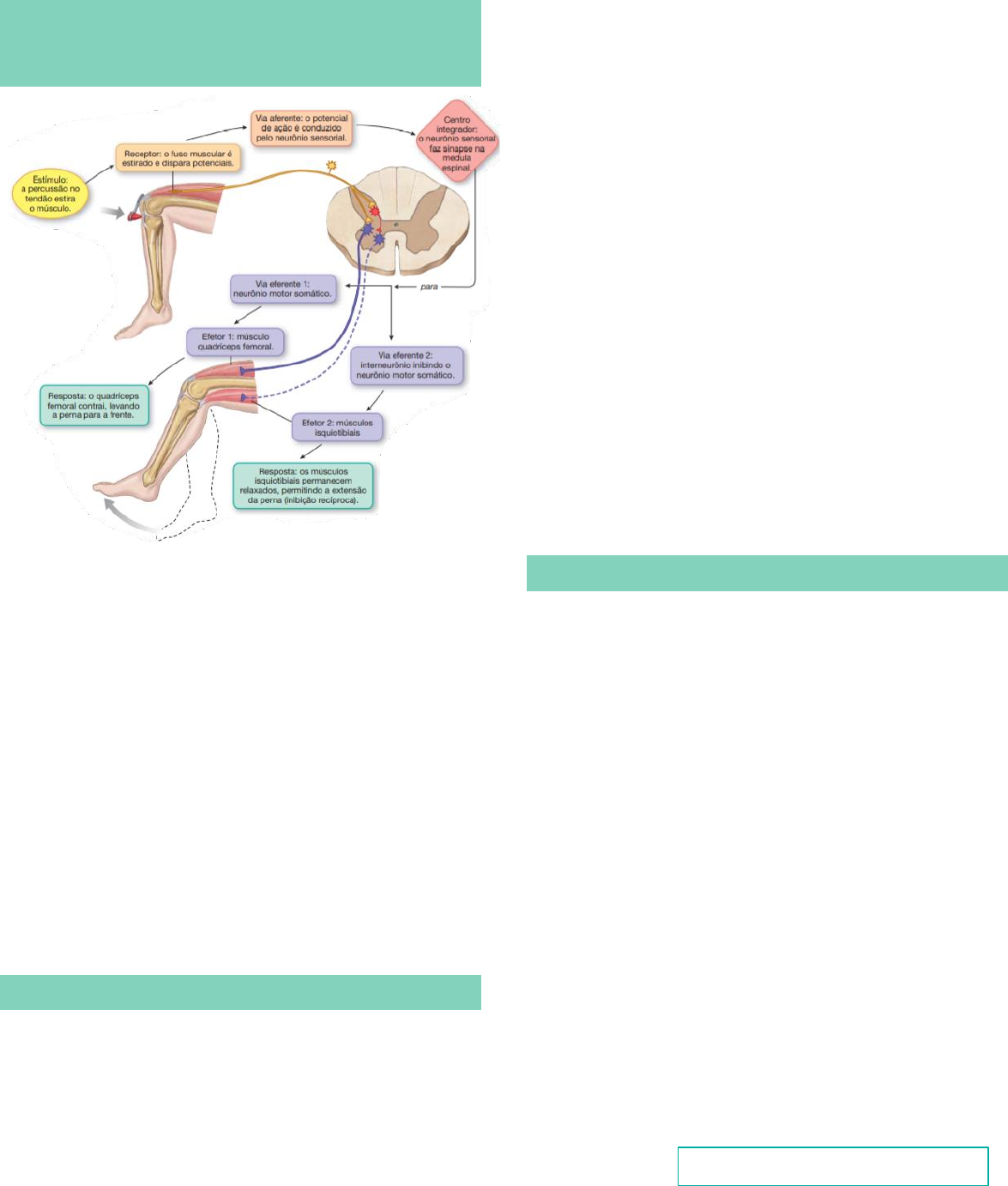 SINAPSE E NEUROTRAMISSORES Um neurônio sozinho não vai servir par a muita coisa, ele tem que ter pelo menos uma outra célula para ter função neural. As sinapses neurais são as unidades funcionais do sistema nervoso. OS REFLEXOS DE ESTIRAMENTO E DE INIBIÇ ÃO RECÍPROCA CONTROLAM O MOVIMENTO EM TORNO DE UMA ARTICULAÇÃO O reflexo mais simples em uma unidade miotática é o reflexo de estiramento monossináptico, que envolve apenas dois neurônios: o neurônio sensorial do fuso muscular e o neurônio motor somático que se dirige para o músculo. O reflexo do tendão patelar é um exemplo de um reflexo de estiramento monossináptico. Ao percutir um pequeno martelo de borracha no tendão patelar abaixo do joelho, o músculo quadríceps, situado na região anterior da coxa, sofre estiramento. Esse estiramento ativa os fusos musculares e envia potenciais de ação através das fibras sensoriais para a medula espinal. Os neurônios sensoriais fazem sinapse diretamente com os neurônios motores que controlam a contração do músculo quadríceps femoral (um reflexo monossináptico). A excitação dos neurônios motores faz as unidades motoras do quadríceps contraírem e a perna se move para a frente. Para que a contração muscular estenda a perna, os músculos flexores antagonistas devem relaxar, um processo denominado inibição recíproca. Na perna, isso requer o relaxamento dos músculos isquiotibiais* dispostos na parte de trás da coxa. O único estímulo da percussão no tendão efetua tanto a contração do músculo quadríceps femoral quanto a inibição recíproca dos isquiotibiais. As fibras sensoriais ramificam-se ao entrar na medula espinal. Algumas das ramificações ativam neurônios motores que inervam o quadríceps femoral, ao passo que as outras ramificações fazem sinapse com interneurônios inibidores. Os interneurônios inibidores suprimem a atividade dos neurônios motores que controlam os isquiotibiais (um reflexo polissináptico). O resultado é o relaxamento dos isquiotibiais, permitindo que a contração do quadríceps femoral prossiga sem oposição. OS NEURÔNIOS COMUNICAM-SE NAS SINAPSES Cada sinapse tem duas partes: O terminal axonal da célula pré-sináptica Membrana da célula pós-sináptica. Em um reflexo neural, a informação move-se da célula pré- sináptica à célula pós sináptica. As células pós sinápticas podem ser neurônios ou não. Na maioria das sinapses entre neurônios, os terminais axonais pré- sinápticos estão próximos dos dendritos ou do corpo celular do neurônio pós-sináptico. As sinapses também podem ocorrer no axônio ou até mesmo no terminal axonal da célula pós-sináptica. As sinapses são classificadas como químicas ou elétricas dependendo do tipo de sinal que passa da célula pré-sináptica à célula pós-sináptica. SINAPSES ELÉTRICAS Transmitem um sinal elétrico, ou corrente, diretamente do citoplasma de uma célula para outra através de poros presentes nas proteínas das junções comunicantes A informação pode fluir em ambas as direções em quase todas as junções comunicantes, porém, em alguns casos, a corrente pode fluir em apenas uma direção (uma sinapse retificadora). As sinapses elétricas existem principalmente em neurônios do SNC. Encontradas também nas células da glia, em músculos cardíaco e liso e em células não excitáveis que usam sinais elétricos, como a célula β-pancreática. A principal vantagem das sinapses elétricas é a condução rápida e bidirecional dos sinais. As junções comunicantes também permitem que as moléculas sinalizadoras químicas se difundam entre células vizinhas. SINAPSES QUÍMICAS Maior parte das sinapses do sistema nervoso é desse tipo. Utilizam moléculas neurócrinas para transportar a informação de uma célula à outra. O sinal elétrico da célula pré sináptica é convertido em um sinal neurócrino que atravessa a fenda sináptica e se liga ao receptor da célula alvo (pós sináptica). Nem sempre toda substância liberada na sinapse é um neurotransmissor OS NEURÔNIOS SECRETAM SINAIS QUÍMICOS ❖ Os neurócrinos podem funcionar como neurotransmissores, neuromoduladores ou neuro-hormônios. Os neurotransmissores e os neuromoduladores atuam como sinais parácrinos, com as suas células-alvo localizadas perto do neurônio que as secreta. Em contrapartida, os neuro- hormônios são secretados no sangue e distribuídos pelo organismo A distinção entre um neurotransmissor e um neuromodulador depende de a qual receptor a molécula química se liga, tendo em vista que várias substâncias neurócrinas conseguem realizar ambos os papéis. - Ex: A glicina não necessariamente vai ser um neurotransmissor em todas as sinapses, ela pode funcionar apenas como um coativador no receptor de glutamato. Em geral, se uma molécula atua principalmente em uma sinapse e gera uma resposta rápida, ela é chamada de neurotransmissor, mesmo ela também atuando como um neuromodulador. Os neuromoduladores agem tanto em áreas sinápticas quanto em áreas não sinápticas e produzem ação mais lenta. Alguns neuromoduladores também agem nas células que os secretam, tornando-os tanto sinais autócrinos quanto sinais parácrinos. Os neuro modulares (oxido nítrico), é sintetizado no neurônio pós sináptico. Neurônio sensitivo tipo pseudounipolares O que define um neurotransmissor? ✓ Ser sintetizado pelo neurônio pré sináptico ✓ Tem que estar armazenado no terminal do neurônio pre sináptico ✓ Tem que ser liberado em uma concentração que gere uma ação no neurônio pós sináptico. ✓ Se essa substância for ingerida de forma exógena tem que gerar a mesma resposta do neurotransmissor ✓ Tem que ter um mecanismo de inativação específicos (recapitado, ou vai ter uma enzima que vai degradar esse neurotransmissor) RECEPTORES NEURÓCRINOS Os receptores neurócrinos encontrados nas sinapses químicas podem ser divididos em duas categorias: 