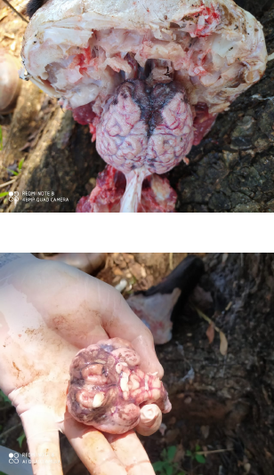 POLIOENCEFALOMALACIA (PEM) EPIDEMIOLOGIA A PEM é uma doença nervosa não infecciosa e não associada a nenhum agente etiológico e caracterizada pel necro- se com amolecimeto da substância cinzen- ta do encéfalo. Pode ser causada por diver- sos fatores, como deficiência de tiamina (vitamina B1), intoxicação por enxofre, into- xicação por sal associado à privação de água e intoxicação por chumbo. A PEM associada à intoxicação or chumbo é mais decorrente em animais su- plementados com alimentos contendo ele- vadas concentrações de enxofre. Na intoxicação por sal associada à privação de água tende a ocorrer quando os animais são privados de sal ou água e tem acesso a esses ingerindo em quantida- de exagerada. A deficiência de tiamina não está ainda bem definida, mas alguns autores as- sociam a mudanças bruscas na alimenta- ção ou ingestão de carcaças. SINAIS CLÍNICOS Dentre os sinais clínicos, os apre- sentados pelos animais foram: opistótono, incoordenação e movimentos de pedala- gem. Em relação à cegueira, sinal clínico característico da doença, não são todos os animais que apresentam esse sinal clínico. NECROPSIA Nos achados da necropsia nota-se a área do lobo frontal necrosado, o que jus- tifica a perda dos movimentos do membro pélvico. No geral, apresenta lesões no córtex cerebral, congestão com tumefação e achatamento das circunvolações, amole- cimento e amarelamento do córtex telence- fálico, focos dde hemoragia no tronco encé- falico, cerebelo e telencéfalo. PROFILAXIA As medidas de prevenção incluem cuidados com a alimentação do rebanho evitando mundanças brucas da mesma, controle na concetração de enxofre no ali- mento e sempre deixar àgua adequada pa- ra o consumo disponível. REFERÊNCIAS * LEMOS, Ricardo. 2006. Polioen- cefalomalacia em bovinos: epidemioo- gia, sinais clínicos e distribuição de le- sões no encéfalo. * LEMOS, Ricardo. 2013. Doenças do sistema nervoso de bovinos o Mato Grosso do Sul: 1082 casos.