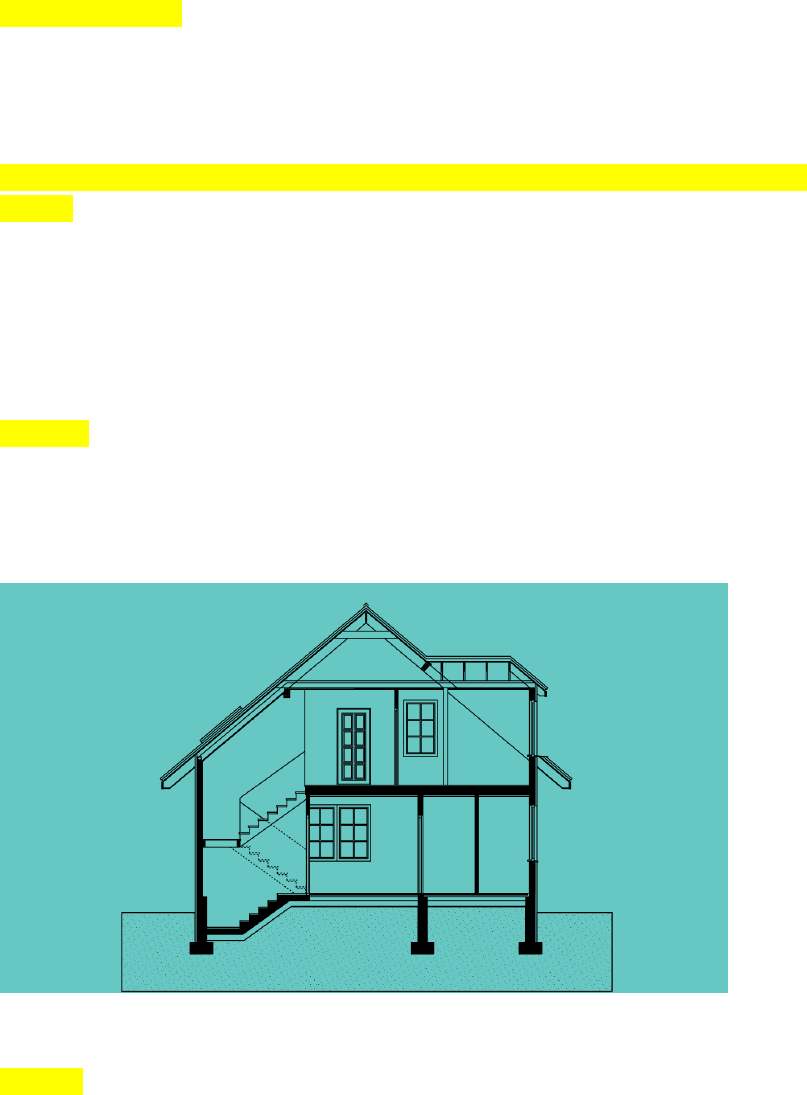 UA 11 Barra de ferramentas do AutoCAD Exercícios: C B E D A 1. A barra de ferramentas Standard reúne comandos gerais de gerenciamento do arquivo. Uma das funções nela contidas é a possibilidade de aplicar as propriedades de um objeto a outro, podendo estas serem relativas a cores, layers, espessura de linhas. O comando da barra Standard que realiza essa ação é: C. Match properties. 2. Os comandos da barra Modify têm como objetivo básico modificar os desenhos em andamento, auxiliando muito o processo de graficação. Um desses comandos é o Scale, que apresenta como função: B. aumentar ou reduzir a dimensão dos objetos, mantendo, porém, a proporção do objeto original. 3. Quando é desenvolvido um projeto arquitetônico, existem informações importantes em relação às dimensões que devem ser aferidas durante o projeto. O comando Distance permite medir distâncias entre dois pontos, além de abrir a possibilidade de verificar outras medidas, como áreas, volumes e raios. Marque, a seguir, a opção que representa o conjunto de ferramentas a que o comando Distance pertence. E. Inquiry. 4. Na imagem, você vê o corte de uma residência. É possível ver no desenho a marcação diferenciada das lajes de concreto da edificação, além da representação de terra referente ao solo abaixo da casa. O comando do grupo de ferramentas Draw utilizado para fazer esse preenchimento é: D. Hatch. 5. As barras de ferramentas são elementos personalizáveis no AutoCAD. Ao acessar o menu Customer user interfaces, ficará disponível uma lista com todos os comandos do sistema, para que possam ser selecionados e agregados à barra de ferramentas. Para que um comando escolhido seja incluído na barra de ferramentas, deve-se: A. arrastar o comando com o mouse e soltar em cima da barra desejada.