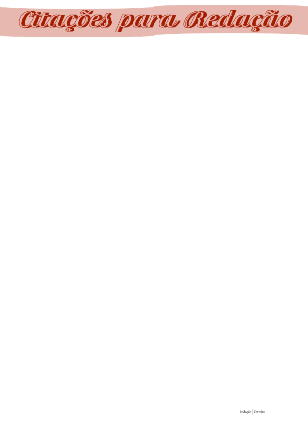 1. “Conforme Aristóteles, a poética deve ser utilizada de modo que, por meio da justiça, o equilíbrio seja alcançado na sociedade.” 2. “De acordo com Durkheim, o fato social é a maneira coletiva de agir e de pensar.” 3. “Segundo o pensamento de Claude Lévi-Strauss, a interpretação adequada do coletivo ocorre por meio do entendimento das forças que estruturam a sociedade, como os eventos históricos e as relações sociais.” 4. “O conceito de modernidade líquida de Zygmunt Bauman explica que, a queda das atitudes éticas pela fluidez dos valores, a fim de atender aos interesses pessoais, aumenta o individualismo.” 5. “Uma analogia com a educação libertadora proposta por Paulo Freire mostra-se possível, uma vez que o pedagogo defendia um ensino capaz de estimular a reflexão e, dessa forma, libertar o indivíduo da situação a qual encontra-se sujeitado – neste caso, a manipulação.” 6. “Partindo desse pressuposto, esse cenário corrobora o termo “ilusão da contemporaneidade” defendido pelo filósofo Sartre, já que os cidadãos acreditam estar escolhendo uma mercadoria diferenciada mas, na verdade, trata-se de uma manipulação que visa ampliar o consumo.” 7. “Esse contexto de [...] das esferas de poder exemplifica a teoria das Instituições Zumbis, do sociólogo Zygmunt Bauman, que as descreve como presentes na sociedade, mas que não cumprem seu papel com eficácia.” 8. Tal conjuntura segregacionista contraria o princípio do “Espaço Público”, da filósofa Hannah Arendt, que defende a total inclusão dos oprimidos na teia social.” 9. “Para o filósofo escocês David Hume, a principal característica que difere o ser humano dos outros animais é o poder de seu pensamento, habilidade que o permite ver aquilo que nunca foi visto e ouvir aquilo que nunca foi ouvido.” 10. “Para entender essa lógica, pode-se mencionar o renomado historiador holandês Johan Huizinga, o qual, no livro “Homo Ludens”, ratifica a constante busca humana pelo prazer lúdico, pois ele promove um proveitoso bem-estar.” 11. “Isso posto, segundo o filósofo inglês Nick Couldry em sua obra “Por que a voz importa?”, a sociedade neoliberal hodierna tende a silenciar os grupos menos favorecidos, privando-os dos meios de comunicação. “ 12. “Segundo o autor Oscar Wilde, o progresso é, senão, a realização das utopias” 13. “De acordo com Karl Marx, as desigualdades são a base da formação das classes sociais. Ao seguir esse raciocínio, observa-se que [...]. 14. “Um dos conceitos filosóficos de Francis Bacon, que declara o comportamento humano como contagioso, se aplica perfeitamente à situação.” 15. “Paulo Freire aborda que a educação escolar, além de ensinar o conhecimento científico, deve assumir a missão de preparar as pessoas para o exercício da cidadania.”