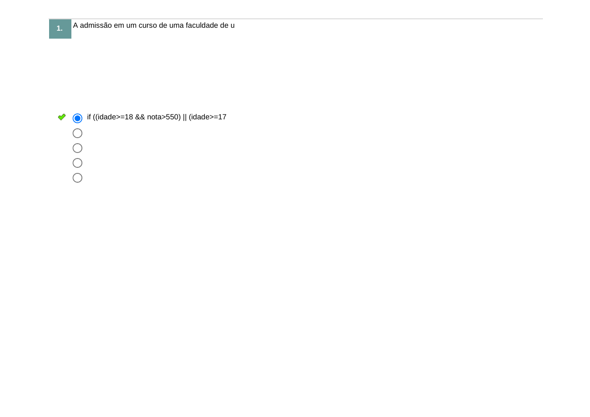 Com base nestas condições, qual o trecho de código de estrutura condicional abaixo seleciona corretamente os estudantes que a faculdade