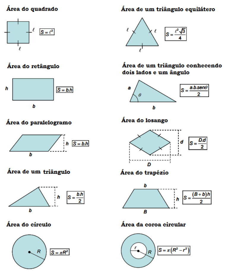 Áreas de figuras geométricas planas Denomina-se área de uma figura plana o espaço ocupado por essa figura. Fórmulas das áreas com suas respectivas figuras; Significados das letras que estão nas fórmulas S=área ou pode ser usado A l=lado b=base h=altura π= letra grega pi que vale aproximadamente 3,14 R=raio maior Sen.α =seno do ângulo D=diagonal maior d=diagonal menor B=base maior b=base menor r=raio menor Exemplos: 1º) Qual é a área de uma região retangular cujas medidas são 24 cm e 12,5 cm? S=b.h S=24.12,5 S=300cm2 2º) Um pedaço de compensado, cuja espessura é desprezível, tem a forma e as dimensões da figura abaixo. Determine a área desse pedaço de compensado? S=b.h S=35.18 S=630cm2 3º) um pedaço de madeira, cuja espessura é desprezível tem a forma e as dimensões da figura a seguir. Qual é a área desse pedaço de madeira? S=b.h 2 S=26.8,5 2 S=110,5cm2 4º) Para uma festa junina foram recortadas 100 bandeirinhas com o formato de um triangulo equilátero de lado 20 cm. Quantos centímetros quadrados de papel foram necessários para obter essas bandeirinhas? S=l2√3 4 S=202√3 4 S=100√3 S=100.1,7 S=170 vezes 100 bandeirinhas S=17000cm2