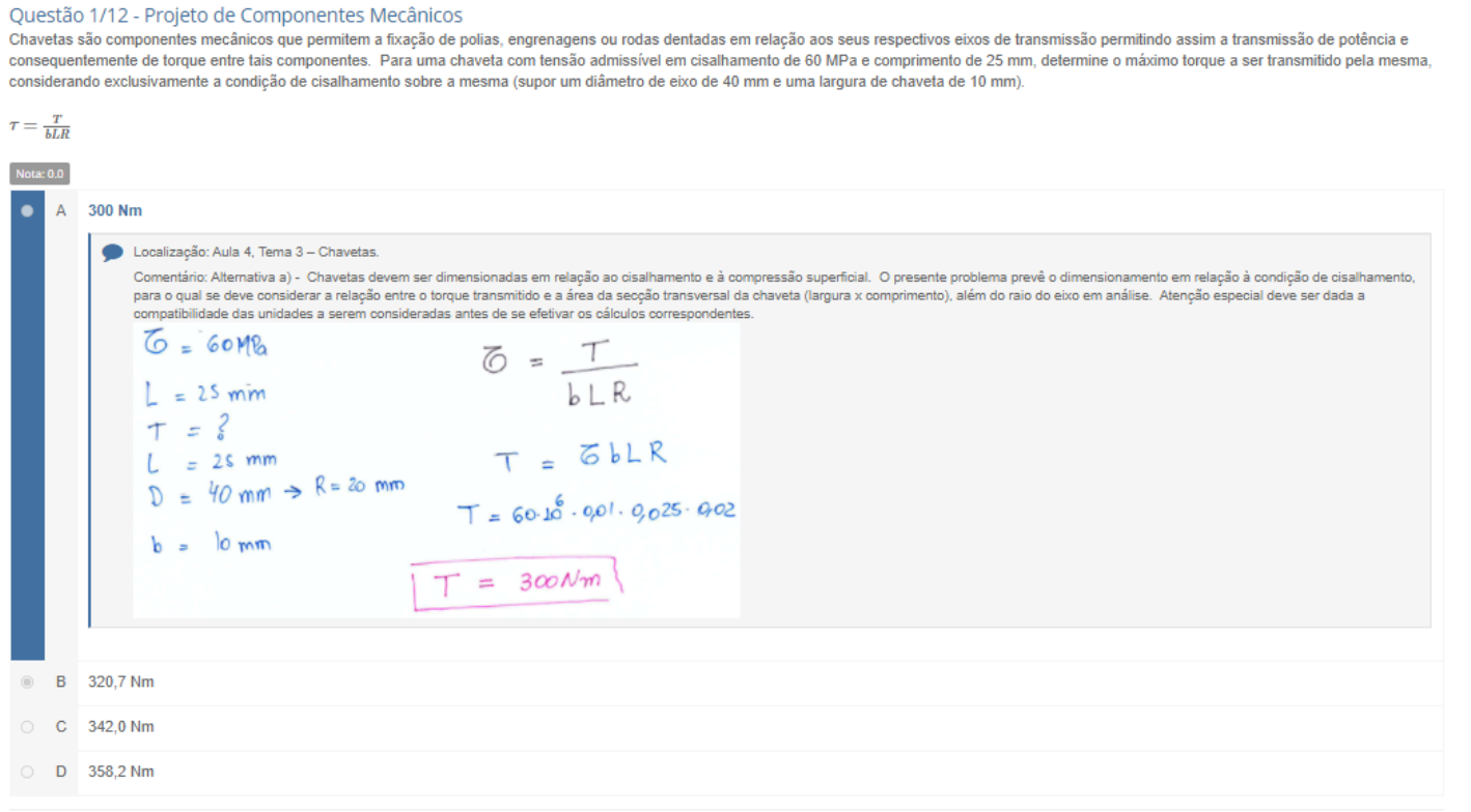 PROVA OBJETIVA 1 – PROJETO DE COMPONENTES MECÂNICOS – NT 60 PROVA OBJETIVA 2 – PROJETO DE COMPONENTES MECÂNICOS – NT 100