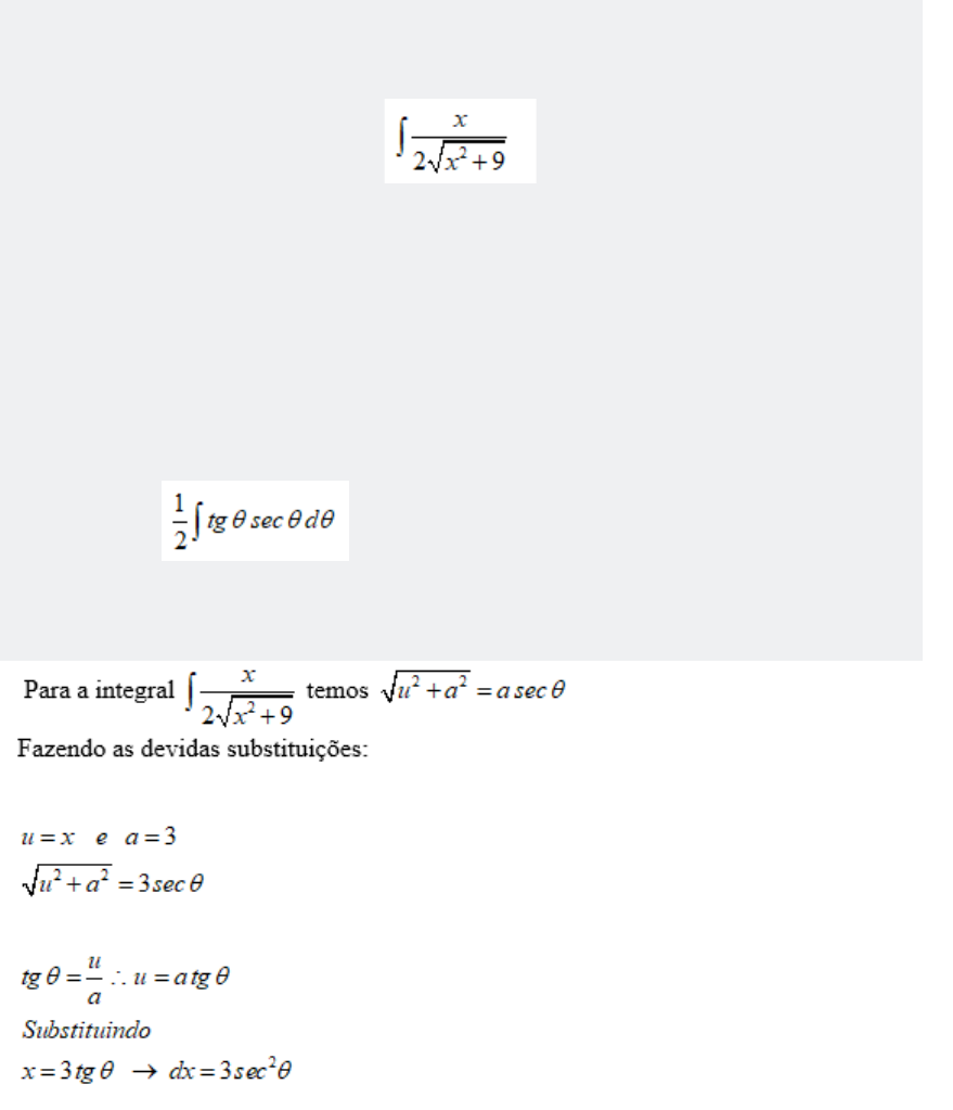 Questão 6 de 10 Considere a integral: Para a resolução se faz necessário fazermos uma substituição trigonométrica adequada. Nessas condições, assinale a alternativa que representa a substituição correta. A - check_circleResposta correta Capítulo 12 – Integração por substituição trigonométrica. image.png 11.58 KB Questão 7 de 10 image.png 13 KB A -image.png 2.2 KB B -image.png 2.18 KB C -image.png 2.41 KB D -image.png 2.54 KBcheck_circleResposta correta Capítulo 12 – Integração por substituição trigonométrica. image.png 9.32 KBimage.png 20.98 KBCapítulo 12 – Integração por substituição trigonométrica. image.png 9.32 KBimage.png 20.98 KBCapítulo 12 – Integração por substituição trigonométrica. image.png 9.32 KBimage.png 20.98 KBCapítulo 12 – Integração por substituição trigonométrica. image.png 9.32 KBimage.png 20.98 KBCapítulo 12 – Integração por substituição trigonométrica. image.png 9.32 KBimage.png 20.98 KBCapítulo 12 – Integração por substituição trigonométrica. image.png 9.32 KBimage.png 20.98 KBCapítulo 12 – Integração por substituição trigonométrica. image.png 9.32 KBimage.png 20.98 KBCapítulo 12 – Integração por substituição trigonométrica. image.png 9.32 KBimage.png 20.98 KBCapítulo 12 – Integração por substituição trigonométrica. image.png 9.32 KBimage.png 20.98 KBCapítulo 12 – Integração por substituição trigonométrica. image.png 9.32 KBimage.png 20.98 KBCapítulo 12 – Integração por substituição trigonométrica. image.png 9.32 KBimage.png 20.98 KBCapítulo 12 – Integração por substituição trigonométrica. image.png 9.32 KBimage.png 20.98 KBCapítulo 12 – Integração por substituição trigonométrica. image.png 9.32 KBimage.png 20.98 KBCapítulo 12 – Integração por substituição trigonométrica. image.png 9.32 KBimage.png 20.98 KBCapítulo 12 – Integração por substituição trigonométrica. image.png 9.32 KBimage.png 20.98 KBCapítulo 12 – Integração por substituição trigonométrica. image.png 9.32 KBimage.png 20.98 KBCapítulo 12 – Integração por substituição trigonométrica. image.png 11.58 KBCapítulo 12 – Integração por substituição trigonométrica. image.png 11.58 KBCapítulo 12 – Integração por substituição trigonométrica. image.png 11.58 KBCapítulo 12 – Integração por substituição trigonométrica. image.png 11.58 KBCapítulo 12 – Integração por substituição trigonométrica. image.png 11.58 KBCapítulo 12 – Integração por substituição trigonométrica. image.png 11.58 KBCapítulo 12 – Integração por substituição trigonométrica. image.png 11.58 KBCapítulo 12 – Integração por substituição trigonométrica. image.png 11.58 KBParte inferior do formulário Capítulo 12 – Integração por substituição trigonométrica. image.png 9.32 KBimage.png 20.98 KB Questão 8 de 10 Quando a integral possui um integrando que não pode ser calculado diretamente, é aplicado o método de integração por frações parciais, utilizando substituição de variável ou ainda por portes. De acordo com os conceitos de integração por frações parciais, avalie as afirmativas: I. No método de integração por frações parciais deve-se decompor o integrando em uma soma de frações parciais e integrá-la membro a membro. II. A decomposição é realizada fatorando o polinômio do numerador. III. Após feita a decomposição, associa-se a cada fator linear ou quadrático irredutível uma ou mais frações parciais. É correto o que se afirma em: A - Apenas a afirmativa III é verdadeira. B - Apenas as afirmativas I e II são verdadeiras. C - Apenas as afirmativas I e III são verdadeiras. check_circleResposta correta Capítulo 13 – Integração por frações parciais I e II A afirmativa I é verdadeira, o método aplicado tem como objetivo fazer com que o integrando seja mais fácil de integrar. A afirmativa II é falsa, pois a decomposição de ser feita no denominador A afirmativa III é verdadeira, pois o método separa a integral em outras integrais facilitando os cálculos. Portanto, apenas as afirmativas I e III são verdadeiras. Questão 9 de 10 A - 0 B - 2/15 C - 36 D - 45,3 E - 7/30 check_circleResposta correta Questão 10 de 10 A - 0 B - 1,5 C - 1 D - -3 E - 2/3check_circleResposta correta Questão 1 de 10 image.png 24.37 KB A - Apenas a afirmativa I é verdadeira B - Apenas a afirmativa II é verdadeira C - Apenas as afirmativas I e II são verdadeiras D - Apenas as afirmativas II e III são verdadeiras E - Apenas as afirmativas I, II e III são verdadeiras check_circleResposta correta Capítulo 12 – Integração por substituição trigonométrica. Questão 2 de 10 image.png 28.77 KB A - W = 0 joules B - W = 30 joule C - W = 40 joule D - W = 50 joule E - W = 60 joulecheck_circleResposta correta Capítulo 14 – Volume de sólidos de e aplicações de integrais na física. Questão 4 de 10 Calcule a integral de ƒ (x, y, z) = sen (x + y + z), sabendo que a função é limitada por 0 ≤ x ≤ π , 0 ≤ y ≤ π e 0 ≤ z ≤ π. A - 0 B - 1 C - 5 D - 6 E - -8 check_circleResposta corr Questão 6 de 10 A integração por substituição trigonométrica é uma técnica de integração muito utilizada quando ocorre integrando algébricos. Está baseada no fato que identidades trigonométricas muitas vezes possibilitam a substituição de uma função algébrica por uma função trigonométrica, ficando assim facilmente de ser integrada. Considere a integral image.png 1.16 KB Assinale a alternativa que representa corretamente a solução da integral. A -image.png 1.65 KBcheck_circleResposta corre Capítulo 12 – Integração por substituição trigonométrica. image.png 21.36 KB Questão 7 de 10 A - 0 B - 2/15 C - 36 D - 45,3 E - 7/30 check_circleResposta correta Questão 8 de 10 A - - 13/20 B - - 3/34 C - 1/10 D - 61/90 check_circleResposta correta uestão 9 de 10 Sabe-se que quando a integral é um quoci