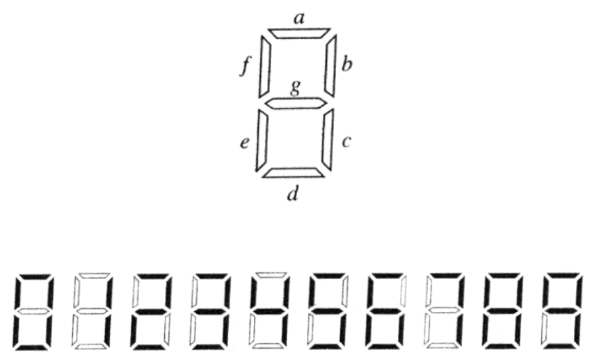 PUCRS – Faculdade de Engenharia Elétrica – Departamento de Engenharia Elétrica Eletrônica Digital Cap. III por F.C.C. De Castro 1 Capítulo III Circuitos Digitais Combinacionais 1 Introdução Vimos no Capítulo II que uma desejada função lógica pode ser implementada mediante a combinação de portas lógicas. Esta combinação de portas lógicas objetivando atender um mapeamento ( )!,, BAfY = é denominada de Circuito Digital. Neste Capítulo estudaremos circuitos digitais que visam solucionar problemas específicos e comuns em Eletrônica Digital. 2 Decodificadores para Display de 7 Segmentos •••• Um display de 7 segmentos mostra ao usuário de um sistema digital um algarismo decimal de 0 a 9, conforme mostram as Figuras 1, 2 e 3. Figura 1: Formato de um display de 7 segmentos mostrando a localização dos segmentos a, b, c, d, e, f, g. Figura 2: Algarismos decimais possíveis de serem formados mediante o acionamento combinado dos segmentos a, b, c, d, e, f, g. PUCRS – Faculdade de Engenharia Elétrica – Departamento de Engenharia Elétrica Eletrônica Digital Cap. III por F.C.C. De Castro 2 Figura 3: Acionamento dos segmentos a, b, c, d, e, f, g. Cada segmento é um LED (Light Emitter Diode), que emite luz quando o diodo é percorrido por uma corrente direta ( mA 1 a mA 50 ). (a) display de anodo comum. (b) display de catodo comum. •••• Um display de 7 segmentos alternativo é o denominado LCD (Liquid Crystal Display), largamente utilizado em relógios digitais de pulso. A Figura 4 mostra a técnica de acionamento dos segmentos a, b, c, d, e, f, g de um LCD. PUCRS – Faculdade de Engenharia Elétrica – Departamento de Engenharia Elétrica Eletrônica Digital Cap. III por F.C.C. De Castro 3 Figura 4: Acionamento dos segmentos a, b, c, d, e, f, g de um LCD. Um segmento é acionado por uma onda quadrada com freqüência entre 30 a 60Hz aplicada entre o segmento e uma superfície comum a todos os segmentos denominada backplane. Quando a onda quadrada (signal source) é aplicada ao segmento através do controle exercido pela porta XOR, o segmento assim ativado deixa de refletir a luz incidente, alterando sua tonalidade para um cinza escuro. •••• A Tabela 1 mostra os algarismos decimais resultantes do acionamento combinado dos segmentos a, b, c, d, e, f, g: PUCRS – Faculdade de Engenharia Elétrica – Departamento de Engenharia Elétrica Eletrônica Digital Cap. III por F.C.C. De Castro 4 Tabela 1: Algarismos decimais resultantes do acionamento combinado dos segmentos a, b, c, d, e, f, g. Ver Figura 1. •••• Um Decodificador para Display de 7 Segmentos é um circuito digital formado por portas lógicas que, ao receber uma palavra binária de 4 bits representativa do algarismo decimal a ser mostrado, aciona os segmentos correspondente no display, conforme mostram a Figuras 5 e a Tabela 2. Figura 5: Interligação de um Decodificador para Display de 7 Segmentos com o Display. PUCRS – Faculdade de Engenharia Elétrica – Departamento de Engenharia Elétrica Eletrônica Digital Cap. III por F.C.C. De Castro 5 Tabela 2: Tabela Verdade de um Decodificador para Display de 7 Segmentos. ⇒⇒⇒⇒ Observe que a coluna 1 da Tabela 2 representa o número decimal correspondente à palavra binária respectiva na coluna 2 da tabela através da relação: 0123 2⋅+2⋅+2⋅+2⋅= ABCDmalNúmeroDeci •••• Um Decodificador para Display de 7 Segmentos é um Circuito Integrado que contém as combinações de portas lógicas necessárias e otimizadas para a implementação do conjunto de Expressões Booleanas definidas pela Tabela 2. •••• Por exemplo, da Tabela 2 verificamos que a Expressão Booleana para o segmento a é: AB CD A B CD C B ADA C B D AB C D B AC DA B C DA B C Da ++++ ++++= •••• Cujo Mapa K é: PUCRS – Faculdade de Engenharia Elétrica – Departamento de Engenharia Elétrica Eletrônica Digital Cap. III por F.C.C. De Castro 6 Figura 6: Mapa K para a lógica de acionamento do segmento a. A Expressão Booleana minimizada resulta em ACACBDa +++= . •••• E cujo circuito lógico resultante é: Figura 7: Circuito lógico para acionamento do segmento a. A Expressão Booleana implementada é ACACBDa +++= . PUCRS – Faculdade de Engenharia Elétrica – Departamento de Engenharia Elétrica Eletrônica Digital Cap. III por F.C.C. De Castro 7 •••• Exercício Proposto: Determine o circuito lógico completo para o acionamento dos segmentos a, b, c, d, e, f, g. Caso, após a minimização individual das expressões booleanas para cada segmento, as funções lógicas resultantes para o acionamento de dois ou mais segmentos compartilharem termos comuns, faça a minimização adicional aproveitando o compartilhamento entre os termos. Figura 8: Circuitos Integrados TTL comercialmente disponíveis para a implementação da função de Decodificador para Display de 7 Segmentos. (a) 7446 – decodificador para display de anodo comum. (b) 7448 – decodificador para display de catodo comum. 3 Decodificadores BCD-para-Decimal •••• BCD é a abreviação para Decimal Codificado em Binário (Binary Coded Decimal). •••• O código BCD expressa cada dígito de um número decimal por uma palavra binária de 4 bits (Nibble) no formato 0123 bbbb através da relação: 0 0 1 1 2 2 3 3 2⋅+2⋅+2⋅+2⋅= bbbbmalNúmeroDeci . A Tabela 3 mostra o resultado desta relação. PUCRS – Faculdade de Engenharia Elétrica – Departamento de Engenharia Elétrica Eletrônica Digital Cap. III por F.C.C. De Castro 8 Nibble 3b 2b 1b 0b Número Decimal 0 0 0 0 0 0 0 0 1 1 0 0 1 0 2 0 0 1 1 3 0 1 0 0 4 0 1 0 1 5 0 1 1 0 6 0 1 1 1 7 1 0 0 0 8 1 0 0 1 9 Tabela 3: Tabela para conversão de um Nibble em um Número Decimal. A conversão obedece a relação 00112233 2⋅+2⋅+2⋅+2⋅= bbbbmalNúmeroDeci . •••• As entradas DCBA de um Decodificador para Display de 7 Segmentos (ver Seção 1) constituem um exemplo de informaç