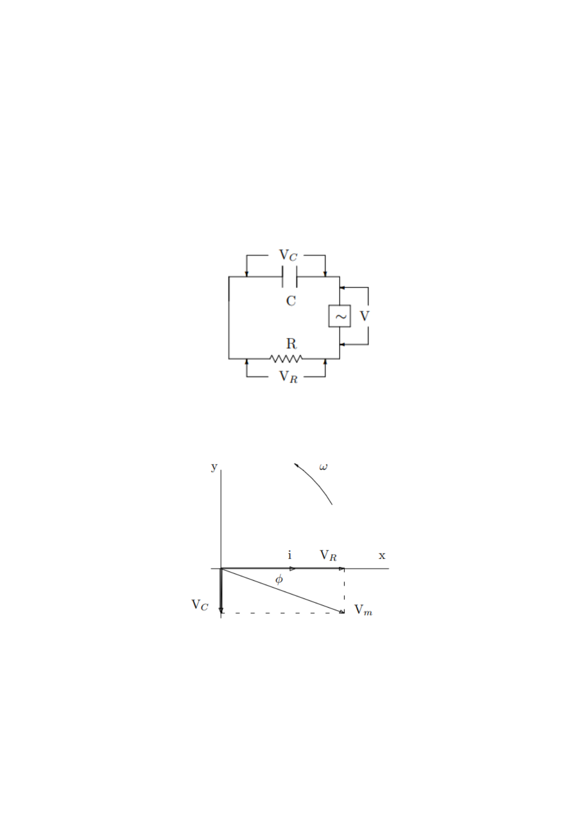 Nome: RA: Curso/Turma: Experimento I – Circuito RC em série, em corrente alternada. I - Introdução teórica Figura 1. Circuito RC Figura 2. Fasor do circuito RC. Ligando-se um circuito RC a uma fonte de f.e.m. senoidal [7, 18], conforme Fig. (1), o capacitor irá carregar-se e descarregar-se periodicamente. A tensão no resistor estará em fase com a corrente como se pode observar pela Fig. (2), enquanto que a tensão no capacitor estará atrasada de 90°. Representando na forma vetorial, conforme o gráfico da Fig. (2), temos: (1) mas e Logo Esta é uma equação diferencial de 1ª ordem, com segundo membro variável. Emprega-se o método de Lagrange, ou método de variação das constantes para resolvê-la. A corrente resultante terá a forma sendo a amplitude da corrente dada pela relação: onde, a impedância Z do circuito é: e Quando a frequência da fonte é tal que ωc = 1/RC a reatância do capacitor é igual resistência (XC = R) e VR = VC. Em que Xc é denominado de reatância e pode ser determinada pela equação (8); A esta frequência é dado o nome de frequência de corte, Pela análise da Eq.(6) verifica-se que, para frequências muito maiores que a frequência de corte a corrente no circuito tende para um valor e a tensão está quase toda aplicada sobre o resistor, conforme a Fig.(3). Para frequências muito menores que a frequência de corte, a corrente no circuito tende para zero e a tensão está quase toda aplicada sobre o capacitor, conforme a Fig.(3). (2) (3) (4) (5) (6) (7) (8) (9) (10) Figura 3: Variação da tensão no resistor e no capacitor pela frequência. II - Parte experimental II.1 – Objetivos • Verificar o comportamento de um circuito RC série. • Determinar experimentalmente a capacitância de um capacitor. II.2 - Material utilizado Gerador de ondas eletromagnéticas com frequencímetro, resistência, capacitor, voltímetro ou osciloscópio[11], placa de bornes e fios. II.3 – Procedimento 1- Anote os valores de R =___________________________, C=____________________________ ; 2- Calcule a frequência de corte (fC): fC calc = ________________________________; 3- Monte o circuito abaixo: 4- Ajuste o gerador de função para Vfonte = ______ V (para cada frequência é necessário ajustar a Vfonte) e selecione a forma de onda senoidal; 5- Ajuste o osciloscópio para medir a tensão pico a pico nos canais 1 e 2, a frequência do canal 2 e a diferença de fase (Φ) do canal 2 com relação ao canal 1. Nesta medida o resistor deve estar no canal 1; 6- Encontre a frequência de corte utilizando o osciloscópio, baseie-se nos valores de VC (tensão pico a pico aplicada no capacitor) e VR (tensão pico a pico aplicado no resistor) ou a Φ: fC exp (frequência de corte experimental) = ___________________________; 7- Varie a frequência, conforme mostra a tabela, e complete a tabela com os valores medidos. As medidas de VR e VC devem ser feitas no canal 1, então posicione o capacitor ou o resistor no canal 1 quando necessário; Frequênci a (kHz) Vfonte (V) VR (V) VC (V) (graus) (s) 10 20 40 60 80 120 140 150 160 170 180 200 300 400 500 600 700 fcexp III. Discussão dos dados obtidos: 1) Construa em um mesmo gráfico de VT, VR e VC em função da frequência, obtenha fC por meio deste gráfico e determine o desvio percentual com relação ao valor de fC calculado. A análise deste gráfico deve abranger o comportamento de cada um deles e sua correlação com a frequência para valores f << fC, f >> fC e f = fC. Discuta sobre as principais fontes de erro com relação à medida VR e VC e sobre o que estas podem acarretar sobre o valor de fC obtida pelo gráfico. 2) Construa XC × f e XC × 1/f. 3) Através do gráfico Xc × 1/f, determine o valor da capacitância do capacitor. 4) Compare o valor nominal dessa capacitância com o calculado no item anterior, e obtenha o desvio percentual. 5) Construa o gráfico de Φ em função da frequência e determine por meio deste gráfico o valor de fC e determine o desvio percentual com relação ao valor de fCcalc. A análise deste gráfico deve abranger o comportamento e sua correlação com a frequência para valores f << fC, f >> fC e f = fC. Discuta sobre as principais fontes de erro com relação à medida de Φ e sobre o que estas podem acarretar sobre o valor de fC obtida pelo gráfico Φ em função da frequência.