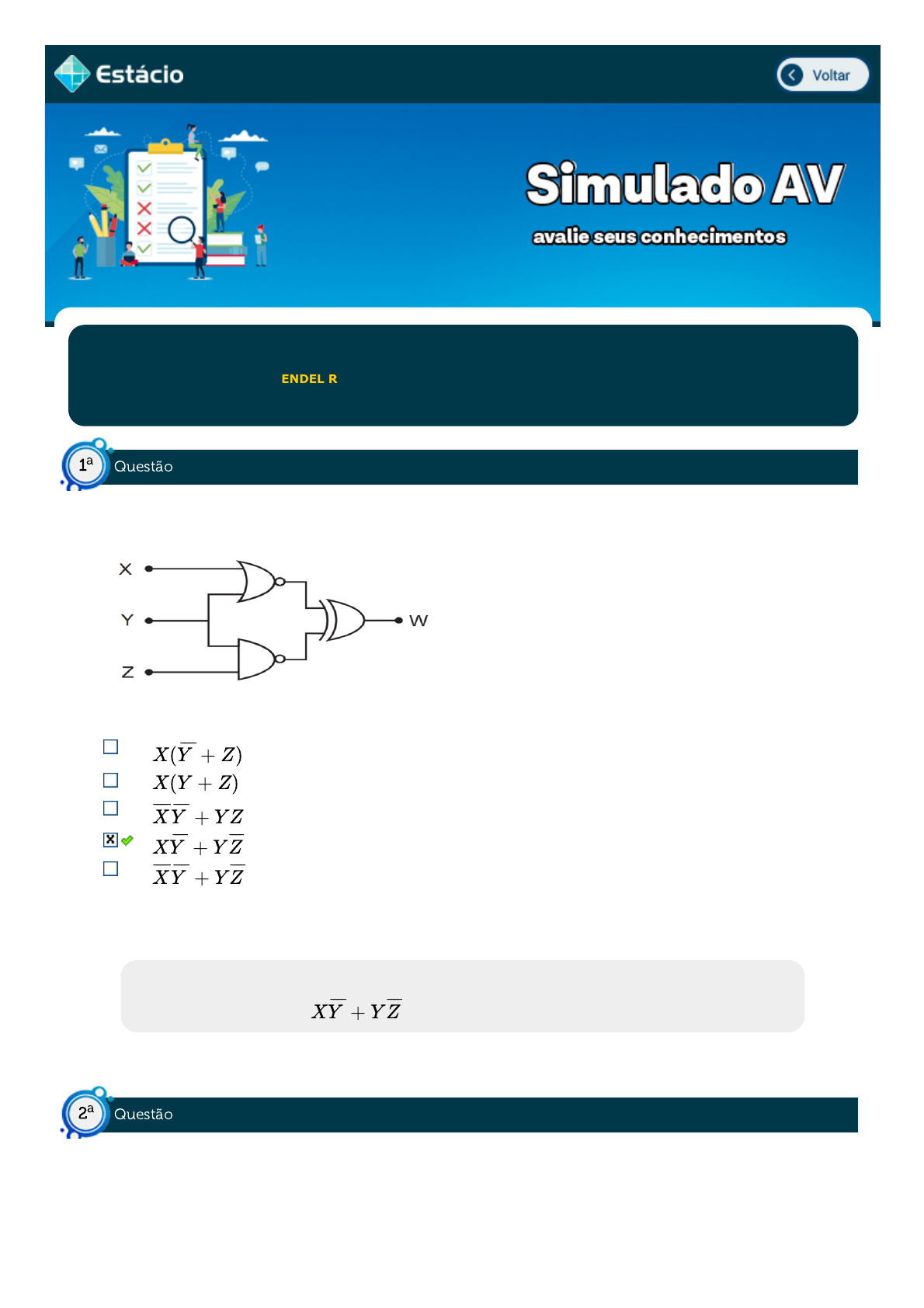 A expressão booleana do sinal W em função de X, Y e Z é: