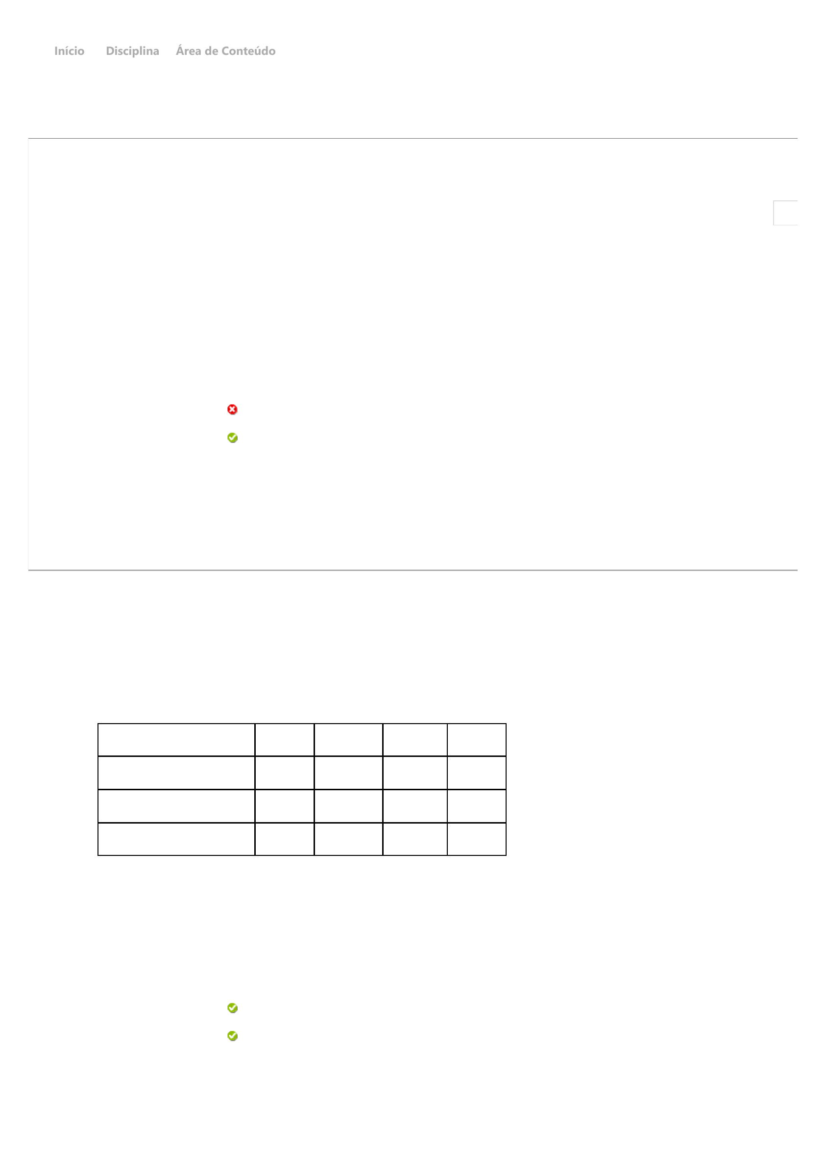 19/05/2021 POS1326 ESTUDOS DE VIABILIDADE TÉCNICA PG0618211 - 202112.ead-15669.01 https://anhembi.blackboard.com/webapps/late-course_content_soap-BBLEARN/Controller?ACTION=OPEN_TEST_PLAYER&COURSE_ID=_666461_1&PARENT_ID=_16304655_1&CONTENT_ID=_16304667_1 1/2 Pergunta 3 Resposta Selecionada: Resposta Correta: Comentário da resposta: Os gestores devem elaborar o planejamento e participar dos processos de monitoramento e controle da alocação de recursos orientados ao longo prazo. Tais atividades são vitais para a sobrevivência e crescimento de uma empresa. A partir do exposto, analise as asserções a seguir e a relação proposta entre elas. I. O gestor financeiro deve garantir a implementação dos planos estratégicos, contribuindo para transformar a estratégia em ações que maximizem os resultados da empresa. Pois: II. A área contábil deve liderar os processos ao compreender o modelo do negócio e refleti-lo no planejamento, desdobrando-o na elaboração e avaliação da viabilidade de projetos. A seguir, assinale a alternativa correta. As asserções I e II são proposições verdadeiras, e a II é uma justi�cativa correta da I. A asserção I é uma proposição verdadeira, e a II é uma proposição falsa. Sua resposta está incorreta. A alternativa está incorreta, porque a área �nanceira deve participar das decisões e auxiliar a converter as metas de�nidas no planejamento estratégico em ações orientadas à aplicação de recursos como meio de gerar valor ao negócio. Dessa forma, a asserção I é uma proposição verdadeira, pois o gestor �nanceiro deve garantir a implementação dos planos estratégicos, contribuindo para transformar a estratégia em ações que maximizem os resultados da empresa. No entanto, a asserção II é uma proposição falsa, porque a área contábil não lidera os processos de implantação do plano estratégico, re�etindo o modelo do negócio e desdobrando-o na elaboração e avaliação da viabilidade de projetos. Pergunta 4 Resposta Selecionada: Resposta Correta: Comentário da resposta: Uma vez identificada a necessidade de elaboração de um projeto, definidas as alternativas de investimento mutuamente excludentes e obtidas as respectivas estimativas de investimentos, receitas, custos e despesas de cada alternativa de investimento, o analista deve calcular certos indicadores que permitam a seleção da alternativa mais rentável. A tabela, a seguir, apresenta o Valor Presente Líquido (VPL); dados: taxa mínima de retorno exigida de 15% a. a., Taxa Interna de Retorno (TIR) e período de payback simples para os projetos A, B, C e D. Tabela - VPL, TIR e período de payback relacionados às alternativas de investimento A, B, C e D Indicador Projeto A Projeto B Projeto C Projeto D Valor Presente Líquido (VPL) $ 100 $ 90 $ 130 $ 120 Taxa Interna de Retorno (TIR) 25,00% 20,00% 18,00% 16,00% Payback Simples 2,5 anos 2,0 anos 3,1 anos 1,5 anos Fonte: Elaborada pelo autor. Considerando as informações e os dados apresentados, analise as afirmativas a seguir. I. Pelo critério do payback , os projetos são atrativos na seguinte ordem: C, A, B e D. II. Caso houvesse apenas um projeto, de acordo com a TIR, o projeto D seria viável. III. Pelo critério do VPL, os projetos são atrativos na seguinte ordem: C, D, A e B. IV. Pelo critério da TIR, os projetos são atrativos na seguinte ordem: D, C, B e A. Está correto o que se afirma em: II e III, apenas. II e III, apenas. Resposta correta. A alternativa está correta pelos motivos elucidados na sequência. ● Pelo critério de período de payback, os projetos são atrativos quando classi�cados do menor para o maior período. Por essa razão, para esse critério, os projetos são viáveis na seguinte ordem: D, B, A e C. ● Tomando a TIR como critério, caso houvesse apenas o projeto D, o projeto D seria viável, pois TIRD = 16% < Taxa Mínima exigida pelo investidor = 15%. 0 em 1 pontos 1 em 1 pontos Início Disciplina Área de Conteúdo Voltar https://anhembi.blackboard.com/ https://anhembi.blackboard.com/webapps/late-course_engine_soap-BBLEARN/Controller?COURSE_ID=_666461_1 19/05/2021 POS1326 ESTUDOS DE VIABILIDADE TÉCNICA PG0618211 - 202112.ead-15669.01 https://anhembi.blackboard.com/webapps/late-course_content_soap-BBLEARN/Controller?ACTION=OPEN_TEST_PLAYER&COURSE_ID=_666461_1&PARENT_ID=_16304655_1&CONTENT_ID=_16304667_1 2/2 ● Pelo critério do VPL, os projetos são atrativos quando classi�cados do maior para o menor VPL. Por essa razão, para esse critério os projetos são iá eis na seg inte ordem: C D A e B