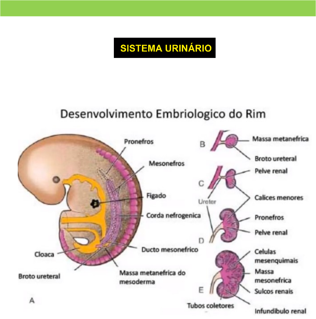 Transcrição de GabrielaEHF – MAFRA – 17.11- SISTEMA URINÁRIO A anatomia do sistema urinário é simples. O importante no sistema urinário é compreensão da sua fisiologia, não estou dizendo que anatomia não seja importante, é importante saber a localização dos rins, as relações anatômicas etc O sistema urinário se origina a partir da 4ª semana de vida intrauterina a partir do mesoderma intermédio que forma 3 polos celulares: um mais cefálico, um mais caudal e outro numa posição média. O mais cefálico é o pronefro. Esse pronefro é extinto rapidamente, ele forma pouquíssimas células secretoras e desaparece rapidamente. O mesonefro persiste e ainda consegue formar alguns glomérulos. Os glomerulos são tufos de capilares sanguíneos que participam da filtração sanguínea, vai subsistir como algumas estruturas do sistema reprodutor masculino. Já metanefro, a partir da quinta semana de vida intra-uterina, começa a formar glomérulos, as estruturas periféricas aos glomérulos, os néfrons e esses vão persistir, participar do sistema urinário, da formação do rim diretamente. Então são três polos: pronefro, mesonefro e metanefro. Deles todos somente o metanefreto vai originar o sistema urinário. Estão desenvolvendo nesse momento urogenital também. O sistema urinário tem como função a filtragem sanguínea, mas tem envolvimento também em estimulações. Por exemplo, estimula a: produção de eritropoietina, eritrócitos, formação da vitamina D, cacitriol, então não tem apenas a função de filtragem. Nós temos atividades orgânicas, a ingesta de alimentos (carboidrato, proteína, lipídio), água, medicações (produtos xenobióticos = compostos químicos estranhos ao organismo humano) e tudo isso sofrerá decomposição. Aquilo que não for utilizado ou que for prejudicial ao nosso sistema será excretado através de uma via sólida - não é uma via sólida pura, quando falarmos de sistema digestório veremos isso - e uma via líquida (urina) Estruturas do sistema urinário: dois rins (sistema formador da urina), dois ureteres (condutores), uma bexiga (armazenadora) e uma uretra (via de excreção). Nós estamos vendo aqui uma técnica anatômica que é uma injeção de acrílico colorido para indicar árvore vascular do rim, O rim é pequeno, varia de tamanho de indivíduo para indivíduo. Tem literatura que diz são nove centímetros, mas a anatomia é tão variável... O que mais existe na anatomia é variação e é por isso que eu digo sempre que anatomia estatística. O que é predominante? Mede entre 9cm e 10cm. A variação é tanta que tem indivíduo que muitas vezes nasce, vive e um dia vai a um profissional médico que percebe que os rins dele estavam fora do lugar, estavam na pelve, é o famoso rim pélvico - porque no processo de decência das gônadas, o rim pode acompanhar, porque durante a formação das gônadas o rim está se formando paralelamente através de um tubo chamado paramesonefrico. Então os rins têm capacidade de filtrar o sangue. Se o coração bombeia 5 litros ele vai filtrar por minuto 1200 ml. O rim tem unidades morfofuncionais chamadas glomérulos - em torno de um milhão e pouco em cada rim - e são elas que estão filtrando. Então as funções do sistema urinário são essas aí: · formação da urina através da filtração sanguínea; · se ele forma tem que conduzir para o meio externo; · como não pode lançar a urina ao meio externo a todo momento - não é uma sudorese - então ele tem que armazenar na bexiga; · por fim, através de reflexos - que vocês verão com o professor Márcio - há a eliminação da urina; · tem a função também de regular a composição iônica do sangue. Por exemplo, ele absorve sempre cloreto potássio e outros íons como o bicarbonato que é muito importante na manutenção do PH sanguíneo, íons de hidrogênio etc · a regulação do volume sanguíneo através da retenção e eliminação da água · e excreção dos resíduos, substâncias estranhas como antibiótico por exemplo. É muito comum a pessoa fazer uso de medicação como penicilina e durante a micção perceber um odor clássico da penicilina sendo eliminado. Estamos vendo aqui a manutenção do meio interno: · Regulação de água e íons inorgânicos: sódio, cloreto, hidrogênio, bicarbonato, cálcio, magnésio etc · Manutenção do equilíbrio hidrossalino da pressão arterial, reabsorção de sal · Manutenção do equilíbrio ácido-básico (PH sanguíneo). Observe que o hidrogênio está sendo regulado e o bicarbonato também, aumentando ou diminuindo a acidez · Secreção de hormônios · calcitriol (vitamina D). Tem relação da formação da vitamina D, apesar da vitamina D necessitar da incidência de ultra violeta para conversão desse calcitriol em colecalciferol. · Produção de renina que é uma enzima que será convertida em angiotensinas. Somente ali é que se produz renina? Não, há outras células que produzem reninas também. · eritropoetina na indução da formação das células sanguíneas · Excreção de catabólitos e xenobióticos que são as drogas · E também tem função de, em jejum prolongado, participar da gliconeogênese que nós não podemos ficar sem essa substância. É necessária energeticamente. Temos aqui o ciclo renina-angiotensina-aldosterona. (Não entendi como essa listagem pode ser um ciclo, mas foi dado assim) · Quando ocorre alguma alteração na pressão sanguínea, células renais captam essa queda ou aumento da pressão e aí pode estimular a liberação ou não de renina (enzima). No fígado essa renina será convertida em angiotensina 1. Quando passa por exemplo no pulmão, existe uma enzima conversora de angiotensina 1 em angiotensina 2 que é a parte ativa que vai ter ação na musculatura lisa permitindo a vaso constrição. Então a angiotensina é fundamental na regulação da pressão arterial, pois age como potente vasoconstrictor e