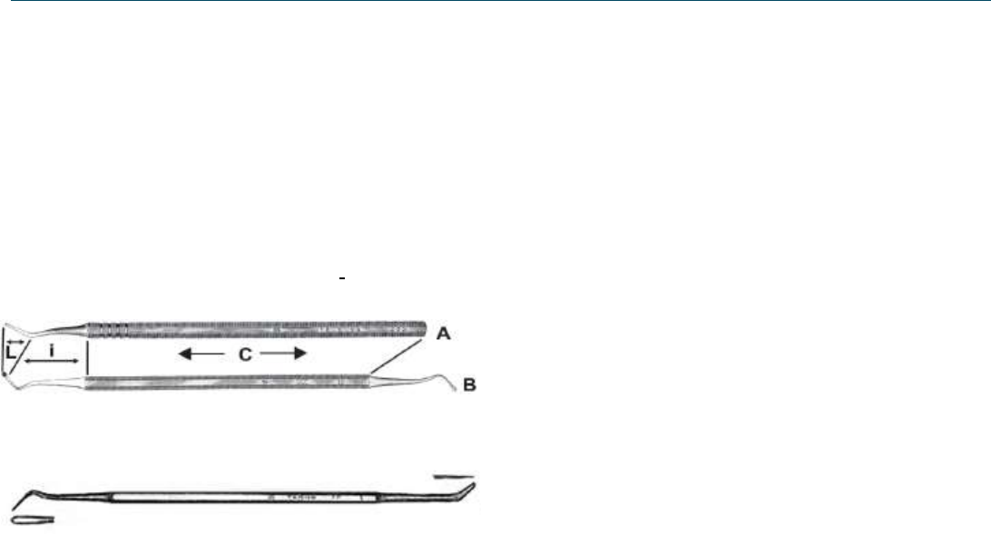 INSTRUMENTOS OPERATORIOS A estrutura dentária, em especial o esmalte, é um elemento de grande dureza, o que implica a necessidade de instrumentos suficientemente resistentes para cortar ou desgastar com eficiência o esmalte ou dentina. Os instrumentos operatórios para o preparo de cavidades podem ser agrupados nas seguintes categorias: • Instrumentos cortantes manuais • Instrumentos rotatórios • Laser • Sistemas ultrassônicos. As duas últimas categorias são instrumentos alternativos aos rotatórios, com grande enfoque para abordagens de lesões cariosas e não cariosas, permitindo uma configuração cavitária especialmente adequada aos sistemas restauradores adesivos. INSTRUMENTOS CORTANTES MANUAIS São instrumentos empregados para cortar, clivar e planificar a estrutura dentária, ou complementar a ação dos instrumentos rotatórios, durante o preparo das cavidades. Podem ser simples (Figura 3.1A) ou duplos (Figura 3.1B). Em geral, cavidades acabadas com instrumentos cortantes manuais demonstram menor infiltração marginal se comparadas com as realizadas com instrumentos rotatórios devido à melhor lisura de superfície e adaptação do material restaurador às paredes da cavidade. Os instrumentos cortantes manuais são constituídos por três partes: cabo, intermediário e lâmina ou ponta ativa A maioria dos instrumentos apresenta um cabo octavado e serrilhado, de modo a evitar deslizamentos quando em função.5 Entretanto, instrumentos de cabo circular oco são mais leves e de melhor empunhadura. Os instrumentos auxiliares, de inserção e de acabamento, não apresentam fórmula, apenas um número de identificação, como por exemplo a espátula de inserção no 1 (Figura 3.2). Figura 3.1 Instrumentos simples (A) e duplos (B), constituídos por cabo (c), intermediário (i) e lâmina ou ponta ativa (L). Figura 3.2 Exemplo de instrumento duplo, que não apresenta fórmula, e sim o número de série Tipos de instrumentos cortantes manuais Os principais tipos, ou mais usados, de acordo com a classe (forma de ponta ativa) e a ordem (finalidade) são: • Cinzéis: instrumentos usados principalmente para planificar e clivar o esmalte. Podem ter diferentes formas e angulações e são denominados: Cinzéis retos: têm o intermediário e a lâmina retos e apresentam bisel em apenas um dos lados da lâmina (Figura 3.3A) Cinzéis monoangulados: têm um ângulo intermediário. Podem ser usados para alisar as paredes de esmalte e dentina Cinzéis biangulados: têm duas angulações no intermediário. Podem ser usados também para planificação das paredes cavitárias em dentes superiores (Figura 3.3B) Cinzéis de Wedelstaedt: têm o intermediário e a lâmina ligeiramente curvos. São os mais versáteis dos instrumentos manuais de corte, servindo para diferentes propósitos (Figura 3.3C) https://jigsaw.vitalsource.com/books/9788527731102/epub/OEBPS/Text/chapter03.html#fig3-1 https://jigsaw.vitalsource.com/books/9788527731102/epub/OEBPS/Text/chapter03.html#fig3-1 https://jigsaw.vitalsource.com/books/9788527731102/epub/OEBPS/Text/chapter03.html#ref5 https://jigsaw.vitalsource.com/books/9788527731102/epub/OEBPS/Text/chapter03.html#fig3-2 https://jigsaw.vitalsource.com/books/9788527731102/epub/OEBPS/Text/chapter03.html#fig3-3 https://jigsaw.vitalsource.com/books/9788527731102/epub/OEBPS/Text/chapter03.html#fig3-3 https://jigsaw.vitalsource.com/books/9788527731102/epub/OEBPS/Text/chapter03.html#fig3-3 https://jigsaw.vitalsource.com/books/9788527731102/epub/OEBPS/Text/chapter03.html#fig3-3 • Enxadas: são muito semelhantes aos cinzéis, diferenciando-se por apresentar o ângulo da lâmina próximo a 25° centesimais. Quando a angulação da lâmina for menor do que 12,5° centesimais, o instrumento pode ser considerado cinzel. As enxadas são usadas para alisar as paredes cavitárias, principalmente as de classe V, em dentes anteriores. Seu uso é principalmente indicado para o acabamento final das paredes internas das cavidades, apesar de também serem empregadas para planificar as paredes de esmalte (Figura 3.4) • Machados: a lâmina do machado é paralela ao eixo longitudinal do instrumento. São usados para clivar, aplainar esmalte e planificar as paredes vestibular e lingual das caixas proximais de cavidades de classe II (Figura 3.5B) Figura 3.3 Cinzéis: reto (A); biangulado (B); de Wedelstaedt (C). Figura 3.4 Enxadas: monoangulada (A); biangulada (B); triangulada (C). https://jigsaw.vitalsource.com/books/9788527731102/epub/OEBPS/Text/chapter03.html#fig3-4 https://jigsaw.vitalsource.com/books/9788527731102/epub/OEBPS/Text/chapter03.html#fig3-5 Figura 3.5 Machados: biangulados (A); triangulado (B). • Recortadores de margem gengival: são usados especialmente para planificação do ângulo cavossuperficial gengival, arredondamento do ângulo axiopulpar e determinação de retenção na parede gengival/cervical de cavidade de classe II (Figura 3.6). As lâminas dos recortadores de margem gengival são curvas e anguladas para aplicações dos lados direito e esquerdo, tanto nas superfícies mesial como distal, do dente • Formadores de ângulo: apresentam a extremidade da lâmina em ângulo agudo com o eixo longitudinal, em vez de ângulo reto como a maioria dos instrumentos manuais de corte (Figura 3.7). São usados para acentuar ângulos diedros e triedros e determinar f orma de retenção, principalmente em cavidades de classes III e V Formadores de ângulos. Recortadores de margem gengiva • Colher de dentina: é um instrumento escavador usado para a remoção de tecido cariado. Esse instrumento tem um desenho semelhante ao de machado, sendo a lâmina ligeiramente curva e com a extremidade arredondada. A colher de dentina pode apresentar a extremidade em forma de disco. A escolha da forma desse instrumento depende do caso em particular e da preferência do profissional (Figura 3.8). Afiação dos instrumentos cortantes manuais A manutenção dos instrumentos sempre a