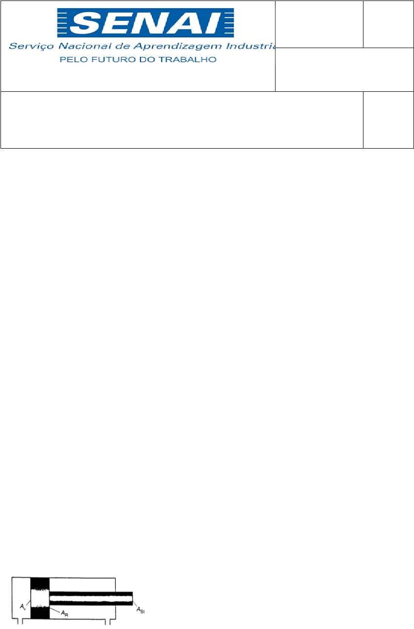 Técnico em manutenção Industrial Disciplina: MSCA Automação Pneumática Turma: AOPI - 23 Professor: Ronaldo Venâncio da Cruz Aluno : Data: 29/09/2021 Atividades Avaliativas 1. Converta: 150 bar = psi= 300 psi = kgf/cm²= 15 atm = psi= 195 lb/pol2 = bar= 3,5 kgf/cm2 = lb/pol2= 35 lb/pol2 = Kgf/cm2= 2- Calcular a área em cm² para uma pressão de 5,7 kgf/cm² e uma força de 1 tonelada. 3-Calcular o diâmetro do cilindro para uma pressão de 6 kgf/cm². utilizando uma força de 700 Kgf. 4- Exercícios Considerando o cilindro de dupla ação mostrado e dado as informações abaixo, calcule a força exercida pelo cilindro nos dois sentidos. Diâmetro do êmbolo d1: 63 mm Diâmetro da haste d2: 20 mm Pressão de trabalho: 6 bar 5- Determine a pressão de trabalho mínima em kgf/cm² Esse cilindro deve elevar verticalmente uma massa de 800 Kgf. Diâmetro do êmbolo d1 = 120 mm. Diâmetro da haste d2 = 48 mm. 6- Calcular o diâmetro de um cilindro, para um guincho, que possa levantar uma força =2000 kgf com uma pressão =60kgf/cm².