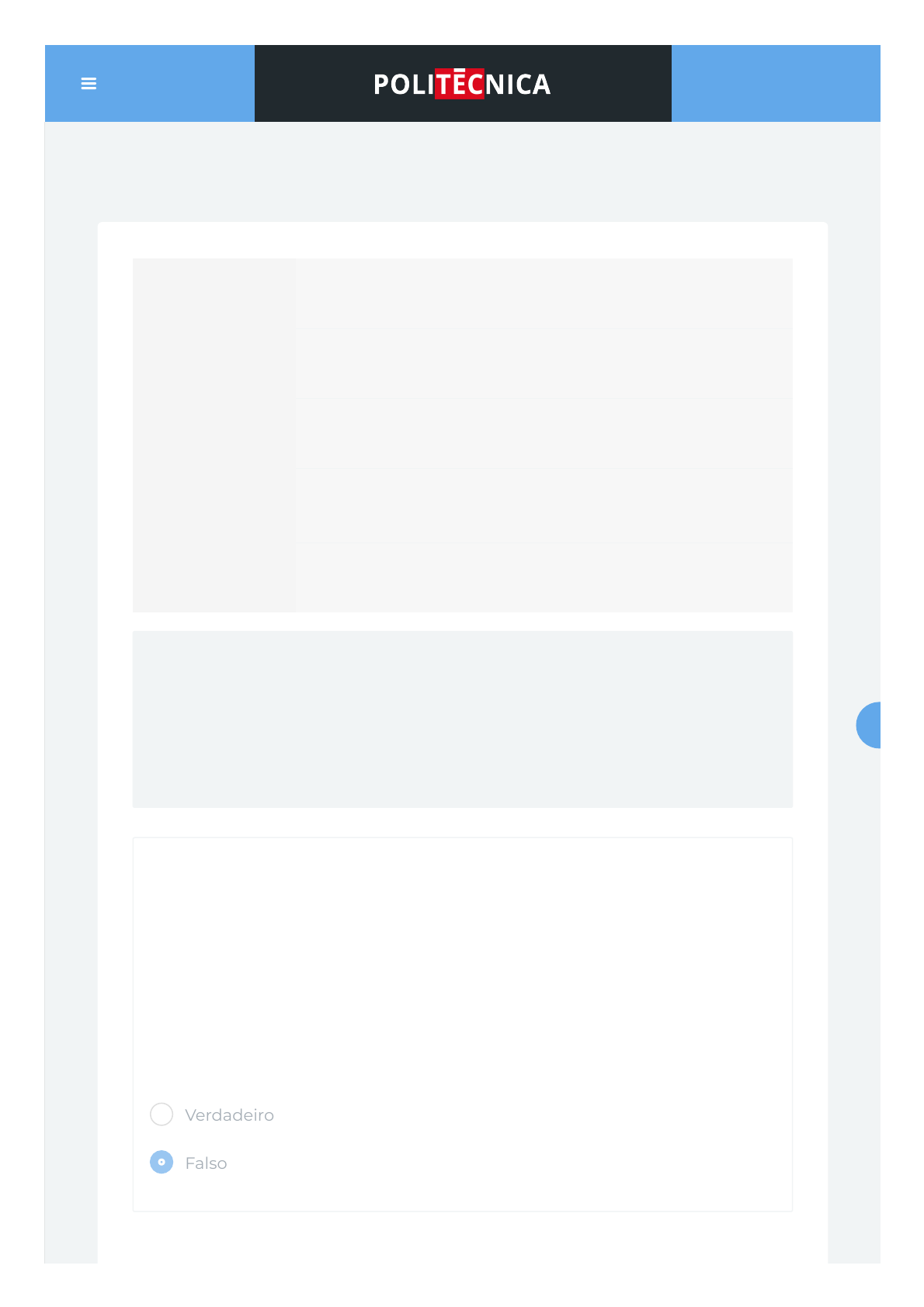29/09/2021 08:31 Avaliação Presencial - 15A165 https://ava.politecnicabr.com.br/mod/quiz/review.php?attempt=2094747 1/7 Painel / Cursos / 15A165 / Avaliação Presencial / Avaliação Presencial - 15A165 Plano de Negócio Iniciado em quarta, 29 Set 2021, 07:55 Estado Finalizada Concluída em quarta, 29 Set 2021, 08:16 Tempo empregado 21 minutos 10 segundos Avaliar 10,00 de um máximo de 10,00(100%) Questão 1 Completo Atingiu 1,00 de 1,00 Na opinião dos especialistas, as maiores di�culdades para empreender no Brasil estão ligadas aos seguintes aspectos: suporte �nanceiro, políticas empresariais e educação e treinamento. Quanto ao suporte �nanceiro, as principais di�culdades estão no acesso a crédito, pela burocracia, exigência de garantias reais e pelo alto custo do dinheiro. Escolha uma opção: Verdadeiro Falso https://ava.politecnicabr.com.br/my/ https://ava.politecnicabr.com.br/course/index.php https://ava.politecnicabr.com.br/course/view.php?id=924 https://ava.politecnicabr.com.br/course/view.php?id=924#section-12 https://ava.politecnicabr.com.br/mod/quiz/view.php?id=31253 https://ava.politecnicabr.com.br/ 29/09/2021 08:31 Avaliação Presencial - 15A165 https://ava.politecnicabr.com.br/mod/quiz/review.php?attempt=2094747 2/7 Questão 2 Completo Atingiu 1,00 de 1,00 O planejamento contínuo é uma necessidade para todos os negócios. Ele permite que você permaneça competitivo. Um processo detalhado de planejamento força-o a analisar de perto a dinâmica da atual situação do mercado e não contar com velhas premissas. Escolha uma opção: Questão 3 Completo Atingiu 1,00 de 1,00 Uma das primeiras coisas a fazer é identi�car o cliente. Desta forma pessoas jurídicas tendem a considerar principalmente os fatores objetivos (custo-benefício). Escolha uma opção: Verdadeiro Falso Verdadeiro Falso https://ava.politecnicabr.com.br/ 29/09/2021 08:31 Avaliação Presencial - 15A165 https://ava.politecnicabr.com.br/mod/quiz/review.php?attempt=2094747 3/7 Questão 4 Completo Atingiu 1,00 de 1,00 Serviços são atividades econômicas que criam valor e fornecem benefícios para clientes em tempos e lugares especí�cos, como decorrência da realização de uma mudança desejada no destinatário do serviço. Escolha uma opção: Questão 5 Completo Atingiu 1,00 de 1,00 O primeiro passo para estabelecer vantagens competitivas é concentrar-se nas necessidades dos clientes. Escolha uma opção: Verdadeiro Falso Verdadeiro Falso https://ava.politecnicabr.com.br/ 29/09/2021 08:31 Avaliação Presencial - 15A165 https://ava.politecnicabr.com.br/mod/quiz/review.php?attempt=2094747 4/7 Questão 6 Completo Atingiu 1,00 de 1,00 No ambiente competitivo em que estamos, qualquer elemento que possamos utilizar para aumentar nossa chance de sucesso não pode ser desprezado, por isso devemos preparar um plano de negócio. Escolha uma opção: Questão 7 Completo Atingiu 1,00 de 1,00 O plano de negócio é elaborado apenas para uso exclusivo do empreendedor. Escolha uma opção: Verdadeiro Falso Verdadeiro Falso https://ava.politecnicabr.com.br/ 29/09/2021 08:31 Avaliação Presencial - 15A165 https://ava.politecnicabr.com.br/mod/quiz/review.php?attempt=2094747 5/7 Questão 8 Completo Atingiu 1,00 de 1,00 As informações já disponíveis sobre o mercado chamam-se dados secundários. Um bom exemplo são os anuários estatísticos do governo. Escolha uma opção: Questão 9 Completo Atingiu 1,00 de 1,00 Quando a empresa já estiver estabelecida, você poderá projetar suas vendas futuras baseado no seu histórico, mas cuidado para não reproduzir os dados simplesmente. Escolha uma opção: Verdadeiro Falso Verdadeiro Falso https://ava.politecnicabr.com.br/ 29/09/2021 08:31 Avaliação Presencial - 15A165 https://ava.politecnicabr.com.br/mod/quiz/review.php?attempt=2094747 6/7 © 2020 - Escola Politécnica Brasileira Questão 10 Completo Atingiu 1,00 de 1,00 Os sistemas de prestação de serviços precisam ser avaliados segundo três pontos: Operações de serviços, entrega de serviços e marketing de serviços. Escolha uma opção: Verdadeiro Falso Entre em Contato https://www.politecnicabr.com.br 0800 084 2627 indisponível devido a pandemia de COVID-19, use outro canal! 0800 084 2627 comercial@politecnicabr.com.br Links Úteis Dicas da nossa Diretora Acadêmica Planner de Estudos Declaração de Matrícula Orientações do AVA Abertura de Ticket Fale com o Tutor Cronograma de Estudos Manual de Estágio Manual de Competência Siga-nos nas redes sociais https://ava.politecnicabr.com.br/mod/quiz/0 https://www.politecnicabr.com.br/ mailto:comercial@politecnicabr.com.br https://soundcloud.com/user-501638417/sets/escola-politecnica-brasileira https://storage.googleapis.com/sirius-pubstore/semestre_plannerdeestudo%20poli.pdf https://storage.googleapis.com/sirius-pubstore/declaracao_matricula.pdf https://storage.googleapis.com/sirius-pubstore/orientacoes_ava.pdf https://storage.googleapis.com/sirius-pubstore/abertura_ticket.pdf https://storage.googleapis.com/sirius-pubstore/fale_com_tutor.pdf https://storage.googleapis.com/sirius-pubstore/cronograma_estudos.pdf https://storage.googleapis.com/sirius-pubstore/manual_estagio.pdf https://storage.googleapis.com/sirius-pubstore/manual_competencia.pdf https://www.facebook.com/politecnicabr https://www.instagram.com/politecnicabr_oficial https://ava.politecnicabr.com.br/ 29/09/2021 08:31 Avaliação Presencial - 15A165 https://ava.politecnicabr.com.br/mod/quiz/review.php?attempt=2094747 7/7