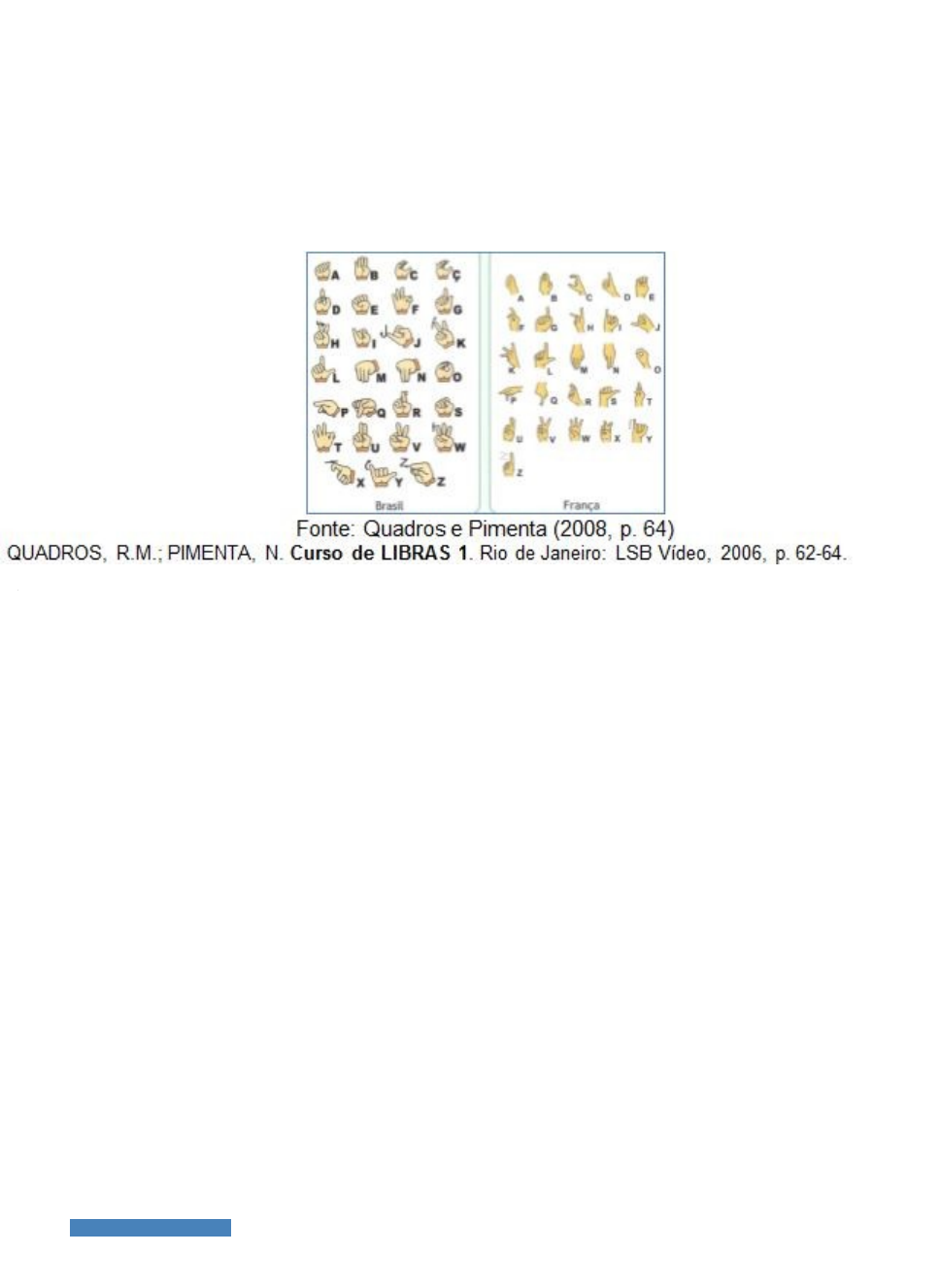 1)Texto base: "Em cada país, há, pelo menos, uma língua de sinais. No Brasil, usamos a língua de sinais brasileira, LIBRAS, que é diferente da língua de sinais francesa, da língua de sinais americana e de todas as outras línguas de sinais espalhadas pelo mundo." (QUADROS; PIMENTA, 2008, p. 62.) ... Considerando o texto e a imagem, indique a alternativa que justifica a razão pela qual os alfabetos do Brasil e da França apresentam grande semelhança, uma vez que cada país possui uma língua de sinais distinta. Alternativas: · a) Apenas as palavras/sinais das línguas de sinais se diferenciam em cada país, o alfabeto manual é o mesmo para todos. · b) Os alfabetos manuais apresentados na imagem não pertencem à comunidade surda, mas sim aos monges beneditinos que vivem em voto de silêncio. · c) Os alfabetos se assemelham, pois ambos foram criados pelo imperador romano Justiniano, durante a Antiguidade. · d) Os alfabetos se assemelham porque o primeiro educador de surdos no Brasil era um surdo francês. Alternativa assinalada · e) Trata-se de uma coincidência, pois somente os alfabetos da França e do Brasil apresentam essa semelhança. 2)Texto base:. Direção de Dorrit Harazim. Brasil, 2004. 58 min. color. son. O excerto extraído da fala de uma mãe de surdo (e que também é uma profissional que atua nessa área) revela: Alternativas: · a) O posicionamento dessa mãe a favor do bilinguismo. · b) A defesa de uma concepção socioantropológica. · c) Um discurso patológico da surdez. Alternativa assinalada · d) O reconhecimento da importância da Libras para a identidade surda. · e) A defesa da Comunicação Total. 3)Texto base: "apoiar a ampliação das equipes de profissionais da educação para atender à demanda do processo de escolarização dos (das) estudantes com deficiência, transtornos globais do desenvolvimento e altas habilidades ou superdotação, garantindo a oferta de professores (as) do atendimento educacional especializado, profissionais de apoio ou auxiliares, tradutores (as) e intérpretes de Libras, guias-intérpretes para surdos-cegos, professores de Libras, prioritariamente surdos, e professores bilíngues;". (BRASIL, 2014). BRASIL. Lei nº 13.005, de 25 de junho de 2014. Aprova o plano nacional de educação - PNE e dá outras providências. Diário Oficial da União, Brasília, DF, 26 jun. 2014. Edição extra, Seção 1, p. 1-7. Disponível em: <http://www.jusbrasil.com.br/diarios/72231507/dou-edicao-extra-secao-1-26-06-2014-pg-1/pdfView>. Acesso em: 31 ago. 2015. Ao determinar a prioridade de surdos na contratação como professores de Libras, o Plano Nacional de Educação colabora para: Alternativas: · a) O contato de crianças surdas com modelos adultos surdos na escola, formando a sua identidade surda. Alternativa assinalada · b) A essencialização da identidade surda como sendo determinada exclusivamente por meio do domínio da Libras. · c) Tornar a escola um lugar cada vez menos acolhedor às diferentes identidades, especialmente a identidade surda. · d) Uma pedagogia corretiva e normalizadora da surdez, que defende a ouvintização. · e) Que as crianças surdas se tornem preguiçosas para aprenderem a falar oralmente, ficando restritas a interação com outros surdos. 4)Texto base: A professora Joana recebeu uma aluna surda em sua classe. Junto com seus documentos consta o laudo médico indicando uma perda auditiva bilateral neurossensorial severa. Joana não sabe o que isso significa, mas observou que, mesmo falando bem alto com a aluna, ela não lhe responde. A aluna, no entanto, ouve o barulho do telefone tocando e também do cachorro latindo. Como é possível explicar para Joana que sua aluna surda consegue ouvir o som do telefone ou do ladrar do cão, mas não responde quando a professora fala (oralmente) com ela? Alternativas: · a) A aluna não tem perda auditiva, pois surdos de fato vivem no completo mundo do silêncio. · b) O grau de surdez da aluna permite ouvir o toque do telefone, mas não a fala oral. Alternativa assinalada · c) O tipo de surdez da aluna é temporário e foi revertido com medicamentos ou cirurgia. · d) A surdez da aluna acometeu somente um ouvido, portanto ela ouve o toque do telefone com o outro lado. · e) Se a aluna não é capaz de ouvir os sons da fala oral, o grau da perda auditiva dela é, na verdade, profundo. 5)Texto base: I - Movimentos das comunidades surdas culminaram na oficialização e reconhecimento da Libras. II - A língua de sinais é proibida na educação e comunicação de surdos. III - A Igreja acolhia as pessoas surdas e, com isso, obtinha o direito sobre seus bens e herança. IV - As pessoas surdas que puderem se comunicar oralmente terão direito de herdar fortunas, se unir em matrimônio e ter propriedades. 1 – Antiguidade. 2 – Idade Média. 3 – Idade Moderna. 4 – Dias atuais. Com relação aos direitos das pessoas surdas, desde a Antiguidade até os dias atuais,associe corretamente as afirmações a sua época. Alternativas: · a) I-2; II-4; III-1; IV-3. · b) I-4; II-3; III-2; IV-1. Alternativa assinalada · c) I-1; II-4; III-3; IV-2. · d) I-3; II-1; III-2; IV-4. · e) I-2; II-1; III-4; IV-3. 1) Texto base: "Em cada país, há, pelo menos, uma língua de sinais. No Brasil, usamos a língua de sinais brasileira, LIBRAS, que é diferente da língua de sinais francesa, da língua de sinais americana e de todas as outras línguas de sinais espalhadas pelo mun do." (QUADROS; PIMENTA, 2008, p. 62.) ... Considerando o texto e a imagem, indique a alternativa que justifica a razão pela qual os alfabetos do Brasil e da França apresentam grande semelhança, uma vez que cada país possui uma língua de sinais distinta. Alternativas: · a) Apenas as palavras/sinais das línguas de sinais se diferenciam em cada país, o alfabeto manual é o mesmo para todos. · b) Os alfabetos manuais apresentados na imagem não pertencem à comunidade surda, mas sim aos monges bene
