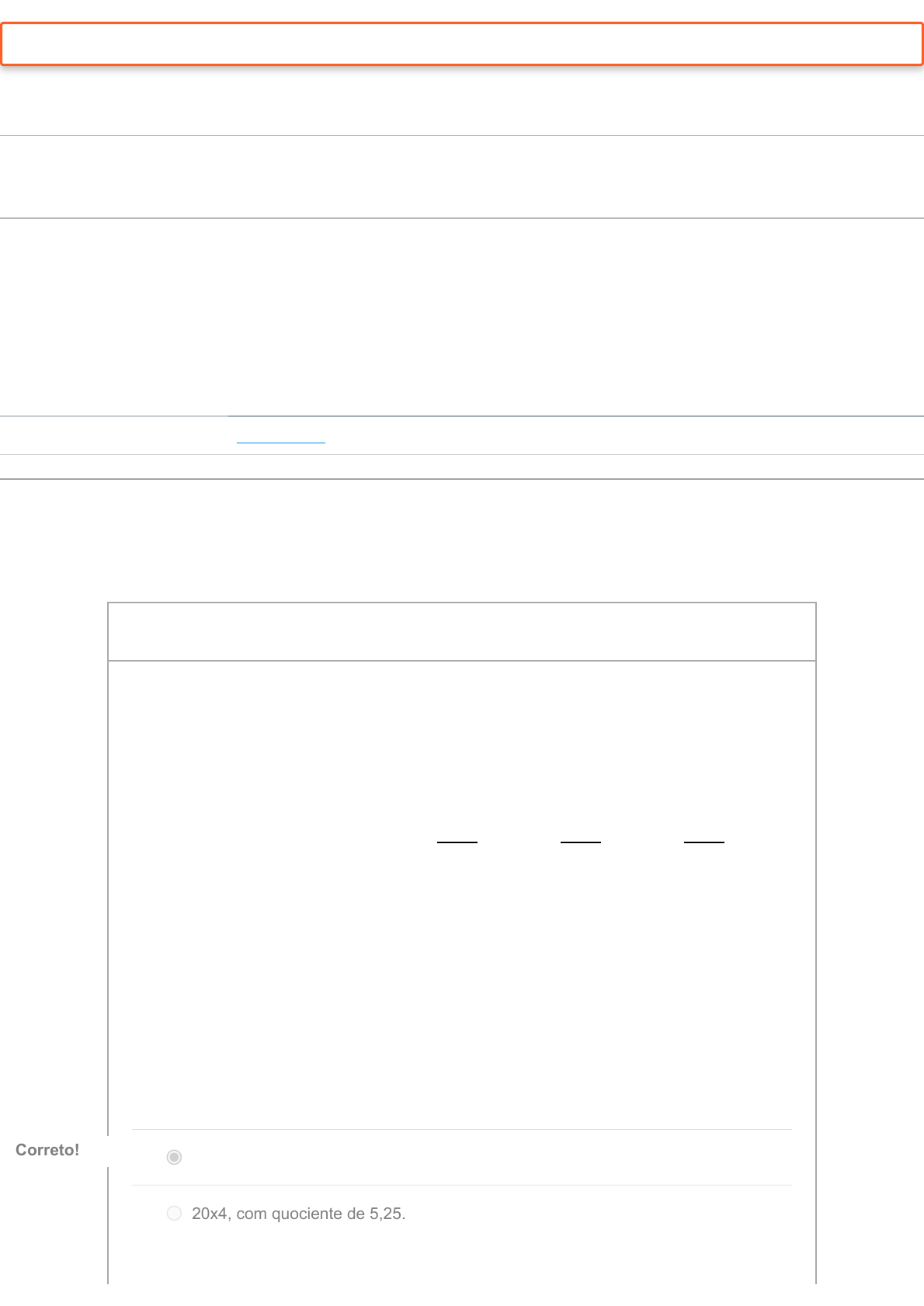 O teste foi reavaliado; sua pontuação não foi afetada. Atividade Objetiva 01 Entrega 14 jun em 23:59 Pontos 10 Perguntas 5 Disponível 7 jun em 0:00 - 14 jun em 23:59 8 dias Limite de tempo Nenhum Este teste foi travado 14 jun em 23:59. Histórico de tentativas Tentativa Tempo Pontuação Reavaliado MAIS RECENTE Tentativa 1 21 minutos 10 de 10 10 de 10 Pontuação deste teste: 10 de 10 Enviado 10 jun em 16:00 Esta tentativa levou 21 minutos. 2 / 2 ptsPergunta 1 Dos balanços patrimoniais de determinada empresa foram extraídos os seguintes dados: 20x2 20x3 20x4 Ativo Circulante 100 160 240 Ativo Não Circulante 250 400 600 Passivo Circulante 75 100 160 Calculando-se a liquidez corrente dos três exercícios, verifica-se que ela está melhor em: 20x3, com quociente de 1,60. Correto!Correto! 20x4, com quociente de 5,25. https://pucminas.instructure.com/courses/68532/quizzes/180137/history?version=4 20x3, com quociente de 5,60. 20x2, com quociente de 4,67. Pontuação original: 2 / 2 pts Pontuação reavaliada: 2 / 2 pts Question 2 Esta pergunta foi reavaliada. Demonstração do Resultado Empresa Beta LTDA – Findo em 31/12/2013 e 14. 2013 AV % 2014 AV % AH % RECEITA LIQUID DE VENDAS 170.284 100 247.456 100 45,32 CPV: Custo de Matéria Prima (24.945) (14,65) (36.154) (14,61) 44,93 CPV: Custo de Mão de Obra (81.422) (47,81) (109.166) (44,11) 34,07 LUCRO BRUTO 63.917 37,54 102.136 41,28 59,79 DESPESAS OPERACIONAIS (53.341) (31,32) (91.282) (36,89) 71,13 Honorários da Diretoria (912) (0,54) (1.270) (0,51) 39,25 Gerais e Administrativas (17.573) (10,32) (20.612) (8,33) 17,29 Despesas de Vendas (28.473) (16,72) (41.809) (16,90) 46,84 Transporte de Empregados (6.981) (4,10) (15.281) (6,18) 118,89 Participação dos Empregados (1.329) (0,78) (2.657) (1,06) 99,92 Despesas de Viagens (3.850) (12,26) (16.500) (6,67) 328,57 Outras Receitas Operacionais 8.035 4,72 9.160 3,70 14,00 Amortização de Ágio (1.728) (1,01) (1.728) (0,70) 0,00 Depreciação bens da ADM (530) (0,31) (585) (0,24) 10,38 LUCRO OPERACIONAL 10.576 6,22 10.854 4,39 2,63 Resultado Não Operacional 653 0,38 487 0,20 -25,42 LAIR 11.229 6,60 11.341 4,59 1,00 Prov. para Imposto de Renda (1.980) (1,16) (1.281) (0,52) -35,30 Participação dos Diretores (533) (0,32) (583) (0,24) 9,38 Reversão de provisões 3.850 2,26 16.500 6,67 328,57 LUCRO LÍQ DO EXERCÍCIO 12.566 7,38 25.977 10,50 106,72 Com base nas informações apresentadas acima, pode se afirmar que a Rentabilidade Bruta, a Rentabilidade Operacional e a Rentabilidade Líquida no ano de 2014 são respectivamente: 10,5%; 4,39% e 41,28% 10,5%; 4,59% e 14,61% 37,54%; 6,22% e 7,38% 41,28%; 4,39% e 10,5% Correto!Correto! 2 / 2 ptsPergunta 3 A finalidade principal da análise horizontal é verificar: A evolução dos elementos que formam as demonstrações financeiras. Correto!Correto! A participação percentual dos componentes das demonstrações financeiras. A situação específica de uma empresa. O quociente dos elementos formadores das demonstrações financeiras. 2 / 2 ptsPergunta 4 O ativo de uma empresa estava assim constituído em 20x3 e 20x4: 20X3 20X4 ATIVO 300 400 CIRCULANTE 100 120 REALIZÁVEL A LONGO PRAZO 30 40 IMOBILIZADO 170 240 O índice de evolução nominal dos grupos de contas índica que o que mais cresceu de 20x3 para 20x4 foi o do: Realizável a Longo Prazo. Imobilizado e do Realizável a Longo Prazo, com a mesma evolução. Imobilizado. Correto!Correto! Circulante e do Imobilizado. 2 / 2 ptsPergunta 5 O Ativo Não Circulante de uma empresa apresentava os seguintes valores nos Balanços Patrimoniais de 20x0 a 20x3: 20x0 = $ 120.000; 20x1 = $ 150.000; 20x2 = $ 200.000 e 20x3 = $ 280.000. Tomando como base fixa o ano 20x0, conclui-se que os índices de evolução nominal de 20x0 a 20x3 são: 20x0 = 0%; 20x1 = 25%; 20x2 = 66,67%; 20x3 = 133,33%. Correto!Correto! 20x0 = 20%; 20x1 = 25%; 20x2 = 33,33%; 20x3 = 133,33%. 20x0 = 0%; 20x1 = 25%; 20x2 = 33,33%; 20x3 = 40%. 20x0 = 20%; 20x1 = 25%; 20x2 = 66,67%; 20x3 = 33,33% Pontuação do teste: 10 de 10