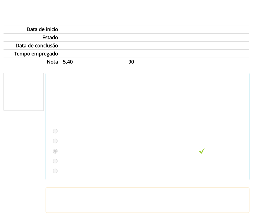 Questão 1 Correto Atingiu 0,60 de 0,60 Data de inicio sábado, 2 Out 2021, 13:24 Estado Finalizada Data de conclusão sábado, 2 Out 2021, 14:10 Tempo empregado 46 minutos 16 segundos Nota 5,40 de um máximo de 6,00(90%) Conforme nossos estudos, o L.N.T (levantamento da necessidade de treinamento) minimiza o risco de perdas �nanceiras na elaboração dos treinamentos. Por isso, Bohlander et al. (2005) recomendam a utilização de uma abordagem sistêmica de treinamento, utilizando três tipos de análise, que são: assinale a alternativa correta. Escolha uma: a. Análise da organização; análise do conteúdo e análise do colaborador. b. Análise �nanceira; análise de cronograma e análise funcional. c. Análise da empresa; análise da tarefa e análise da pessoa d. Análise ambiental; análise �nanceira e análise de necessidade e. Nenhuma das alternativas anteriores Sua resposta está correta. A resposta correta é: Análise da empresa; análise da tarefa e análise da pessoa. Educação Corporativa, Treinamento e Desenvolvimento ► AVALIAÇÃO ► PROVA https://moodle.universoead.com.br/course/view.php?id=14 https://moodle.universoead.com.br/mod/quiz/view.php?id=1445 Questão 2 Correto Atingiu 0,60 de 0,60 O planejamento é um passo importante que deve acontecer após as análises que antecedem o tipo de treinamento que será realizado. Com base nos estudos da nossa disciplina, assinale a alternativa correta sobre o planejamento de treinamento: I. Quanti�car o treinamento necessário a ser ministrado. II. De�nir um horizonte de tempo para que o treinamento seja realizado. III. De�nir o conteúdo do treinamento de acordo com as necessidades. IV. Elaborar um orçamento de treinamento. Escolha uma: a. Estão corretas apenas I e IV. b. Estão corretas apenas II e III c. Estão corretas apenas I, II e III. d. Todas as a�rmativas estão corretas. e. Nenhuma das alternativas anteriores Sua resposta está correta. A resposta correta é: Todas as a�rmativas estão corretas.. Questão 3 Correto Atingiu 0,60 de 0,60 Conforme veri�camos no material da nossa disciplina, a expressão Treinamento e Desenvolvimento – T&D – é recente e, segundo Boog e Boog (2006) ela surgiu no início do século XX. Sendo assim, assinale a alternativa correta: Escolha uma: a. A expressão Treinamento e Desenvolvimento – T&D surgiu para designar, durante a maior parte da segunda metade do século XX, um amplo conjunto de atividades de ensino pro�ssional suplementar conduzido pelas empresas b. A expressão Treinamento e Desenvolvimento – T&D surgiu para designar, durante a maior parte da segunda metade do século XX, um amplo conjunto de atividades do ensino médio conduzido pelas empresas. c. A expressão Treinamento e Desenvolvimento – T&D surgiu para designar, durante a maior parte da segunda metade do século XX, um amplo conjunto de atividades do ensino superior que deveriam ser conduzido pelas empresas d. Nenhuma das alternativas está correta. Sua resposta está correta. A resposta correta é: A expressão Treinamento e Desenvolvimento – T&D surgiu para designar, durante a maior parte da segunda metade do século XX, um amplo conjunto de atividades de ensino pro�ssional suplementar conduzido pelas empresas. Questão 4 Correto Atingiu 0,60 de 0,60 Conforme veri�cado em nosso estudos, dada a necessidade das empresas em realizar treinamentos corporativos é preciso ter o máximo cuidado para evitar possíveis desperdícios de recursos �nanceiros. Boog e Boog (2001) reforçam a importância de se realizar previamente o levantamento de necessidades de treinamento – L.N.T. Fazem parte deste levantamento: Assinale a alternativa correta: I. De�nir, com precisão, os objetivos do treinamento e construí-los a partir das necessidades. II. De�nir claramente as necessidades de treinamento. III. Conscientizar os superiores hierárquicos de que não são parte efetiva de todo o processo; IV. Não permitir que os treinandos trans�ram os conteúdos para suas funções. Escolha uma: a. Estão corretas somente as a�rmativas I, II e III. b. Estão corretas somente as a�rmativas II e III. c. Estão corretas somente as a�rmativas II, III e IV d. Estão corretas somente as a�rmativas I e II. e. Nenhuma das alternativas anteriores. Sua resposta está correta. A resposta correta é: Estão corretas somente as a�rmativas I e II.. Questão 5 Correto Atingiu 0,60 de 0,60 Aprendemos durante nossos estudos que Capital Humano não é algo que possa ser mensurado justamente pelo fato de serem os funcionários e não a empresa os detentores deste. Sobre o surgimento da teoria do Capital Humano assinale a alternativa correta: Escolha uma: a. Dizia-se, no início do século XX, que o capital seria o conjunto de riquezas existentes em um determinado tempo e que possibilitam o “�uxo de serviços nesse tempo, tratando-se da terra, das máquinas, das matérias- primas, de recursos naturais e das qualidades do homem”. b. Dizia-se, no início do século XIX, que o capital seria o conjunto de riquezas existentes em um determinado tempo e que possibilitam o “�uxo de serviços nesse tempo, tratando-se da terra, das máquinas, das matérias- primas, de recursos naturais e das qualidades do homem” c. Dizia-se, no início do século XVIII, que o capital seria o conjunto de riquezas existentes em um determinado tempo e que possibilitam o “�uxo de serviços nesse tempo, tratando-se da terra, das máquinas, das matérias- primas, de recursos naturais e das qualidades do homem”. d. Nenhuma das alternativas anteriores. Sua resposta está correta. A resposta correta é: Dizia-se, no início do século XX, que o capital seria o conjunto de riquezas existentes em um determinado tempo e que possibilitam o “�uxo de serviços nesse tempo, tratando-se da terra, das máquinas, das matérias-primas, de recursos naturais e das qualidades do homem”.. Questão 6 Correto Atingiu 0,60 de 0,60