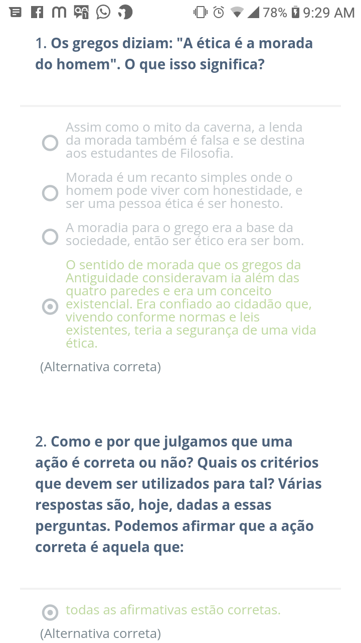 Os gregos diziam: "A ética é a morada do homem". que isso significa? Assim como mito da caverna, a lenda da morada também e falsa e se destina aos estudantes de Filosofia. Morada um recanto simples onde homem pode viver com honestidade, e ser uma pessoa ética ser honesto. A moradia para grego era a base da sociedade, então ser ético era ser bom. O sentido de morada que os gregos da Antiguidade consideravam além das quatro paredes e era um conceito existencial. Era confiado ao cidadão que, vivendo conforme normas e leis existentes, teria a segurança de uma vida ética. Qual é a interpretação correta da afirmação "A ética é a morada do homem"?
