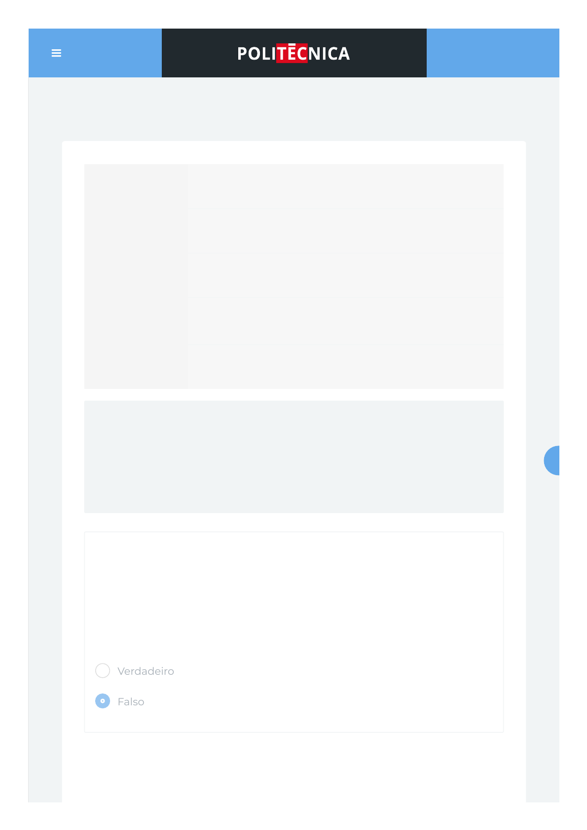 05/10/2021 16:46 Atividade 14 https://ava.politecnicabr.com.br/mod/quiz/review.php?attempt=1973667 1/4 Painel / Cursos / 15A118 / Operações com mercadorias – custo UEPS / Atividade 14 Contabilidade Geral Iniciado em quarta, 1 Set 2021, 15:49 Estado Finalizada Concluída em quarta, 1 Set 2021, 15:50 Tempo empregado 1 minuto 5 segundos Avaliar 10,00 de um máximo de 10,00(100%) Questão 1 Correto Atingiu 2,00 de 2,00 Autilização do método UEPS, também é uma forma de controlar o estoque pelo inventário permanente. Apesar de a restrição feita pela Legislação do Imposto de Renda no Brasil, o método UEPS se constitui em um excelente controle de estoque para �ns �scais. Escolha uma opção: Verdadeiro Falso https://ava.politecnicabr.com.br/my/ https://ava.politecnicabr.com.br/course/index.php https://ava.politecnicabr.com.br/course/view.php?id=877 https://ava.politecnicabr.com.br/course/view.php?id=877#section-15 https://ava.politecnicabr.com.br/mod/quiz/view.php?id=23934 https://ava.politecnicabr.com.br/ 05/10/2021 16:46 Atividade 14 https://ava.politecnicabr.com.br/mod/quiz/review.php?attempt=1973667 2/4 Questão 2 Correto Atingiu 2,00 de 2,00 Com relação ao UEPS o referencial para saber qual foi a Última compra a Entrar e qual é a Primeira compra a Sair é a data de venda dos produtos adqueridos. Escolha uma opção: Questão 3 Correto Atingiu 2,00 de 2,00 O UEPS, ao contrário do PEPS, consiste em ter sempre, numa economia in�acionária, o valor do CMV maior, do estoque �nal (EF) menor e do RCM menor. Escolha uma opção: Verdadeiro Falso Verdadeiro Falso https://ava.politecnicabr.com.br/ 05/10/2021 16:46 Atividade 14 https://ava.politecnicabr.com.br/mod/quiz/review.php?attempt=1973667 3/4 Questão 4 Correto Atingiu 2,00 de 2,00 Quando falamos que o método de avaliação do estoque é custo UEPS, estamos nos referindo às entradas e às saídas de um estoque que acontecem da seguinte forma: Última compra a Entrar no estoque, é a Primeira compra a Sair do estoque Escolha uma opção: Questão 5 Correto Atingiu 2,00 de 2,00 Quando é utilizado o método UEPS praticando uma economia de�acionária, acontece exatamente a mesma coisa do método PEPS; pois o que sai do estoque gera um custo menor; pois a compra mais recente é a primeira a sair do estoque. Escolha uma opção: Verdadeiro Falso Verdadeiro Falso https://ava.politecnicabr.com.br/ 05/10/2021 16:46 Atividade 14 https://ava.politecnicabr.com.br/mod/quiz/review.php?attempt=1973667 4/4 © 2020 - Escola Politécnica Brasileira Entre em Contato https://www.politecnicabr.com.br 0800 084 2627 indisponível devido a pandemia de COVID-19, use outro canal! 0800 084 2627 comercial@politecnicabr.com.br Links Úteis Dicas da nossa Diretora Acadêmica Planner de Estudos Declaração de Matrícula Orientações do AVA Abertura de Ticket Fale com o Tutor Cronograma de Estudos Manual de Estágio Manual de Competência Siga-nos nas redes sociais https://ava.politecnicabr.com.br/mod/quiz/0 https://www.politecnicabr.com.br/ mailto:comercial@politecnicabr.com.br https://soundcloud.com/user-501638417/sets/escola-politecnica-brasileira https://storage.googleapis.com/sirius-pubstore/semestre_plannerdeestudo%20poli.pdf https://storage.googleapis.com/sirius-pubstore/declaracao_matricula.pdf https://storage.googleapis.com/sirius-pubstore/orientacoes_ava.pdf https://storage.googleapis.com/sirius-pubstore/abertura_ticket.pdf https://storage.googleapis.com/sirius-pubstore/fale_com_tutor.pdf https://storage.googleapis.com/sirius-pubstore/cronograma_estudos.pdf https://storage.googleapis.com/sirius-pubstore/manual_estagio.pdf https://storage.googleapis.com/sirius-pubstore/manual_competencia.pdf https://www.facebook.com/politecnicabr https://www.instagram.com/politecnicabr_oficial https://ava.politecnicabr.com.br/