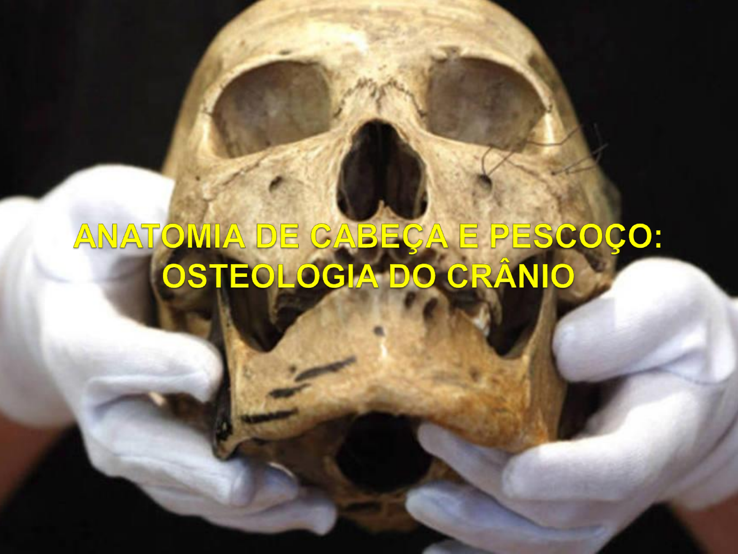 Prof. José Mauricio Veloso CRÂNIO - GENERALIDADES ➢ Funções: • Abrigar e proteger o encéfalo; • Alojar e proteger os órgãos de sensibilidade especial; • Fornecer aberturas para passagem das porções iniciais dos sistemas respiratório e digestório; • Fornecer suporte para os dentes. OBS.: Constituído por articulações imóveis, exceto articulação da mandíbula (sinovial). NÚMERO DE OSSOS E DIVISÃO DO CRÂNIO: O crânio é formado por 22 ossos, sendo divididos em duas porções: o neurocrânio e o viscerocrânio. A quantidade de ossos da cabeça vai ser de acordo com o critério de contagem, se contar com os ossículos do ouvido (bigorna, estribo e martelo) serão 28, porém se não forem utilizados pelo critério de contagem só serão 22. Número de ossos e divisão do crânio: NEUROCRÂNIO: 1 frontal 2 temporais 1 occipital 2 parietais 1 esfenóide 1 etmóide VISCEROCRÂNIO: 1 mandíbula 1 vômer 2 maxilas 2 zigomáticos 2 nasais 2 lacrimais 2 conchas nasais inferiores 2 palatinos NÚMERO DE OSSOS E DIVISÃO DO CRÂNIO: FORMA E ESTRUTURAS GERAIS: • Forma ovóide • Mais espesso anterior e posteriormente, e mais delgado na região temporal; • Forma em arco para amortecer forças de compressão ou impácto FORMA E ESTRUTURAS GERAIS: •Lâmina óssea externa: mais espessa, convexa e de maior raio do que a interna •Díploe: Camada de osso esponjoso que se encontra entre as lâminas de tecido compacto que formam os ossos do crânio. Nos ossos pneumáticos é substituído parcialmente pelos seios paranasais. •Lâmina óssea interna •Canais diplóicos •Pericrânio FORMA E ESTRUTURAS GERAIS: POSIÇÃO ANATÔMICA: Plano orbitomeático ( Plano de Frankfurt)-> Esse plano corresponde à posição natural do crânio, com o indivíduo em posição anatômica. Ele passa pela borda superior do meato acústico externo (Pório (Po)) e pela borda inferior da órbita esquerda (Orbitário (Or)). CRESCIMENTO E OSSIFICAÇÃO: ➢ Ossificação Intramembranosa: (intra = dentro; membranous = membrana).Refere-se à formação de osso diretamente sobre ou dentro das membranas de tecido conjuntivo fribroso. • Calota • Parte da base do crânio • Viscerocrânio (face) CRESCIMENTO E OSSIFICAÇÃO: ➢ Ossificação Endocondral: (endo = dentro; condro = cartilagem), refere-se à formação de osso dentro de um modelo de cartilagem. • Maior parte da base CRÂNIO FETAL ➢ Fontanelas Ímpares: • Anterior • Posterior CRÂNIO FETAL ➢ Fontanelas pares: • Antero - lateral • Postero - lateral CRÂNIO FETAL CRÂNIO FETAL CRÂNIO FETAL CRESCIMENTO ➢ Nascimento • Viscerocrânio 1/8 do Neurocrânio ➢ Surto até 2 anos • Respiração • Mastigação • Erupção de dentes CRESCIMENTO CRESCIMENTO ➢ Surto 6-12 anos: • Erupção permanentes ➢ Restante: • Ação muscular • Proporções finais: Viscerocrânio 1/2 do Neurocrânio CRESCIMENTO CRESCIMENTO: OSSO ALVEOLAR Diferenças sexuais: CRÂNIO SEXO MASCULINO SEXO FEMININO Fronte mais inclinada mais vertical Glabela mais pronunciada menos pronunciada Arcos superciliares mais salientes menos salientes Articulação fronto-nasal angulosa curva Rebordo supra-orbitário rombo cortante Apófise mastóide mais robusta menos robusta Apófise estilóide mais longa e mais grossa mais curta e mais fina Côndilos occiptais mais longos e mais estreitos mais curtos e mais largos Côndilos mandibulares mais robustos mais delicados Na mulher, geralmente os processos mastóideos são menos desenvolvidos que os côndilos occipitais. Assim, a base do crânio, quando apoiada numa superfície plana, inclina-se mais, quando movimentada lateralmente, do que a base do crânio masculino que se apóia mais firmemente. ACIDENTES ANATÔMICOS ÓSSEOS ACIDENTES ANATÔMICOS ÓSSEOS Osso mandíbula Osso frontal ACIDENTES ANATÔMICOS ÓSSEOS ACIDENTES ANATÔMICOS ÓSSEOS Maxila ACIDENTES ANATÔMICOS ÓSSEOS Palatino Osso zigomático ACIDENTES ANATÔMICOS ÓSSEOS ACIDENTES ANATÔMICOS ÓSSEOS Osso etmóide ACIDENTES ANATÔMICOS ÓSSEOS Osso Vomer ACIDENTES ANATÔMICOS ÓSSEOS Osso Parietal ACIDENTES ANATÔMICOS ÓSSEOS Osso Temporal ACIDENTES ANATÔMICOS ÓSSEOS Osso occipital ACIDENTES ANATÔMICOS ÓSSEOS Vista anterior Vista posterior Osso esfenóide • Bregma - ponto de união das suturas sagital e coronal • Lâmbda - ponto de união das suturas sagital e lambdóide • Vértex - parte mais alta do crânio Alguns Pontos Antropométricos do Crânio: • Gônio - ângulo da mandíbula • Ptério - ponto de união dos ossos parietal, frontal, esfenóide e temporal Alguns Pontos Antropométricos do Crânio: ANATOMIA RADIOGRÁFICA