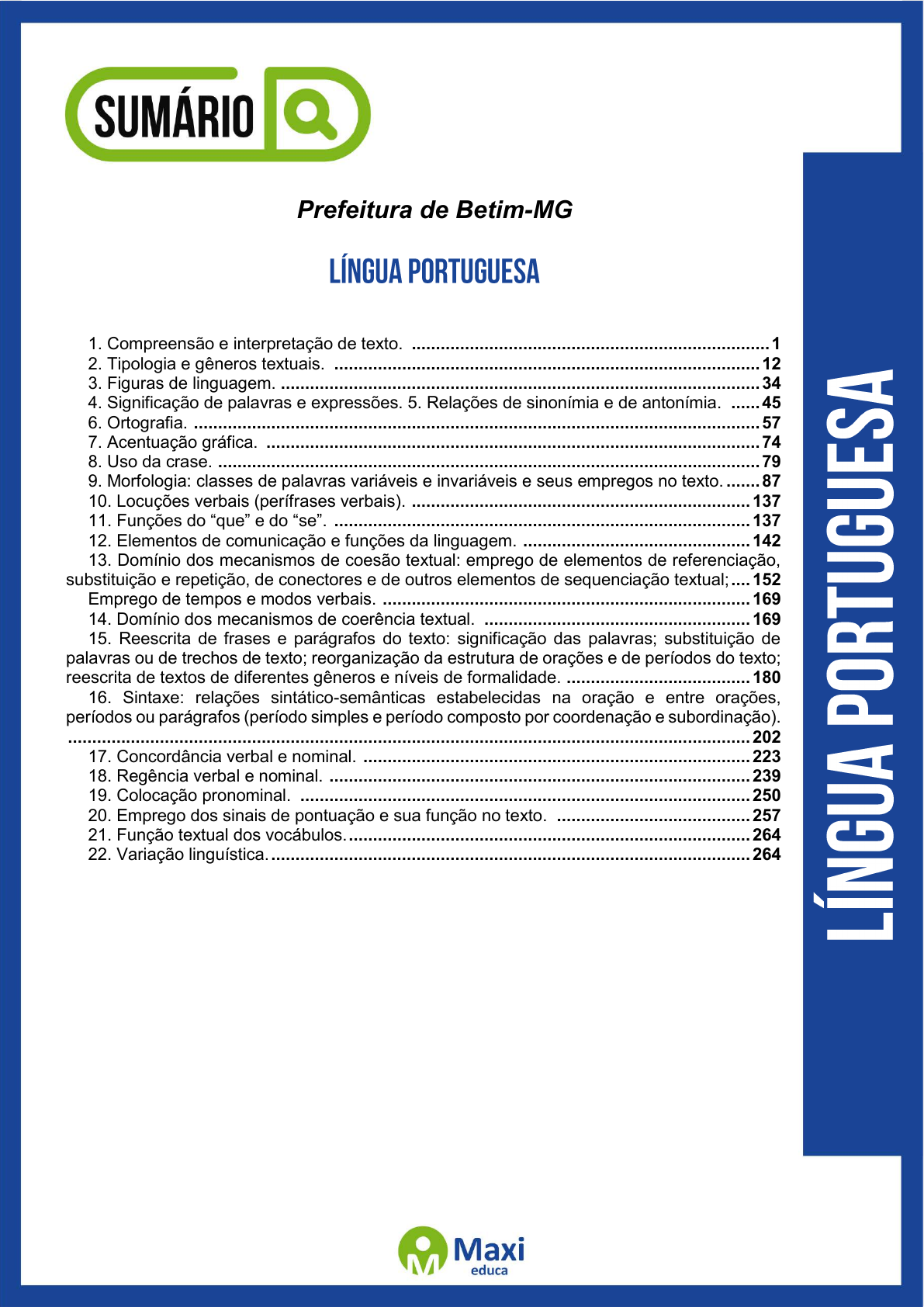 20. Emprego dos sinais de pontuação e sua função no texto. ........................................ 257