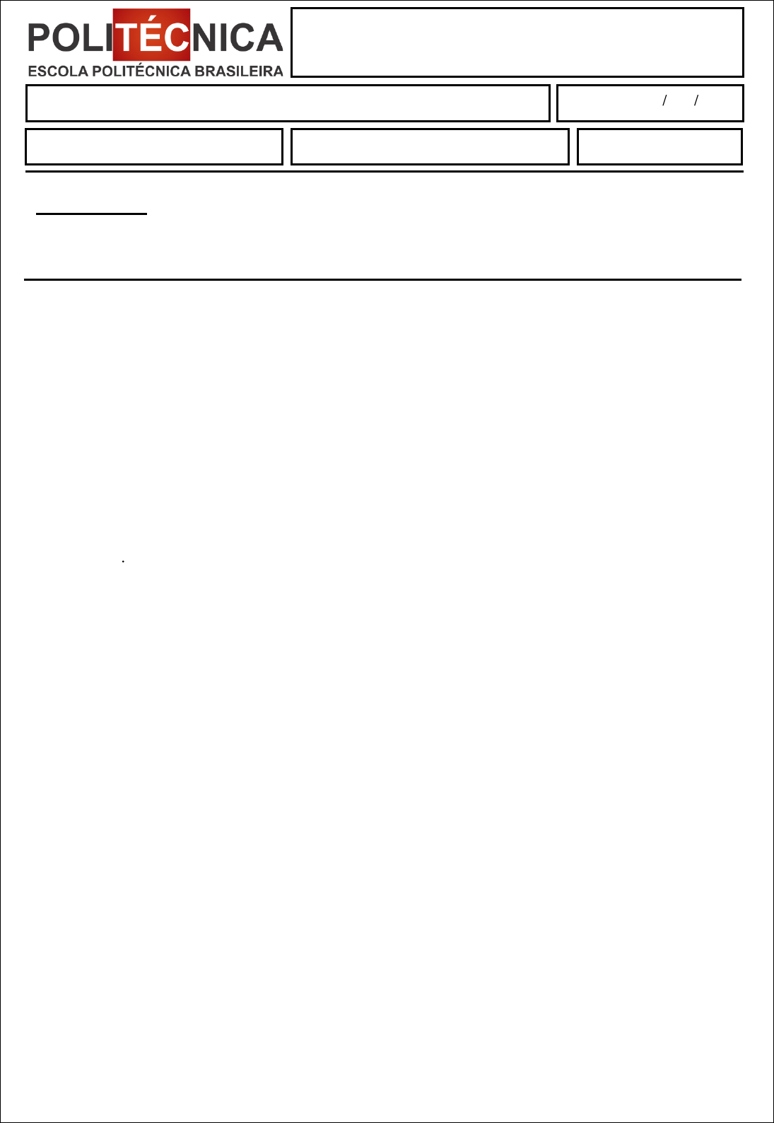 INSTRUÇÕES: ❖ Esta Avaliação contém 10 (dez) questões, totalizando 10 (dez) pontos. ❖ Ao terminar a prova, entregue-a ao responsável e retire-se da sala. 1. Sobre o comando "trim". Assinale a alternativa INCORRETA: a. É possível utilizar o comando “trim” dento do estender e vice-versa, segurando a tecla “shift”. b. Para que o comando estender funcione é necessário que o prolongamento do objeto en- contre a referência determinada. c. O comando estender não permite prolongamento de arcos. Apenas de linhas simples. d. O comando estender funciona de maneira contrária ao “trim”. Enquanto o último corta os objetos, o primeiro os prolonga até uma referência determinada pelo usuário. 2. Quando instalamos o draftsight em outro idioma, os atalhos de teclado para os comandos se- guem a configuração: a. Independente do idioma instalado. Continuam seguindo o padrão Solidwork. b. Independente do idioma instalado. Continua, seguindo o padrão AutoCAD. c. Independente do idioma instalado. Continua, seguindo o padrão Inventor. d. Independente do idioma instalado. Continuam seguindo o padrão Catia. 3. O atributo é: a. Um recurso utilizado dentro do “paper space” que permite criar janelas para visualizar o model. b. Um recurso que pode ser editado dentro do bloco e nos permite incluir informações na forma de texto e de maneira individual dentro do bloco. c. Uma característica do bloco. Funciona como recurso gráfico e permite mudar as cores de um bloco. d. Nenhuma das alternativas anteriores é verdadeira. 4. Assinale a opção que complete: O atalho de teclado do comando “aa"... a. Ativa a ferramenta de medição de áreas, com a qual podemos calcular áreas dentro do AutoCAD de todos os objetos que forem figuras fechadas, podendo ser poli-linhas ou formado por linhas simples. b. Ativa o comando de escala, calculamos a área de objetos dentro do AutoCAD. c. Ativa a ferramenta de medição de áreas, com a qual podemos calcular áreas dentro do AutoCAD de todos os objetos. d. Ativa a ferramenta de medição de áreas, com a qual podemos calcular áreas dentro do AutoCAD de todos os objetos que forem figuras fechadas, formados por poli-linhas. Auto Cad Aluno(a): Data: / / Avaliação de Pesquisa NOTA: Free Hand Free Hand Free Hand Free Hand FreeText Guilherme Reis Martins FreeText 26 09 2021 5. Dentro do comando "Copiar", temos uma série de opções. Assinale abaixo a resposta INCOR- RETA. a. Copiar objetos para outro arquivo com ou sem a informação de um ponto de referência. b. Copiar objetos unicamente dentro do mesmo projeto. Não é possível copiar o objeto pa- ra um novo projeto. c. Copiar objetos de forma simples, com cópias múltiplas por opção padrão. d. Copiar objetos em forma de linhas e colunas, através da opção “array”. e. Todas as alternativas estão INCORRETAS 6. A função “match properties” funciona da seguinte maneira: a. Este comando não é utilizado no AutoCAD 2015. Deixou de existir na versão 2014. b. Escolhemos um objeto contido numa determinada layer e copiamos as propriedades deste objeto para outros objetos. c. Selecionamos um objeto e travamos as propriedades deste. Desta forma, não poderemos mais alterar a menos que utilizemos novamente o “match properties”. d. Escolhemos um objeto contido numa determinada layer e copiamos as propriedades deste objeto para outro objeto. A cópia é feita de maneira única, ou seja, apenas um ob- jeto pode receber as propriedades copiadas por vez. 7. Encontre e assinale a alternativa INCORRETA: a. A “spline” é construída através de pontos notáveis escolhidos pelo usuário e o Auto- CAD constrói uma curva suave que passa pelos pontos determinados. b. Ao remover um ponto notável de uma “spline” a sua concordância é alterada imediata- mente. c. É possível adicionar pontos a uma “spline” construída, mas não os remover. d. O nome completo de “spline” é “smooth polyline” e pode ser traduzido como poli-linha suave. 8. O AutoCAD possui um arquivo de backup para prevenir a perda total de dados. Esse arquivo de backup é: a. O AutoCAD não cria esse arquivo de backup. b. Salvo na mesma pasta do arquivo original com formato de arquivo.dwg c. Salvo numa pasta especial, nomeado “backup - saves” do AutoCAD d. Salvo na mesma pasta do arquivo original com formato de arquivo. 9. Para ativar o comando círculo e informar o valor do diâmetro devemos: a. Digitar “c” e apertar a barra de espaço; informar o centro do circulo; em seguida digitar “d” e apertar a barra de espaço. b. Digitar “c” e apertar a barra de espaço; escolher a opção “3P” e apertar a barra de espa- ço. c. Digitar “c” e apertar a barra de espaço; em seguida digitar “d” e apertar a barra de espa- ço. d. Digitar “l” e apertar a barra de espaço; em seguida digitar “d” e apertar a barra de espa- ço. 10. Sobre os pontos de captura do AutoCAD, assinale a alternativa INCORRETA: a. Não podemos escolher mais de um ponto de captura das configurações. b. Os pontos de captura não são obrigatórios no AutoCAD para elaborar o projeto, mas sua utilização aumenta a qualidade e a precisão do trabalho. c. O símbolo para o ponto final de uma linha (“endpoint”) é um pequeno quadrado. d. Os pontos de captura podem ser ativados nas configurações da função “osnap”. Free Hand Free Hand Free Hand Free Hand Free Hand