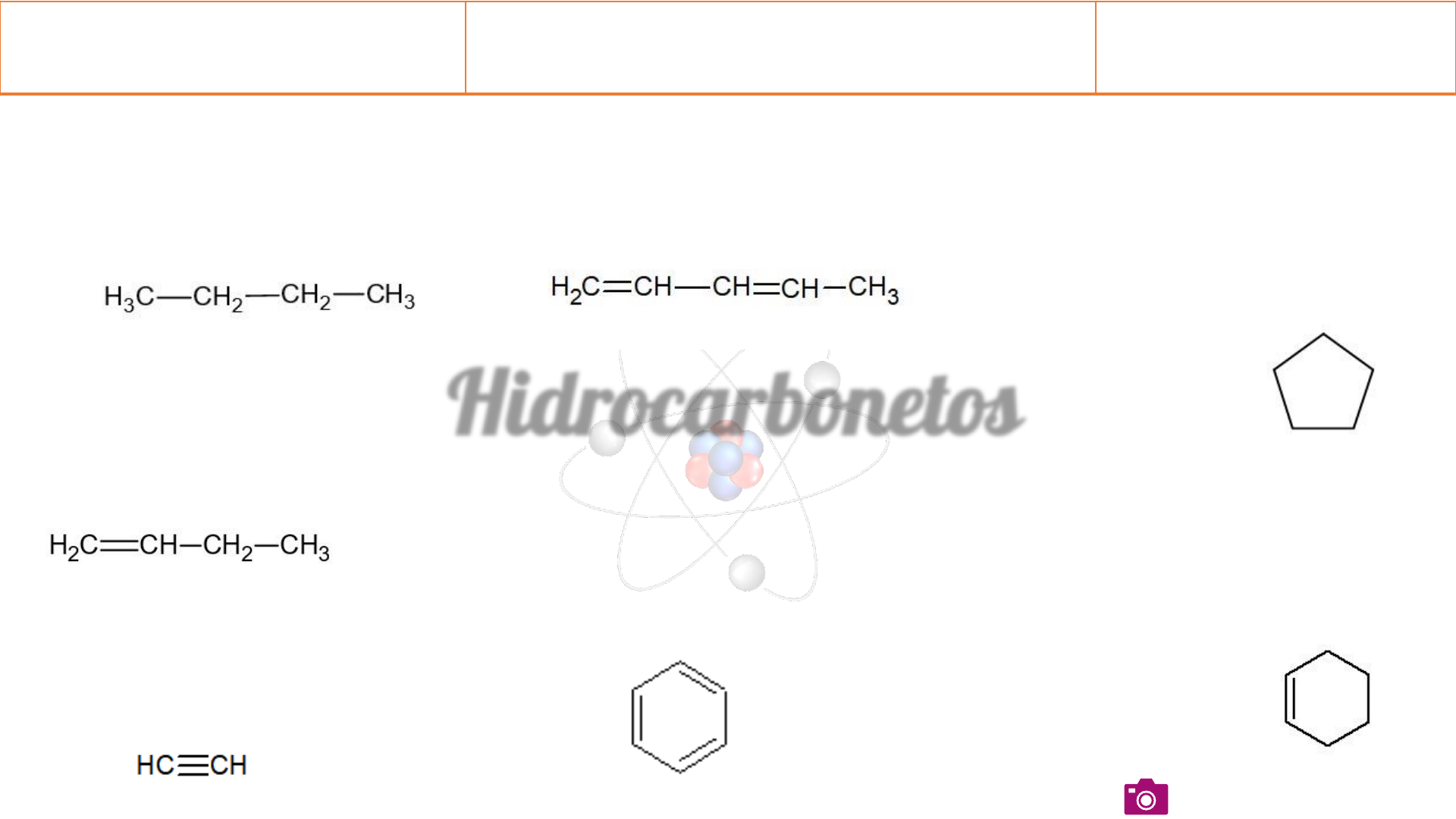 Assunto: Hidrocarbonetos 1ª revisão: 3ª revisão: 2ª revisão: 4ª revisão: Mapa nº 66 Hidrocarbonetos Cicloalcenos ✓ Possuem cadeia fechada e uma ligação dupla entre carbonos . ✓ Fórmula Geral: CnH2n-2 Alcadienos: Possuem cadeia aberta e duas ligações duplas entre carbonos . ✓ Fórmula Molecular: CnH2n-2 Alcenos ✓ Possuem cadeia aberta e uma ligação dupla entre carbonos . ✓ Fórmula Geral: CnH2n Alcanos ✓ Possuem cadeia aberta e somente ligações simples entre os C . ✓ Fórmula Geral: CnH2n+2 Alcinos ✓ Possuem cadeia aberta e uma ligação tripla entre carbonos . ✓ Fórmula Geral: CnH2n-2 Aromáticos ✓ Possuem cadeia fechada e um núcleo benzênico . ✓ Fórmula Geral: não possuem Cicloalcanos: Possuem cadeia fechada e somente ligações simples entre os C . ✓ Fórmula Geral: CnH2n Fórmula Molecular: C4H10 Fórmula Molecular: C4H8 Fórmula Molecular: C2H2 Fórmula Molecular: C5H8 Fórmula Molecular: C6H6 Fórmula Molecular: C5H10 Fórmula Molecular: C6H10 @ nadiario.mapas https://www.instagram.com/nadiario.mapas/