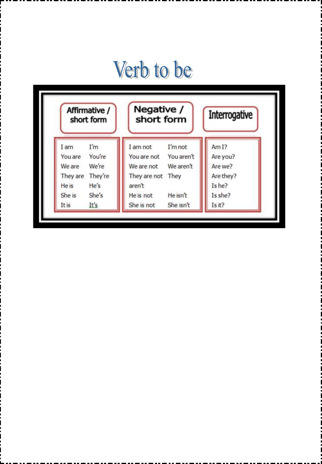 www.acessaber.com.br ESCOLA ________________________________________DATA:_____/_____/_____ PROF:______________________________________________TURMA:___________ NOME:_______________________________________________________________ 1. Write in the correct Verb to be a.Mary _______ my best friend. b.John and Cindy _______ classmates. c. Peter _______ my brother. d.You _______ a good student. e.They _______ in the classroom. f.It _______ an orange. g.Felicia and Mary _______ sisters. h.I _______ her teacher. i.It _______ a book bag. j.You _______ a doctor. 2. Re-arrange the sentence. a.I / not / a teacher. / am ____________________________________________________________________ b.She / my mother. / is www.acessaber.com.br ____________________________________________________________________ c.The boys / playful. / are ____________________________________________________________________ d.The girl / in the room. / is ____________________________________________________________________ e.We / not / are / at home. ____________________________________________________________________ f.My dad / smart. / is ____________________________________________________________________ g.My mother / a housewife. / is ____________________________________________________________________ h.She / not / my sister. / is ____________________________________________________________________ i.The teacher / angry. / is ____________________________________________________________________ j.The dog / in the kennel. / is ____________________________________________________________________ 3. Observe a imagem e complete as falas com o verbo adequado, consulte a caixa de texto ao lado: ____ Mary. ____ happy. _______ flowers. _____ a student . My brother is a student. _________ a cool. My favorite sport ____ tennis. I am They are Are He is