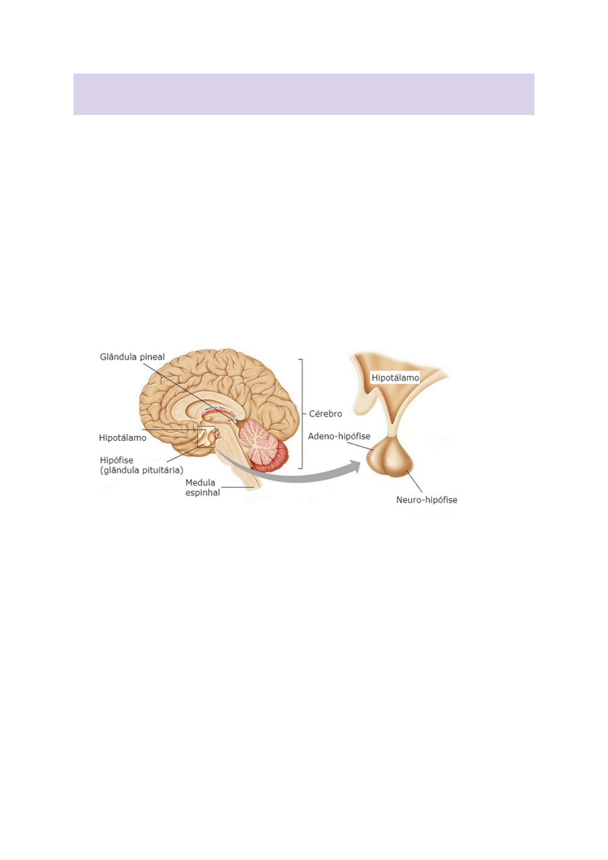 Hipófis� A glândula hipófise regula as funções hormonais essenciais de crescimento, desenvolvimento, reprodução, homeostasia do estresse e controle metabólico. Por seu papel proeminente no controle destes processos, a hipófise recebeu a denominação de glândula-mestra. A hipófise está localizada na sela turca, na base do encéfalo (fossa hipofisial da sela turca do osso esfenoide), e pesa cerca de 600 mg. É constituída pelos lobos anterior e posterior, funcionalmente distintos. O suprimento sanguíneo para a hipófise anterior deriva predominantemente dos vasos porta hipotalâmicos-hipofisários. O lobo posterior é suprido diretamente pelas artérias hipofisárias inferiores sistêmicas. Em termos de anatomia e função, a hipófise possui uma relação estreita com o hipotálamo. Os corpos das células neurais localizados no hipotálamo sintetizam hormônios liberadores e inibidores que controlam a secreção dos hormônios hipofisários. Estes hormônios hipotalâmicos são secretados dentro dos vasos porta do pedúnculo hipofisário e, em seguida, transportados para a hipófise anterior, onde sinalizam ao interagir com os receptores de superfície celular. hipófise anterior sintetiza e secreta o hormônio adrenocorticotrópico (ACTH), hormônio do crescimento (GH), prolactina (PRL), hormônio estimulador da tireoide (TSH), hormônio folículo-estimulante (FSH) e hormônio luteinizante (LH).1,2 A hipófise posterior secreta vasopressina (também conhecida como ADH) e ocitocina (OCT), que são sintetizados no hipotálamo. Os hormônio tróficos hipofisários deflagram as respostas de suas respectivas glândulas-alvo. Estas, por sua vez, secretam hormônios endócrinos que ativam receptores teciduais específicos. Os níveis circulantes destes hormônios periféricos influenciam a secreção de seus hormônios tróficos hipofisários correspondentes via retroalimentação (feedback) negativa. RELAÇÕES ANATOMICAS: Inferiormente a hipófise podemos localizar o seio esfenoidal do osso esfenóide, que forma parte do teto da cavidade nasal, assim, o acesso cirúrgico minimamente invasivo da hipófise é por meio da cavidade nasal, atravessando o seio esfenoidal e acessando a hipófise inferiormente (acesso transesfenoidal). Na região ântero-superior da hipófise podemos localizar o quiasma óptico (uma formação do hipotálamo) que contém o cruzamento das fibras nasais da retina de cada olho. Em torno da hipófise podemos observar o seio cavernoso (um plexo venoso) e lateralmente a hipófise as artérias carótidas internas. NEURO-HIPÓFISE (posterior) X ADENO-HIPÓFISE (anterior) A hipófise está localizada no centro da sela turca (região denominada de fossa hipofisial), separada do restante do encéfalo por uma prega, de formato circular, derivada da dura-máter. Podemos dividir a hipófise em duas partes: A neuro-hipófise: que se origina do sistema nervoso (no diencéfalo), que tem seu crescimento em direção inferior. A neuro hipófise consiste em uma porção volumosa, denominada histologicamente de parte nervosa (pars nervosa). A adenohipófise: de origem ectodérmica a partir de uma projeção da boca primitiva (estomodeu), que desenvolve em direção superior, formando a bolsa de Rathke. Constituída pelas partes: distal (pars distalis), tuberal (pars tuberalis) e intermédia (pars intermédia). A neuro-hipófise (parte nervosa) continua fixa ao diencéfalo por meio de um pedículo denominado de infundíbulo (composto por axônios provenientes de núcleos hipotalâmicos). A adeno-hipófise não tem conexão anatômica com o sistema nervoso, sendo constituída por três partes, a maior delas é denominada de parte distal (pars distalis), uma parte que circunda o infundíbulo denominada de parte tuberal (pars tuberalis), e uma terceira parte denominada de parte intermédia (pars intermedia). A neuro-hipófise e a adeno-hipófise são separadas por uma pequena fissura (resquício da bolsa de Rathke). A neuro-hipófise inclui a parte posterior (pars nervosa), o infundíbulo e a eminência mediana (próximo ao túber cinério). No hipotálamo os núcleos supraóptico e paraventricular (magnocelulares), projetam seus axônios em direção a neurohipófise. Os axônios partem dos núcleos e alcançam a neuro-hipófise atravessando o infundíbulo. Na região da neuro-hipófise há a formação de uma rede capilar proveniente da artéria hipofisária inferior, desta forma, os hormônios produzidos no hipotálamo são secretados pela neuro hipófise na rede capilar. VASCULARIZAÇÃO: SISTEMA PORTA HIPOFISÁRIO As artérias da hipófise originam-se das artérias carótidas internas, são elas:artérias hipofisárias inferiores e superiores. A artéria hipofisária inferior circunda e entra na neuro-hipófise para suprir seu leito capilar, recebendo os hormônios secretados: ADH e ocitocina. As artérias hipofisárias superiores suprem a eminência mediana do túber cinério, a parte superior do infundíbulo. Nessa região formam o plexo capilar primário (que recebe os hormônios liberadores dos neurônios parvocelulares do hipotálamo). Esse plexo capilar primário é drenado pelas veias porta-hipofisários, em direção ao plexo capilar secundário, que está localizado em torno da adeno-hipófise, desta forma, os hormônios liberadores do hipotálamo alcançam os trofos da parte distal da hipófise, controlando sua secreção.