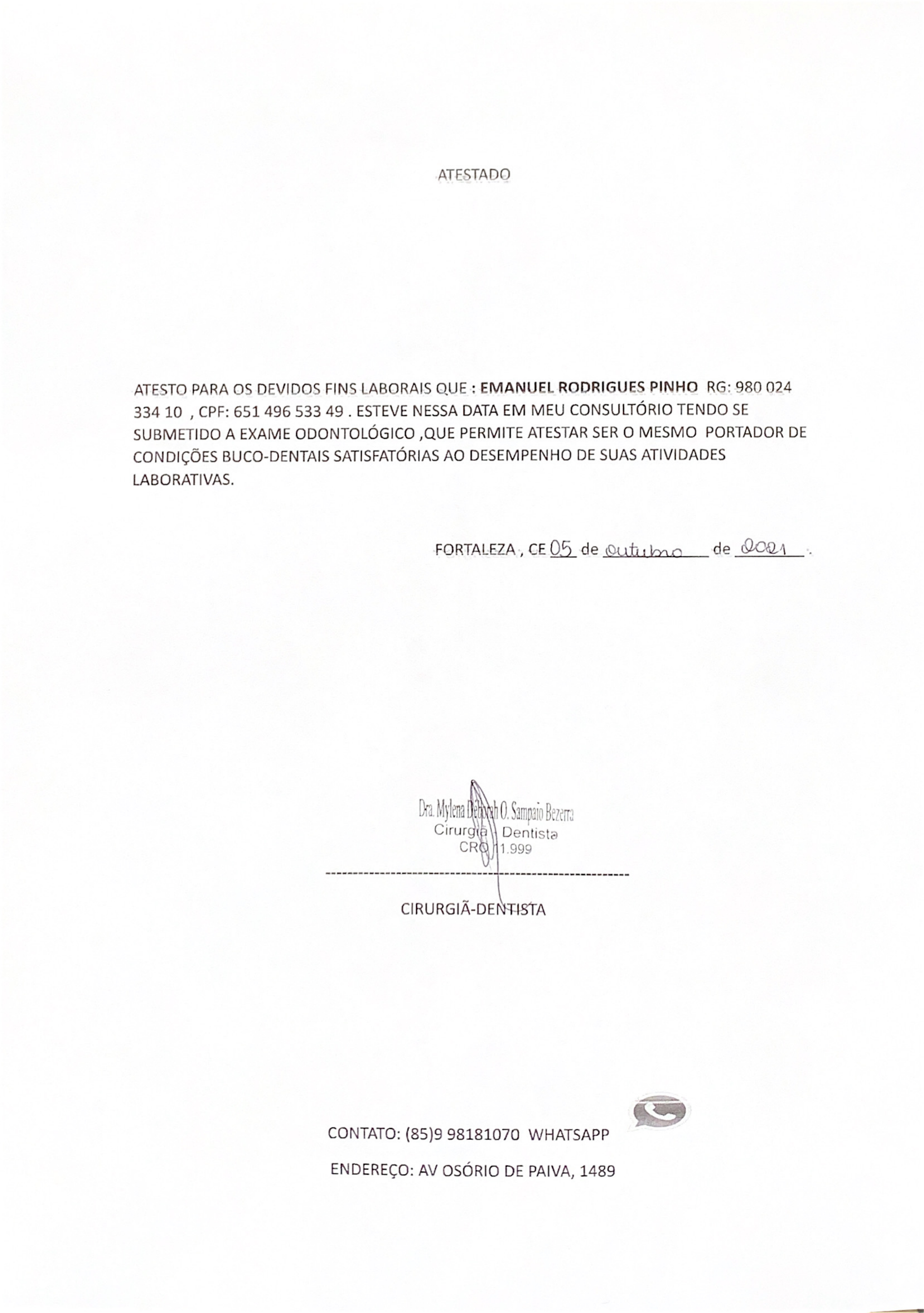 Modelo atestado saúde bucal
