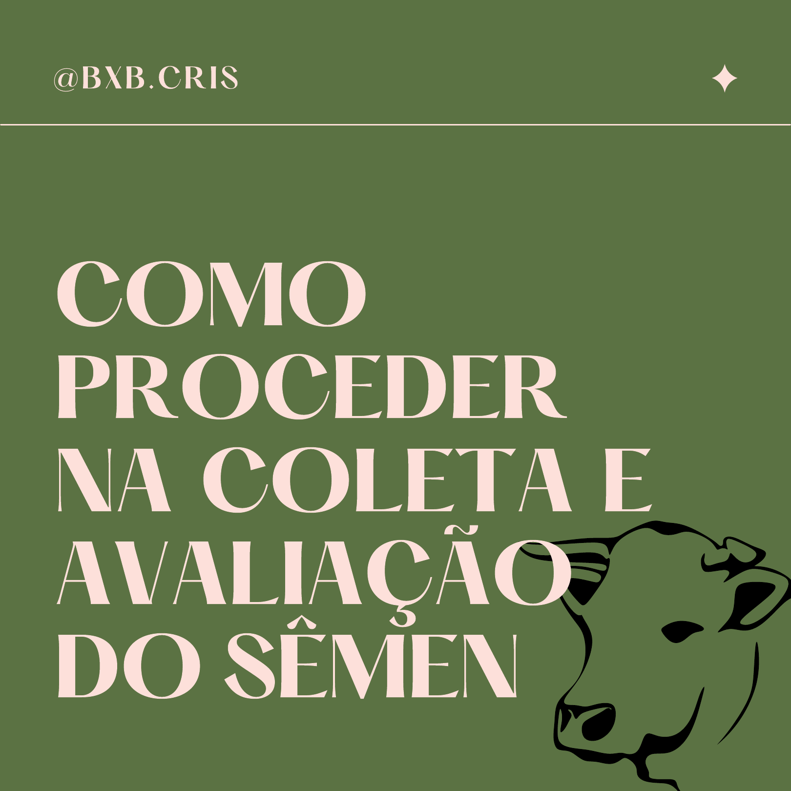 @BXB.CRIS COMO PROCEDER NA COLETA E AVALIAÇÃO DO SÊMEN ASPECTO E VOLUME deve apresentar coloração uniforme e aparência opaca/cremosa . Este é o melhor indicativo da alta concentração espermática . O volume é utilizado para cálculo da dose espermática , estimando o número total de células . MOTILIDADE E VIGOR realizada em um microscópio óptico que avalia a viabilidade e a qualidade espermática . Esta avaliação é subjetiva , ou seja , é uma avaliação pessoal e pode variar conforme o avaliador . Como informação , tem-se que a mobilidade média do ejaculado deve variar entre 70 e 90% e o vigor é estimado dentro dos valores de pontuação de 0 a 5. CONCENTRAÇÃO ESPERMÁTICA representa o número de espermatozoides por unidade de volume ejaculado . Para essa contagem , utiliza-se uma câmara de Neubauer . A concentração varia em função de fatores extrínsecos (método de coleta , frequência de cópulas) e intrínsecos (idade , biometria testicular). A concentração média de bovinos é de 800 a 2000 x 106 espermatozoides/ml . MORFOLOGIA este parâmetro avalia o percentual de células normais e patológicas . Nesta avaliação , a morfologia espermática é classificada em defeitos maiores (acrossoma , cabeça subdesenvolvida , estreita na base , isolada patológica , pequena anormal , contorno anormal , cauda enrolada na cabeça , patologias da peça intermediária , cauda fortemente dobrada ou enrolada) e defeitos menores (cabeça delgada , cabeça gigante , curta , larga , pequena normal , cabeça isolada normal , cauda dobrada ou enrolada), segundo a origem do defeito .
