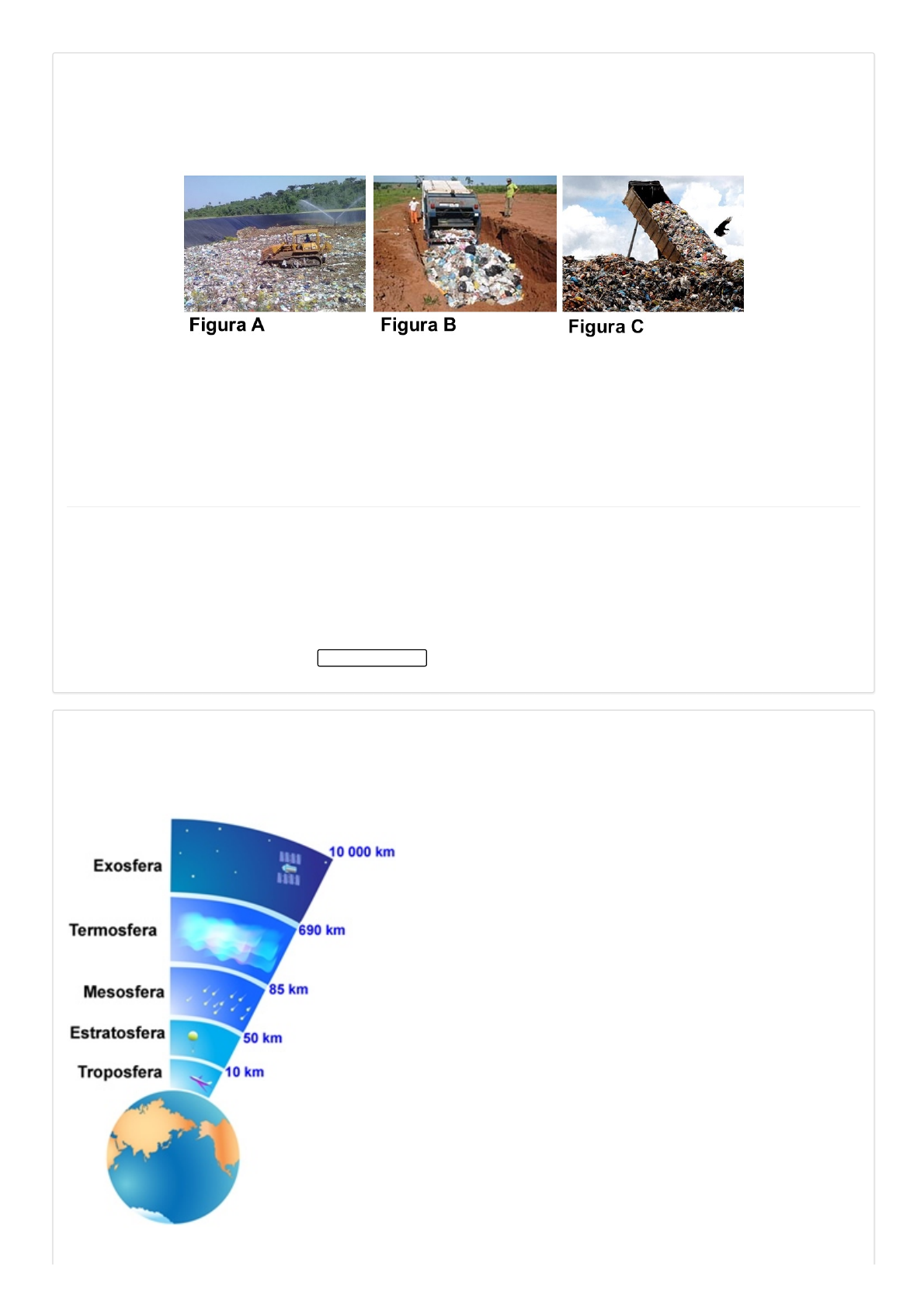 14/10/2021 09:00 Colaborar - Av2 - Planejamento Urbano e Ambiental https://colaboraread.com.br/aluno/avaliacao/index/2846475303?atividadeDisciplinaId=11891404 1/3 a) b) c) d) e) 1) 2) A crescente geração de resíduos sólidos é uma das consequências ocasionadas pela intensificação da urbanização e que pode resultar em graves efeitos negativos para o meio ambiente e para a saúde do homem. Diante disso, a legislação brasileira tem estimulado a instalação de aterros sanitários, como ilustrado na Figura A, em substituição dos aterros controlados e dos lixões, como ilustrados nas figuras B e C. Essa medida do governo brasileiro visa alcançar a redução da poluição que é ocasionada pela disposição final ambientalmente inadequada dos resíduos sólidos. Com base nisso, analise os tipos de poluição listados a seguir : I) Poluição do solo. II) Poluição da água. III) Poluição do ar. Assinale a alternativa que identifica os tipos de poluição que podem ser ocasionados pela disposição final dos resíduos sólidos em aterros controlados ou lixões: Alternativas: A sentença I está correta. A sentença II está correta. A sentença III esta correta. As sentenças Ie III estão corretas. As sentenças I, II, III estão corretas. Alternativa assinalada A figura a seguir está ilustrando as camadas que compõem a atmosfera terrestre, sendo que é na estratosfera, que fica localizada entre a troposfera e a mesosfera, que fica localizada a camada de ozônio. A camada de ozônio é uma região entre 20 a 35 km de altitude onde está cerca de 90% das moléculas de gás ozônio (O ) que compõem a atmosfera. Essa camada de gás é conhecida por ter grande importância para os seres vivos. Adaptado de: <http://www.mma.gov.br/clima/protecao-da-camada-de-ozonio/a-camada-de-ozonio>. Acesso em: 07 jan. 2018. 3 14/10/2021 09:00 Colaborar - Av2 - Planejamento Urbano e Ambiental https://colaboraread.com.br/aluno/avaliacao/index/2846475303?atividadeDisciplinaId=11891404 2/3 a) b) c) d) e) a) b) c) d) e) 3) a) 4) Em relação à camada de ozônio, assinale a alternativa correta: Alternativas: As atividades do homem que liberam gás carbônico (CO ) na atmosfera tornam a camada de ozônio mais espessa, pois em altas altitudes o CO reage formando gás ozônio (O ). As atividades do homem que liberam gás carbônico (CO ) na atmosfera degradam a camada de ozônio, pois em grandes altitudes o CO reage degradando o gás ozônio (O ). A camada de ozônio se torna mais espessa em temperaturas mais baixas, como no inverno, e mais delgada em temperaturas altas, como no verão, razão pela qual os raios solares são mais intensos no verão. A camada de ozônio é importante para os seres vivos pois atua como um filtro contra as radiações ultravioletas provenientes do sol, que são nocivas aos seres vivos. Alternativa assinalada O aquecimento global resulta na degradação da camada de ozônio, sendo que essa degradação também é genericamente conhecida como buraco na camada de ozônio. As áreas verdes urbanas podem ser reconhecidas como um conjunto de áreas que apresentam cobertura vegetal arbórea (nativa e introduzida), arbustiva ou rasteira (gramíneas), sendo que essas áreas estão presentes em uma variedade de situações dentro de uma cidade, como praças, parques urbanos, jardins botânicos e jardins zoológicos. I) A arborização urbana apresenta uma grande contribuição para a manutenção do equilíbrio ambiental de uma cidade, entretanto, ela deve ser evitada devido ao grande volume de resíduos que são gerados na forma de folhas secas, o que acarreta custos adicionais para o munícipio referente às atividades de varrição das ruas. II) A arborização urbana pode ocasionar prejuízos para as cidades causando o levantamento e a quebra dos calçamentos, entretanto esse problema pode ser evitado a partir da realização de projetos de arborização que proponham o plantio de espécies arbóreas adequadas para esse tipo de ambiente e que não ocasionem esses problemas. III) A arborização urbana resulta em uma série de benefícios para as cidades e seus habitantes, podendo ser destacado a regulação do microclima através da redução da temperatura. IV) A arborização urbana deve ser planejada a partir de um projeto paisagístico, projeto que deve apresentar uma sugestão de quais são as espécies mais adequadas para o plantio na área da cidade, cujo objetivo seja reduzir os prejuízos e os gastos que podem ser ocasionados com a arborização, como danos a tubulações, calçamentos e redes elétricas, assim como a necessidade constante de poda. Assinale a alternativa que identifica as sentenças corretas: Alternativas: As sentenças I, II, III e IV estão corretas. As sentenças I, II e III estão corretas. As sentenças I, II e IV estão corretas. As sentenças II, III e IV estão corretas. Alternativa assinalada As sentenças II e IV estão corretas. O monitoramento das características do solo nas áreas urbanas é de grande importância para garantir a sua estabilidade e o desenvolvimento das suas funções no sistema, como ser substrato para as plantas e para as atividades desenvolvidas pelo homem, atuar na ciclagem de nutrientes e garantir a permeabilidade da água para o lençol freático. Dentre as características que do solo que costumam ser monitoradas, pode-se destacar características físicas, químicas e biológicas. Com base nisso, associe a segunda coluna de acordo com a primeira. a) pH. I) Física. b) Micorrizas. c) Textura. II) Química. d) Atividade microbiológica. e) Permeabilidade à água. III) Biológica. f) Macro e micro nutrientes. Assinale a alternativa que contem a sequência correta da associação entre as colunas: Alternativas: a-II, b-III, c-II, d-III, e-I, f-III. Alternativa assinalada 2 2 3 2 2 3 14/10/2021 09:00 Colaborar - Av2 - Planejamento Urbano e Ambiental https://colaboraread.com.br/aluno/avaliacao/index/2846475303?ativida