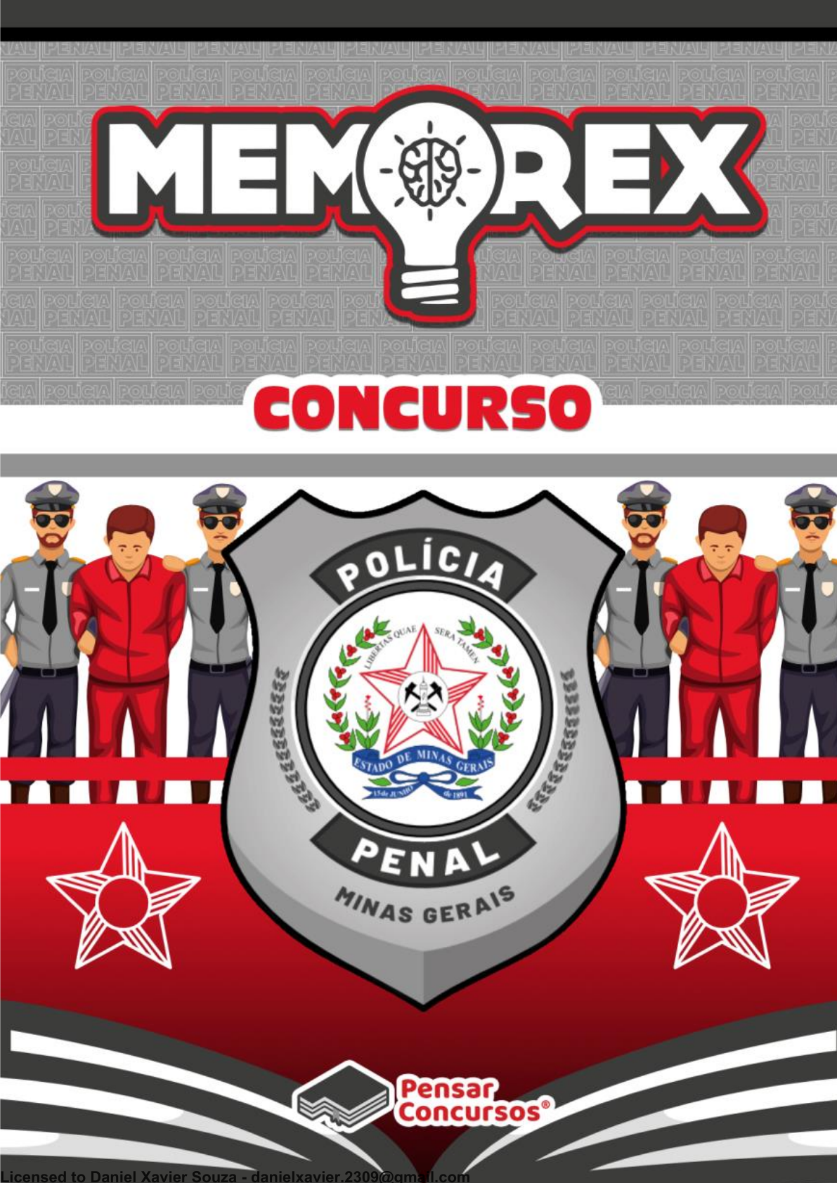 Memorex PP MG – Rodada 03 1 Licensed to Daniel Xavier Souza - danielxavier.2309@gmail.com Memorex PP MG – Rodada 03 2 Parabéns por ter dado esse passo importante na sua preparação, meu amigo(a). Temos TOTAL certeza de que este material vai te fazer ganhar muitas questões e garantir a sua aprovação. Você está tendo acesso agora à Rodada 03. As outras 03 rodadas serão disponibilizadas na sua área de membros conforme o cronograma abaixo: Material Data Rodada 01 Disponível Imediatamente Rodada 02 Disponível Imediatamente Rodada 03 Disponível Imediatamente Rodada 04 20/09 Rodada 05 22/09 Rodada 06 27/09 Convém mencionar que todos que adquirirem o material completo irão receber TODAS AS RODADAS já disponíveis, independente da data de compra. Nesse material focamos também nos temas mais simples e com mais DECOREBA, pois, muitas vezes, os deixamos de lado e isso pode, infelizmente, custar inúmeras posições no resultado final. Lembre-se: uma boa revisão é o segredo da APROVAÇÃO. Portanto, utilize o nosso material com todo o seu esforço, estudando e aprofundando cada uma das dicas. Se houver qualquer dúvida, você pode entrar em contato conosco enviando suas dúvidas para: atendimento@pensarconcursos.com Licensed to Daniel Xavier Souza - danielxavier.2309@gmail.com Memorex PP MG – Rodada 03 3 ÍNDICE LÍNGUA PORTUGUESA .................................................................................................... 4 INFORMÁTICA ................................................................................................................... 15 DIREITOS HUMANOS ..................................................................................................... 18 DIREITO CONSTITUCIONAL ...................................................................................... 23 DIREITO PENAL ................................................................................................................ 29 LEGISLAÇÃO ESPECIAL ................................................................................................ 34 RACIOCÍNIO LÓGICO .................................................................................................... 55 Licensed to Daniel Xavier Souza - danielxavier.2309@gmail.com Memorex PP MG – Rodada 03 4 LÍNGUA PORTUGUESA DICA 01 TRANSITIVIDADE VERBAL Relação entre os verbos transitivos e os seus complementos. Os verbos podem ser classificados quanto à sua predicação em: Verbo intransitivo: é aquele que não precisa de um complemento para ter sentido completo. Ex.: Mário morreu em pé. (Se eu falar só “Mário morreu” já tem sentido completo). Verbo transitivo: é o que necessita de complemento para ter sentido completo a oração. VERBO TRANSITIVO DIREITO E TRANSITIVO INDIRETO Verbo transitivo direto (VTD): é aquele em que o complemento verbal (OBJETO) não inicia com preposição. Ex.: Martina comeu torta. → “comeu” é VTD e “torta” é o OBJETO DIRETO (sem preposição). Verbo transitivo indireto (VTI): o complemento (OBJETO INDIRETO) inicia com preposição. Ex.: Martina gosta de torta. Verbo transitivo direto e indireto (VTDI): é aquele que apresenta os dois tipos de complementos verbais. Ex.: Mônica convidou as amigas para um piquenique. Veja que “convidou” é VTDI, “as amigas” é OD (objeto direto) e “para um piquenique” é OI (objeto indireto). DICA 02 ADJUNTO ADVERBIAL É o termo que traz circunstância ao verbo. O adjunto adverbial pode ser expresso por: Advérbio: O avião caiu longe. Locução Adverbial: O avião caiu na praia. REGÊNCIA VERBAL A regência é a relação entre o verbo e o nome e os termos os quais se ligam a eles. Saber quando o verbo pede preposição (e qual preposição) é o que se estuda na regência verbal. Abaixo, uma tabela com os verbos que são mais cobrados em prova: CHEGAR (lugar): - Com esse verbo se usa a preposição “a” e não a preposição “em”. Licensed to Daniel Xavier Souza - danielxavier.2309@gmail.com Memorex PP MG – Rodada 03 5 Ex.: Mari chegou a São Paulo. OBEDECER ou DESOBEDECER: - Usa-se a preposição “a”. Ex.: Os filhos de Marcos obedecem aos avós. NAMORAR: - Não se usa com preposição. Ex.: Paula namora o Carlos. CONSISTIR: - Usa-se a preposição “em”. Ex.: A vida dela consiste em desafios diários. SIMPATIZAR/ANTIPATIZAR: - Usa-se a preposição “com”. Ex.: Eu simpatizo com Lucas. CUIDADO! Simpatizo-me com Lucas. (errado quando o verbo aparece com pronome oblíquo). PREFERIR: - Usa-se 2 complementos. Um é usado sem preposição, e o outro com a preposição “a”. Ex.: Prefiro estudar Português a estudar Matemática. CUIDADO! É errado usar este verbo com as palavras: antes, mais... Ex.: Prefiro mais estudar Português a estudar Matemática. (errado) DICA 03 REGÊNCIA VERBAL Já que esse é um assunto muito cobrado, abaixo seguem mais alguns verbos que podem cair na sua prova: ASPIRAR: - quando significa “cheirar” → sem preposição. Ex.: Aspirou o ar da floresta. - quando significa “almejar” → preposição “a”. Ex.: A vida a que aspirava. Licensed to Daniel Xavier Souza - danielxavier.2309@gmail.com Memorex PP MG – Rodada 03 6 ASSISTIR: - quando significa “ajudar”, “socorrer” → sem preposição. Ex.: O médico assistiu o paciente. - quando significa “ver” → preposição “a”. Ex.: Luana e Laura assistiram ao show. - quando significa “pertencer” → preposição “a”. Ex.: Assiste ao réu tal direito. - quando significa “morar” → preposição “em”. Ex.: Mari assiste em Petrópolis. ESQUECER - Quando não forem pronominais → sem preposição. Ex.: Mauro esqueceu o livro. - Quando forem pronominais → preposição “de”. Ex.: Lembrei-me do nome livro de Machado de Assis. DICA 04 REGÊNCIA NOMINAL Geralmente, a relação entre o nome (substantivo, adjetivo e advérbio) e o seu complemento é estabelecida por preposição. Deve-se identificar a prep