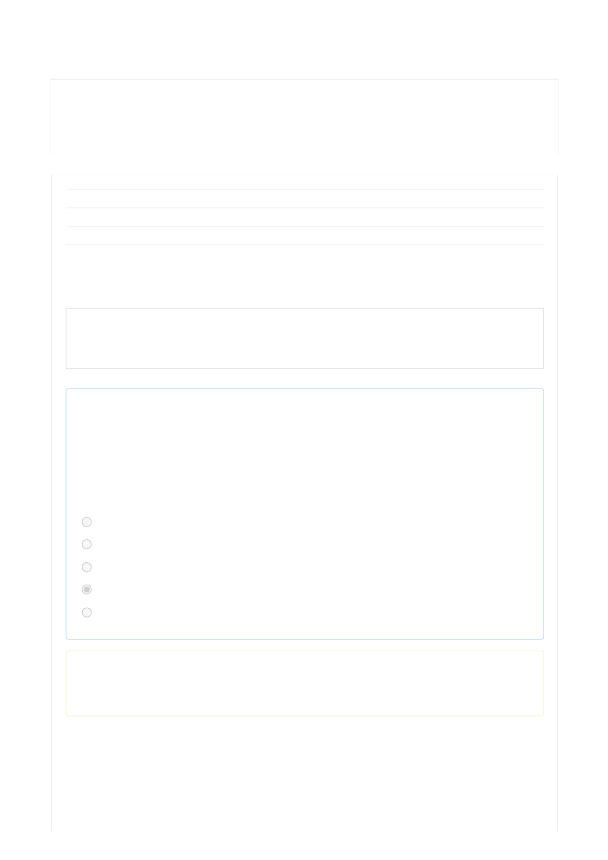 26/06/2021 ATIVIDADE ONLINE 1 - ONLINE 2021/2 https://moodle.ead.unifcv.edu.br/mod/quiz/review.php?attempt=896011 1/9 Painel / Meus cursos / financas_corporativas / AVALIAÇÕES DO PERÍODO 2021/2 / ATIVIDADE ONLINE 1 - ONLINE 2021/2 Iniciado em quarta, 16 Jun 2021, 08:10 Estado Finalizada Concluída em quarta, 16 Jun 2021, 08:11 Tempo empregado 29 segundos Avaliar 0,40 de um máximo de 2,00(20%) Questão 1 Incorreto Atingiu 0,00 de 0,20 Quanto receberá de juros, no fim de um semestre, uma pessoa que investiu, a juros composto, a quantia de R$ 5.000,00. À taxa de 1% ao mês? Escolha uma opção: a. R$ 400,00. b. R$ 307,60. c. R$ 207,60. d. R$ 300,00. e. R$ 407,60. Sua resposta está incorreta. A resposta correta é: R$ 307,60. https://moodle.ead.unifcv.edu.br/my/ https://moodle.ead.unifcv.edu.br/course/view.php?id=51 https://moodle.ead.unifcv.edu.br/course/view.php?id=51#section-7 https://moodle.ead.unifcv.edu.br/mod/quiz/view.php?id=9678 26/06/2021 ATIVIDADE ONLINE 1 - ONLINE 2021/2 https://moodle.ead.unifcv.edu.br/mod/quiz/review.php?attempt=896011 2/9 Questão 2 Correto Atingiu 0,20 de 0,20 Preciso aplicar R$ 5.000,00 por um período de quantos meses, a uma taxa de 2% a.m. no sistema de juros composto, para que ao final da aplicação eu tenha o dobro desse capital? Escolha uma opção: a. 50 meses. b. 45 meses. c. 40 meses. d. 35 meses. e. 30 meses. Sua resposta está correta. A resposta correta é: 35 meses. Questão 3 Correto Atingiu 0,20 de 0,20 Sabendo que a média de determinada universidade é 7,5, em uma prova que contém 40 questões, qual o número mínimo de questões que os alunos devem acertar para passar de ano? Escolha uma opção: a. 10 questões. b. 20 questões. c. 25 questões. d. 30 questões. e. 40 questões. Sua resposta está correta. A resposta correta é: 30 questões. 26/06/2021 ATIVIDADE ONLINE 1 - ONLINE 2021/2 https://moodle.ead.unifcv.edu.br/mod/quiz/review.php?attempt=896011 3/9 Questão 4 Incorreto Atingiu 0,00 de 0,20 Uma loja me vendeu uma geladeira, cujo preço à vista é R$ 636,00, para pagamento no prazo de 9 meses e vou lhe pagar juros no valor de R$ 467,36. Qual aproximadamente a taxa de juros simples mensal cobrada pela loja? Escolha uma opção: a. 7% a.m b. 7,5% a.m c. 8,16% a.m d. 9% a.m e. 10% a.m Sua resposta está incorreta. A resposta correta é: 8,16% a.m 26/06/2021 ATIVIDADE ONLINE 1 - ONLINE 2021/2 https://moodle.ead.unifcv.edu.br/mod/quiz/review.php?attempt=896011 4/9 Questão 5 Incorreto Atingiu 0,00 de 0,20 Pedro gasta 10% do seu salário líquido com a faculdade, sabendo que paga R$ 258,00 de faculdade qual o valor de seu salário? Escolha uma opção: a. R$ 1.500,00. b. R$ 2.580,00. c. R$ 3.000,00. d. R$ 3.280,00. e. R$ 4.130,00. Sua resposta está incorreta. A resposta correta é: R$ 2.580,00. 26/06/2021 ATIVIDADE ONLINE 1 - ONLINE 2021/2 https://moodle.ead.unifcv.edu.br/mod/quiz/review.php?attempt=896011 5/9 Questão 6 Incorreto Atingiu 0,00 de 0,20 Seu Osmar aplicou em um fundo que garante retorno de 15% a.m. no regime de juros simples, ao final de 3 meses ele recebeu de volta um montante de R$ 14.500,00. Qual foi o valor investido pelo seu Osmar? Escolha uma opção: a. R$ 9.500,00. b. R$ 10.000,00. c. R$ 10.500,00. d. R$ 11.000,00. e. R$ 11.500,00. Sua resposta está incorreta. A resposta correta é: R$ 10.000,00. 26/06/2021 ATIVIDADE ONLINE 1 - ONLINE 2021/2 https://moodle.ead.unifcv.edu.br/mod/quiz/review.php?attempt=896011 6/9 Questão 7 Incorreto Atingiu 0,00 de 0,20 João recebeu um aumento de 10% e com isso seu salário chegou a R$1.320,00. O salário de João antes do aumento era igual a? Escolha uma opção: a. R$1.188,00. b. R$1.200,00. c. R$1.220,00. d. R$1.310,00. e. R$1.452,00. Sua resposta está incorreta. A resposta correta é: R$1.200,00. 26/06/2021 ATIVIDADE ONLINE 1 - ONLINE 2021/2 https://moodle.ead.unifcv.edu.br/mod/quiz/review.php?attempt=896011 7/9 Questão 8 Incorreto Atingiu 0,00 de 0,20 Um comerciante tomou emprestado num banco estatal a importância de R$ 25.000,00 pelo prazo de 5 anos a uma taxa nos juros simples de 20% a.a. Qual será o valor dos juros a serem pagos? Escolha uma opção: a. R$ 20.000,00. b. R$ 25.000,00. c. R$ 30.000,00. d. R$ 35.000,00. e. R$ 50.000,00. Sua resposta está incorreta. A resposta correta é: R$ 25.000,00. 26/06/2021 ATIVIDADE ONLINE 1 - ONLINE 2021/2 https://moodle.ead.unifcv.edu.br/mod/quiz/review.php?attempt=896011 8/9 Questão 9 Incorreto Atingiu 0,00 de 0,20 Maria recebe mensalmente R$ 2.000,00, sabendo que deve pagar o colégio do filho e que isso demanda 45% de seu salário, qual o valor da mensalidade? Escolha uma opção: a. R$ 800,00. b. R$ 850,00. c. R$ 900,00. d. R$ 950,00. e. R$ 1000,00. Sua resposta está incorreta. A resposta correta é: R$ 900,00. 26/06/2021 ATIVIDADE ONLINE 1 - ONLINE 2021/2 https://moodle.ead.unifcv.edu.br/mod/quiz/review.php?attempt=896011 9/9 Questão 10 Incorreto Atingiu 0,00 de 0,20 Aplicando um valor de R$ 10.000,00 por 2 meses em uma aplicação, sabendo que a taxa de juros composto paga pela mesma é de 3% ao mês. Qual será o valor do juros gerado pela aplicação? Escolha uma opção: a. 300,00. b. 400,00. c. 459,00. d. 559,00. e. 609,00. Sua resposta está incorreta. A resposta correta é: 609,00.
