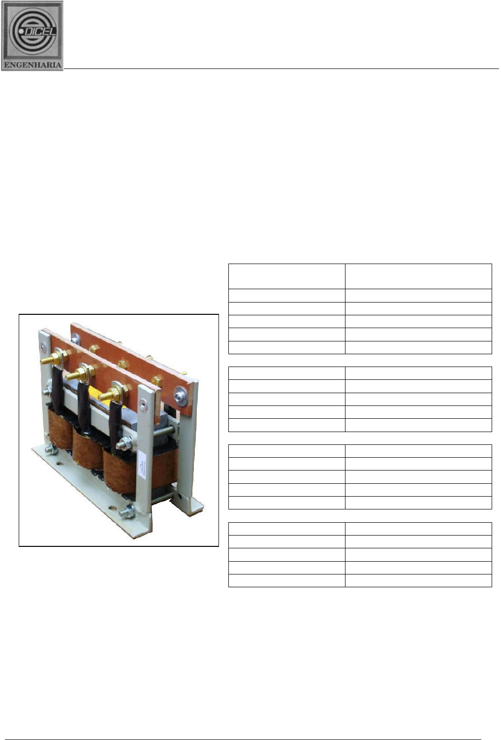 SOLUÇÕES PARA QUALIDADE DA ENERGIA ELÉTRICA Av. Assis Brasil Nr. 3090 conj. 206 cep.: 91010.003 Porto Alegre – RS CNPJ 90.761.057/0001-04 Fone (51) 3341-9800 e mail: dicel@dicelrs.com.br BT4.1 – BOLETIM TÉCNICO Indutores Anti-surto (In-rush) Desenvolvido especificamente para proteção dos Capacitores de Correção do Fator de Potência e dos Contatores, em bancos automáticos ou com chaveamento em cascata, contra a corrente de surto conforme recomendação da norma IEC 831-33, que determina: Is < 100 x In. O surto de corrente na energização do capacitor causa um aumento considerável da temperatura tendo como consequência a redução da expectátiva de vida do capacitor e do contator. Código Para encomenda Potência e tensão do Capacitor em kVAr PG 0602001 IAS.01.0 a 05.0Q-220 PG 0602002 IAS.06.0 a 10.0Q-220 PG 0602003 IAS.11.0 a 15.0Q-220 PG 0602004 IAS.16.0 a 22.5Q-220 PG 0602005 IAS.23.0 a 35.0Q-220 PG 0603001 IAS.05.0 a 10.0Q-380 PG 0603002 IAS.11.0 a 17.5Q-380 PG 0603003 IAS.18.0 a 27.5Q-380 PG 0603004 IAS.28.0 a 40.0Q-380 PG 0603005 IAS.41.0 a 62.5Q-380 PG 0604001 IAS.05.0 a 10.0Q-440 PG 0604002 IAS.11.0 a 20.0Q-440 PG 0604003 IAS.21.0 a 30.0Q-440 PG 0604004 IAS.31.0 a 45.0Q-440 PG 0604005 IAS.46.0 a 62.5Q-440 PG 0605001 IAS.05.0 a 12.5Q-480 PG 0605002 IAS.13.0 a 22.5Q-480 PG 0605003 IAS.23.0 a 35.0Q-480 PG 0605004 IAS.36.0 a 50.0Q-480 PG 0605005 IAS.51.0 a 62.5Q-480