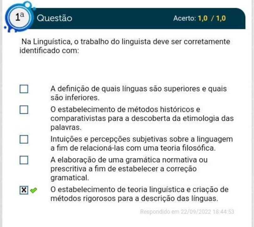 SimuladoAvaliando Aprendizado - Linguística Pressupostos Teóricos