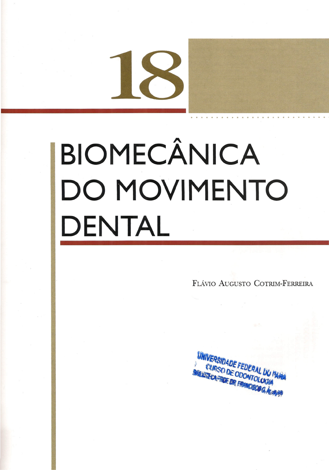 "- BIOMECANICA .DO MOVIMENTO DENTAL FLÁVIO AUGUSTO COTRIM-FERREIRA BIOMECÂNICA DO MOVIMENTO DENTAL 363 INTRODUÇÃO Se, por um lado, o ortodontista deve estar aten- to ao diagnóstico do caso clínico, determinando O QUE FAZER para harmonizar a relação entre os dentes, ossos, tecidos moles e funções musculares, somente aquele profissional que conhece profun- damente os processos de reações teciduais resul- tantes da terapia, assim como os princípios mecâ- nicos que regem a movimentação dental poderá definir com precisão COMO FAZER É a visão biomecânica do tratamento orto- dôntico que propiciará o planejamento do me- lhor sistema de forças a ser empregado, tanto no sentido da forma de sua aplicação, como na quantificação da carga, interpretando de que modo ocorre a distribuição de pressões no liga- mento periodontal. As vantagens destes conhecimentos são evi- dentes, brindando Q ortodontista e seus pacien- tes com maior eficiência terapêutica, isto é, um tratamento rápido e indolor, com mínimo dano aos dentes e tecidos de suporte, mais econômi- co, com poucos efeitos colaterais e, portanto, de resultados mais agradáveis e duradouros. Este capítulo será dividido em três partes. Na primeira - Reações Teciduais Frente às For- ças Ortodônticas - apresentaremos como ocor- re a resposta do periodonto à carga produzida pelo aparelho ortodôntico e também quais os fatores que interferem nesta resposta. A segun- da parte - Princípios Biomecânicos - elucida os aspectos mecânicos da movimentação ortodôn- tica, principalmente na definição do tipo de movimento dental desejado. A terceira e última parte - Propriedades Mecânicas dos Fios Orto- dônticos - procura mostrar o papel da confor- mação, dimensão, liga metálica constituinte, assim como da secção transversal do arco, no controle do tratamento. PARTE I REAÇÕES TECIDUAIS FRENTE ÀS FORÇAS ORTODÔNTICAS Os dentes humanos estão ligados aos maxi- lares por uma articulação diversa de todas en- contradas no organismo, a articulação alveolo dental. Esta junção é promovida pelo perio- donto de inserção, representado por cemento, ligamento periodontal e osso alveolar. O cemento, provavelmente por não ser vas- cularizado, é pouco modificado pelos estímulos da função mastigatória ou por cargas de pres- são e tensão. Isto faz com que seja a porção do periodonto de inserção menos reativa às forças decorrentes do tratamento ortodôntico. Contudo, toda a atenção deve estar voltada para os dois outros componentes: o ligamento periodontal e o osso alveolar. O ligamento periodontal ocupa o espaço de cerca de 0,5 mm entre a parede do alvéolo e o cemento, e é o responsável pela articulação den- tal. É constituído principalmente por fibras colá- genas inseridas de um lado no cemento radicu- lar e do outro no osso alveolar, sendo entremea- das por vasos sangüíneos, elementos celulares, terminações nervosas e fluido intersticial. Os vasos sangüíneos são responsáveis pela nutrição do ligamento periodontal, assim como servirão de via de acesso para as células responsáveis pela remodelação do osso corti- cal e ligamentos. As terminações nervosas ali existentes transmitirão as sensações de pres- são e a noção proprioceptiva. Já as fibras pe- riodontais e o fluido intersticial formam, em conjunto, um eficiente sistema amortizado r e dissipador das forças fisiológicas aplicadas por um breve intervalo de tempo, durante as funções oclusais. O terceiro e último componente do periodon- to de inserção é o osso alveolar, que pode ser divi- dido em duas partes: porção fasciculada (lâmina dura), que reveste a superfície interna do alvéolo, e porção lamelar (osso esponjoso). A porção fasci- culada recebe, à semelhança do cemento, a inser- ção das fibras periodontais (Fig. 18.1). O periodonto de inserção exerce importan- te papel na estabilização do dente durante os esforços funcionais. O processo ocorre da seguinte maneira: quando a força é aplicada sobre o elemento dental, este desloca-se no interior do espaço alveolar, o que provoca o estiramento de algu- mas fibras periodontais e a compressão de ou- tras. Simultaneamente o fluido que preenche os espaços entre as fibras também é comprimi- do contra as paredes ósseas. Como sua drena- gem para fora do alvéolo é lenta, o líquido exerce uma resistência hidráulica ao movimen- to dental. Fibras periodontais e fluido intersti- cial agirão em conjunto, se contrapondo às car- gas aplicadas sobre o dente, devolvendo-o à posição original (Fig. 18.2). Cabe ressaltar que o processo descrito ocor- rerá sempre que o período de aplicação da for- ça for de curta duração, não resultando assim em movimento dental. 364 ORTODONTIA· DIAGNÓSTICO E PLANEJAMENTO CUNICO 18 Fig. /8. / - Aspectos histológicos da porção radicular de um dente inserido em seu olvéolo. Na imagem A uma visão panorâmica, onde o osso alveolar e o cemento estão corados em azul escuro, as fibras periodontais em ozul c/aro e a dentino em vermelho. Em uma maior aproximação B, o ligamento periodontal mostra-se como um emaranhado de fibras colágenas (azul c/aro) e vasos sangüíneos. Na imagem C, fibras do ligamento periodontal aparecem inserindo-se no cemento radicular. BIOMECÂNICA DO MOVIMENTO DENTAL 365 A B V c Fig. /8.2 - Esquema i1ustrativodo papel do periodonto de inserção durante a atuação de cargas fisiológicas sobre o dente. Em A o dente se encontra em repouso e as fibras periodontais apresentam tônus normal. Sob a ação de uma força de intrusão. que em geral dura menos de um segundo (8), as fibras periodontais periféricas são distendidas, enquanto que as apicais são comprimidas. A ação e/6stica das fibras do ligamento somada à pressão hidráulica gerada pelo ~uido intersticial devolvem o dente à posição inicial assim que a carga é retirada (C). às regiões onde a simples pr