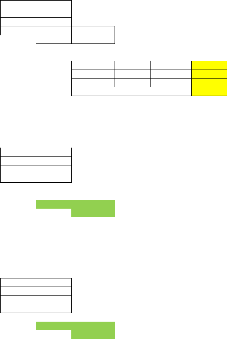 5 ejrcicios 1) 5.- Calcule el interés que gana un capital de $42,000 al 1.5% anual, desde el 15 de junio hasta el 15 de diciembre del mismo año, según las siguientes opciones: a) con el tiempo aproximado y el año comercial; b) con el tiempo exacto y el año comercial; c) con el tiempo aproximado y el año calendario y d) con el tiempo exacto y el año calendario. DATOS CAPITAL 42000 TASA 1.50% TIEMPO FECHA 1 6/15/20 EXACTO 183 FECHA 2 12/15/20 APROXIMADO 180 2020 12 15 2020 6 15 A) 360 Ordinario aproximado (comercial) 315 6 B) 360 Ordinario exacto (bancario) 320.25 180 C) 365/366 Exacto aproximado (sin nombre) 310.6849315 D) 365/366 Exacto exacto (real) 315.8630137 2) 7.- Se obtiene un crédito por $180,000 a 160 días con 30% simple. ¿Qué cantidad debe pagar al vencerse su deuda? DATOS CAPITAL 180000 TASA 30% TIEMPO 160 MONTO= C*(1+i*t) 204000 3) 9.- Una persona adquiere en esta fecha una maquinaria que cuesta $220,000. Si suponemos aumenta su valor en forma constante y a razón del 2% mensual, ¿Cuál será su valor después de 2 meses? DATOS CAPITAL 220000 TASA 2% mensual TIEMPO 2 meses MONTO= C*(1+i*t) 228800 4) 11.- María desea adquirir un inmueble dentro de 2 años. Supone que el enganche que habrá de pagar hacia esas fechas será de $60,000. Si desea tener esa cantidad dentro de 2 años, ¿qué cantidad debe invertir en un depósito de renta fija que rinde 3% de interés simple mensual? DATOS CAPITAL ? TASA 3% mensual TIEMPO 2 años 24 meses MONTO 60000 CAPITAL= M/(1+i*t) 34883.72093 5) 17.- ¿En qué tiempo un capital de $45,000 ganará un interés de $1350 al 0.5% mensual? DATOS CAPITAL 45000 TASA 0.5% TIEMPO ? INTERES 1350 INTERES= C*i*t TIEMPO= I/(C*i)= 6 meses