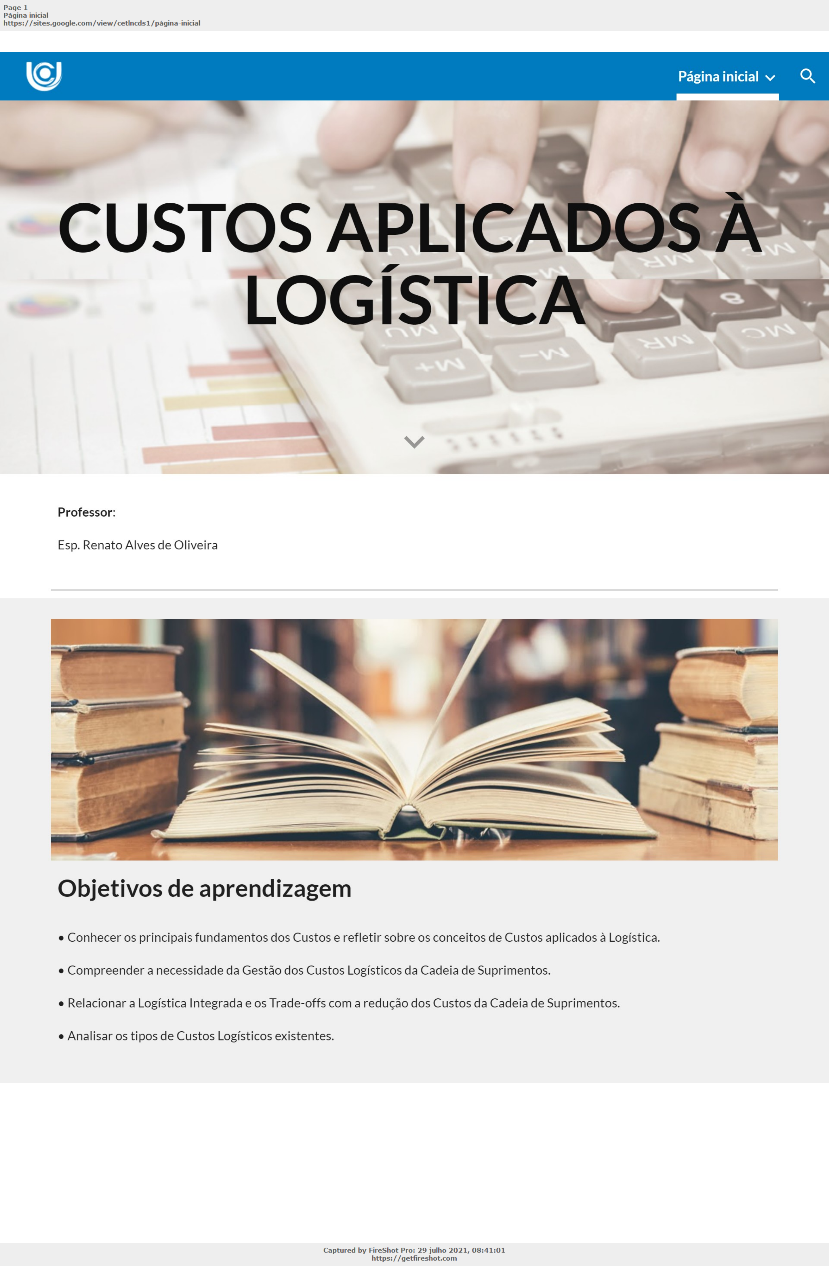 Página inicial CUSTOS APLICADOS À LOGÍSTICA Professor : Esp. Renato Alves de Oliveira Objetivos de aprendizagem • Conhecer os principais fundamentos dos Custos e refletir sobre os conceitos de Custos aplicados à Logística. • Compreender a necessidade da Gestão dos Custos Logísticos da Cadeia de Suprimentos. • Relacionar a Logística Integrada e os Trade-offs com a redução dos Custos da Cadeia de Suprimentos. • Analisar os tipos de Custos Logísticos existentes. https://sites.google.com/view/cetlncds1/p�gina-inicial https://getfireshot.com https://sites.google.com/view/cetlncds1/p%C3%A1gina-inicial https://sites.google.com/view/cetlncds1/p%C3%A1gina-inicial Plano de estudo A seguir, apresentam-se os tópicos que você estudará nesta unidade: • Os conceitos fundamentais de Custos Logísticos • Logística Integrada e os Trade-offs • Os Custos dos Elementos e Operações Físicas Logísticas • Os Custos dos Macroprocessos Logísticos e os Custos Totais Introdução Caro(a) aluno(a), daremos início à disciplina de Custos e Tributos Logísticos na Cadeia de Suprimentos. Muitos gestores sabem da importância desta discussão para a perpetuação das empresas. Nosso propósito não é dar aulas de contabilidade, mas sim conhecer um pouco sobre a temática de Custos e algumas ferramentas e mecanismos que têm auxiliado as empresas na construção de suas estratégias. Não aprenderemos a preencher planilhas prontas nem forneceremos soluções genéricas de prateleira. Faremos uma comparação do nosso objetivo com essa disciplina e um Planejamento. Assim como acontece em qualquer elaboração de planejamento empresarial, o gestor precisa estabelecer quais ações integradas e coordenadas serão colocadas em prática com o objetivo de se alcançar um resultado futuro. Porém, no momento da elaboração, o gestor precisa levantar quais recursos a empresa necessita para que ela possa alcançar seus objetivos. Em nosso caso, entre os recursos necessários para conseguirmos as ferramentas adequadas que auxiliarão na apuração dos custos logísticos na cadeia de suprimentos e, ainda, como proceder para reduzir esses custos, precisaremos de algo muito importante: o conhecimento. Em nossos estudos, conheceremos um pouco desse universo sobre os Custos Logísticos. De antemão, posso afirmar que não será possível nos aprofundarmos em alguns conceitos, pois ferramentas de custeio, como o método ABC e o Custo para Servir ou até a Análise Multidimensional dos Custos Logísticos exigem estudos profundos que precisam ser examinados com detalhes pelo gestor. Isso também vale para as complexas Legislações Tributárias ou os Regimes Aduaneiros Especiais, como o Drawback ou o RECOF. Em suma, em nossos estudos, demonstrarei a importância da Gestão dos Custos Logísticos na Cadeia de Suprimentos e as principais ferramentas que auxiliarão as empresas nesse sentido. Na Unidade I, veremos os principais fundamentos dos custos, quais os conceitos de custos aplicados à Logística bem como a necessidade da Gestão dos Custos Logísticos. Ainda veremos que as informações vindas da Contabilidade, em geral, carecem de clareza para a gestão dos Custos Logísticos, sendo necessário adequarem as informações às necessidades logísticas das empresas. https://sites.google.com/view/cetlncds1/p�gina-inicial https://getfireshot.com Na Unidade II, aprenderemos sobre os Métodos de Custeio mais utilizados pelas empresas e os sistemas de Custeio Direto e de Custeio por Absorção, dando ênfase especial no método de custeio Baseado em Atividades. Na Unidade III, veremos as principais análises realizadas pelas empresas, tais como a Rentabilidade Direta por Produto (DPP), o Método do Custo para Servir ao Cliente (CTS - Cost to Serve) e a Análise de Rentabilidade Multidimensional. Também entenderemos como se dão a medição de Custos em uma cadeia de suprimentos e a necessidade do empenho das empresas que vai além dos seus limites, expandindo esforços para todas as empresas que compõem a sua Cadeia Logística. Na IV e última unidade, veremos os fundamentos de tributação aplicados à logística, quais os seus impactos nos processos logísticos e como o Planejamento Tributário pode ser um importante aliado das empresas para a análise das melhores alternativas fiscais. Com certeza, teremos um ótimo desafio em nossos estudos, afinal, é isso que nos move na busca por algo melhor. Cabe a cada um decidir se vai aceitar o desafio e buscar não só o conhecimento dos Custos Logísticos na Cadeia de Suprimentos, mas também se aprofundar e se atualizar numa área que pode trazer resultados positivos para as empresas e, principalmente, deixá-las mais competitivas. Bom estudo! Que seja uma disciplina proveitosa para você! Avançar UNICESUMAR | UNIVERSO EAD https://sites.google.com/view/cetlncds1/p�gina-inicial https://getfireshot.com https://sites.google.com/view/cetlncds1/p%C3%A1gina-inicial/unidade-1 Página inicial OS CONCEITOS FUNDAMENTAIS DE CUSTOS LOGÍSTICOS Para a Administração moderna, a Logística tem um papel vital na perpetuação das organizações. Bowersox (2014 p. 31 e 32) fala que “é difícil imaginar a realização de qualquer atividade de marketing, manufatura ou comércio internacional sem ela”, além de poder “projetar e administrar sistemas de transportes” e gerenciar os “estoques de matérias-primas, de produtos em processo e acabados pelo menor custo total”. Concernente ao papel que a Logística deve desempenhar nas empresas, Carvalho (2002, p. 31) cita o Council of Supply Chain Management Professionals , que descreve Logística como sendo: A parte do Gerenciamento da Cadeia de Abastecimento que planeja, implementa e controla o fluxo e armazenamento eficiente e econômico de matérias-primas, materiais semi-acabados e produtos acabados bem como as informações a eles relativas, desde o ponto de origem até o ponto de consumo, com o propósit