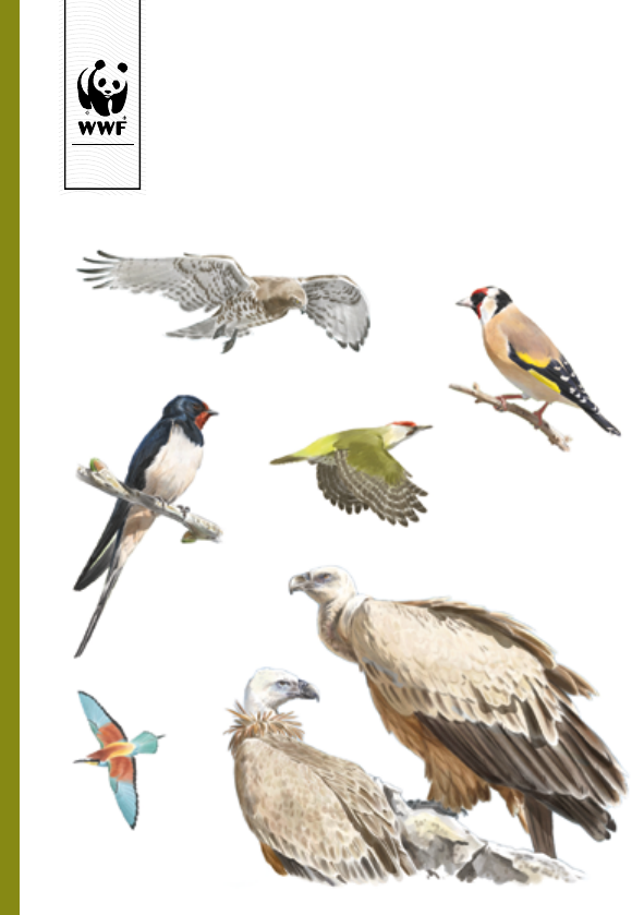 GUÍA DE AVES COMUNES REFUGIO DE RAPACES DE MONTEJO DE LA VEGA (SEGOVIA) 2016 WWF.ES • GUÍA DE AVES COMUNES DEL REFUGIO DE RAPACES DE MONTEJO DE LA VEGA (SEGOVIA) GUÍA DE AVES COMUNES REFUGIO DE RAPACES DE MONTEJO DE LA VEGA (SEGOVIA) Textos, coordinación y edición: Amaya Asiaín, Luis Suárez e Isaac Vega Diseño: Amalia Maroto Ilustraciones: Antonio Ojea Impresión: Artes Gráficas Palermo, S.L. Impreso en papel estucado semimate Creator Silk con certificación FSC®. Publicado en junio de 2016 por WWF España (Madrid, España). WWF España agradece la reproducción y divulgación de los contenidos del presente documento (a excepción de las ilustraciones, propiedad del autor) en cualquier tipo de medio, siempre y cuando se cite expresamente la fuente (título y propietario del copyright). © Texto: 2016, WWF España. Todos los derechos reservados. Depósito Legal: M-23711-2016 WWF es una de las mayores y más eficaces organizaciones internacionales independientes dedicadas a la conservación de la naturaleza. WWF opera en más de 100 países, con el apoyo de cerca de cinco millones de personas en todo el mundo. WWF trabaja por un planeta vivo y su misión es detener la degradación ambiental de la Tierra y construir un futuro en el que el ser humano viva en armonía con la naturaleza: conservando la diversidad biológica mundial, asegurando que el uso de los recursos naturales renovables sea sostenible y promoviendo la reducción de la contaminación y del consumo desmedido. GUÍA DE AVES COMUNES REFUGIO DE RAPACES DE MONTEJO DE LA VEGA (SEGOVIA)~ CÓMO USAR ESTA GUÍA La guía recoge dibujos de cada especie con su nombre vulgar, científico, su tamaño y si son sedentarias (presentes todo el año), estivales (solo en verano) o invernantes (solo en invierno). Puede haber más de una combinación: aves sedentarias de una especie pueden convivir con invernantes europeas de la misma especie, por ejemplo. Con finas líneas negras destacamos algunas claves para su identificación: diseños de cola y alas, color de las patas, tamaño del pico, detalles del plumaje… A veces los individuos se mueven en grupo y a veces solos. Esto depende de muchos factores, como la época del año, aunque les impulsa algo básico: conseguir comida, dormir o proteger a la prole. Y un pequeño reto: en la última página hemos reservado un espacio para marcar qué especies has conseguido ver. Esperamos que nuestras indicaciones te ayuden a contemplar y apreciar a estos seres tan maravillosos. MEDIOS URBANOS ��������������������������������� 4 Avión común �������������������������������� 5 Golondrina común ����������������������� 5 Vencejo común ���������������������������� 5 Gorrión común ����������������������������� 6 Estornino negro ���������������������������� 6 Urraca������������������������������������������� 6 Cigüeña blanca ���������������������������� 7 CULTIVOS Y PÁRAMOS �������������������������� 8 Alcaudón real ������������������������������� 9 Alcaudón común �������������������������� 9 Alondra común ��������������������������� 10 Calandria común ������������������������ 10 Cogujada común ������������������������ 11 Cogujada montesina ������������������ 11 Mochuelo europeo ��������������������� 12 Escribano montesino ����������������� 12 Collalba gris ������������������������������� 13 Collalba rubia ����������������������������� 13 Perdiz roja ���������������������������������� 14 Milano real ���������������������������������� 15 Corneja común ��������������������������� 15 Jilguero ��������������������������������������� 16 Verdecillo������������������������������������ 16 Triguero �������������������������������������� 17 Tarabilla común �������������������������� 17 CORTADOS ����������������������������������������� 18 Águila real ���������������������������������� 19 Buitre leonado ���������������������������� 20 Alimoche ������������������������������������ 22 Halcón peregrino ����������������������� 24 Cernícalo vulgar ������������������������� 25 Grajilla ����������������������