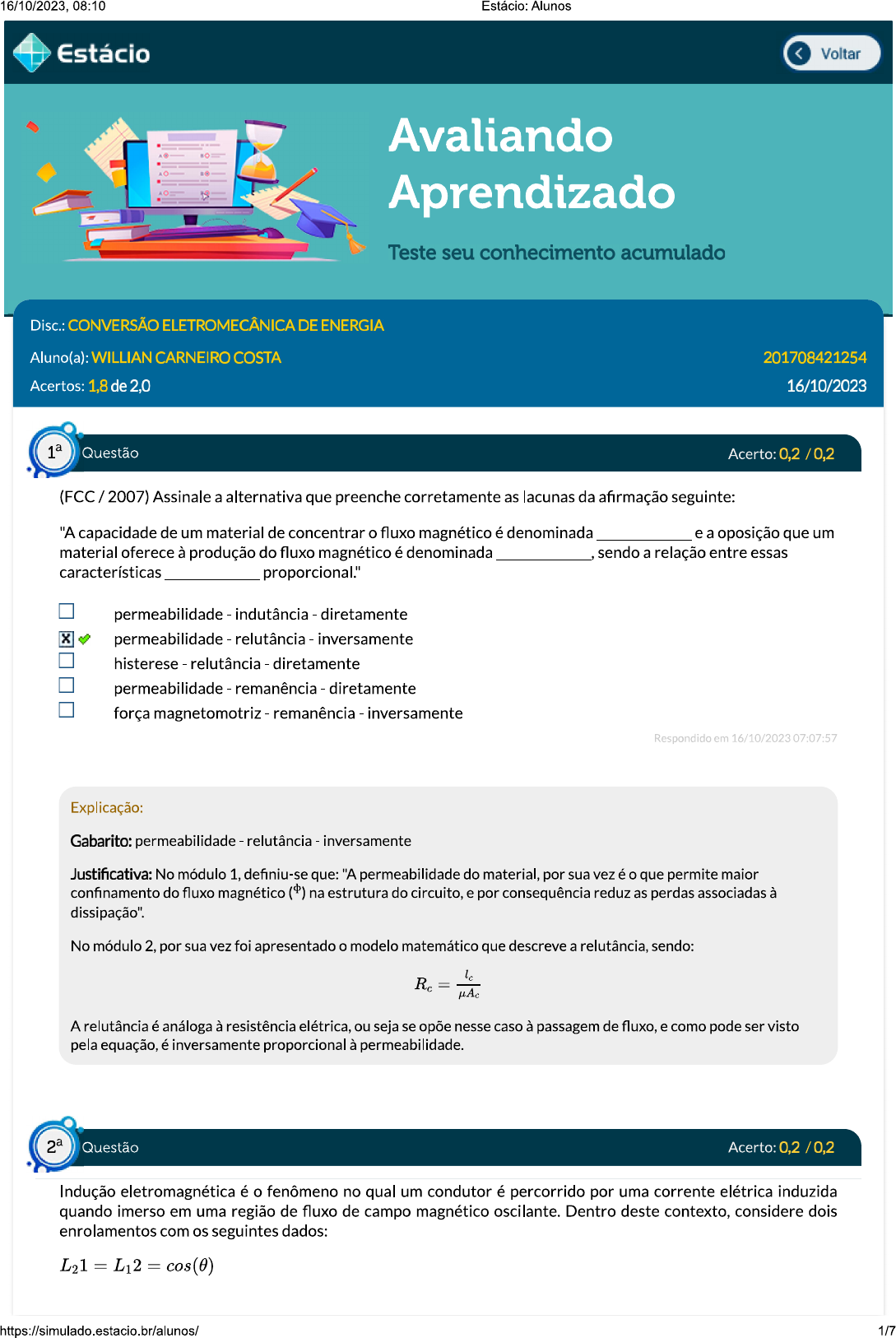 Avaliação Final (objetiva) - Conversão Eletromecânica de Energia